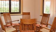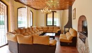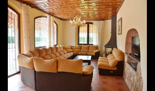 Auf der linken Seite gibt es ein geräumiges Wohnzimmer, wo Sie entweder im „Großmutter-Bereich“ mit 8 Schaukelstühle oder in der Sofaecke mit dem größten Sofa, wir je gesehen haben, entspannen. Es gibt auch TV und Kamin, wenn Sie im Winter kommen.