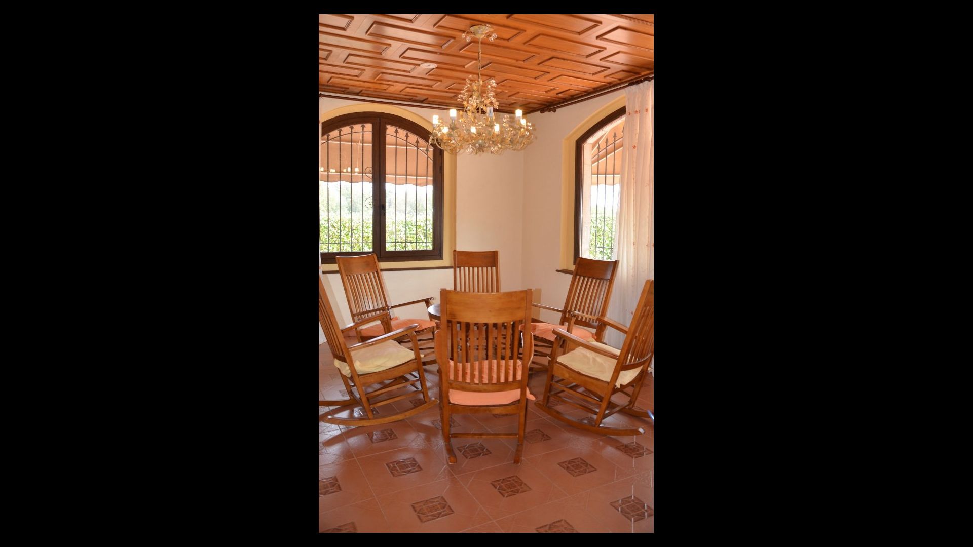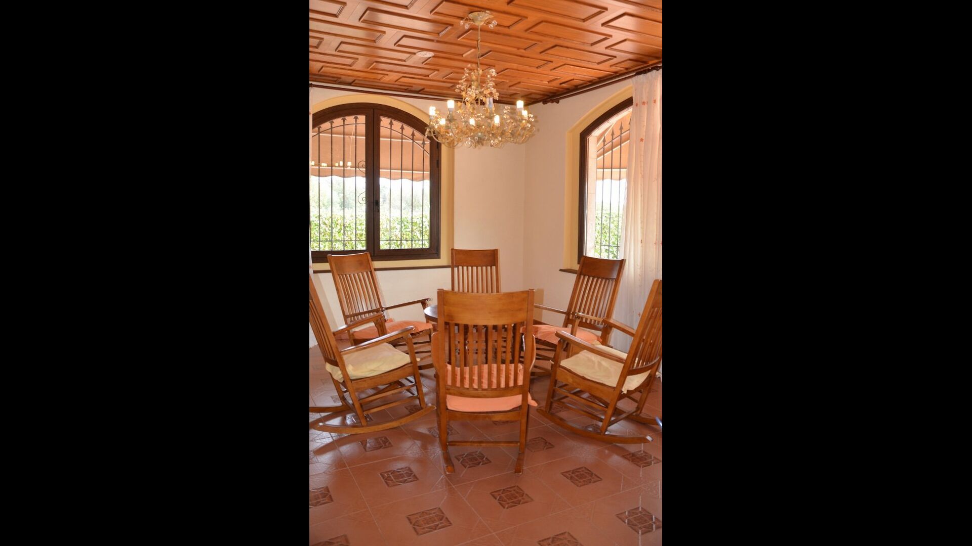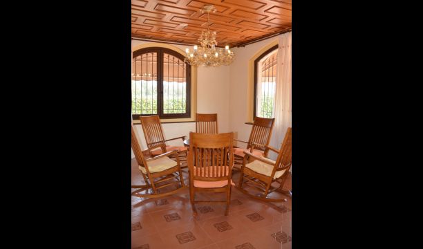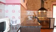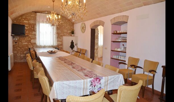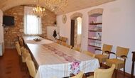 Im Inneren des Hauses ist die Küche direkt mit dem sehr großen Esszimmer verbunden. Hier gibt es einen langen Esstisch, wo alle zusammen sein können, wenn Sie Innen zu essen bevorzugen.