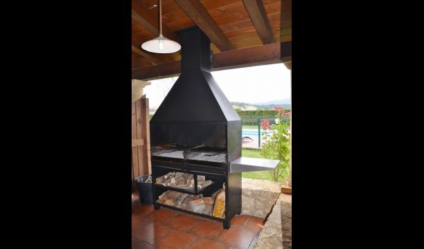 Der Architekt hat eine sehr gute Arbeit mit Integration der wichtigsten Bereiche des Ferienhauses getan. Die sehr große überdachte Terrasse mit Grillplatz ist vor dem Swimmingpool gelegen und hat direkten Zugang zur Küche, damit es sehr leicht zu kochen, schwimmen und entspannen ist – und immer noch alle zusammen. Die Kinder werden den Pool von 11x 8m und Tiefe von 120cm – 165cm und mit einem Zaun gesichert, lieben.