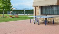 Auch im Erdgeschoss finden Sie das Spielzimmer mit Tischfussball, und draußen auch eine Tischtennisplatte. Schließlich gibt es ein Schlafzimmer mit Bad, behindertengerecht ausgestattet, alles in Ebene. Im gesamten Haus gibt es WIFI-Internet.