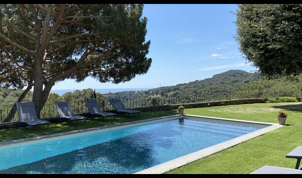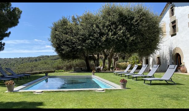 Der Poolbereich und der umliegende Garten sind das Herzstück des Hauses, in dem Sie unserer Meinung nach viel Zeit verbringen werden. Am Pool stehen Sonnenliegen, die neben dem Pool aufgereiht sind, sodass Sie es sich bei sonnigem katalanischem Wetter bequem machen können. Direkt am Poolbereich befindet sich ein schattiger Essplatz mit großen Tischen. Die Aussicht ist einfach atemberaubend und macht es zum perfekten Ort, um Mahlzeiten im Freien oder einen Drink mit der gesamten Urlaubsgruppe zu genießen.