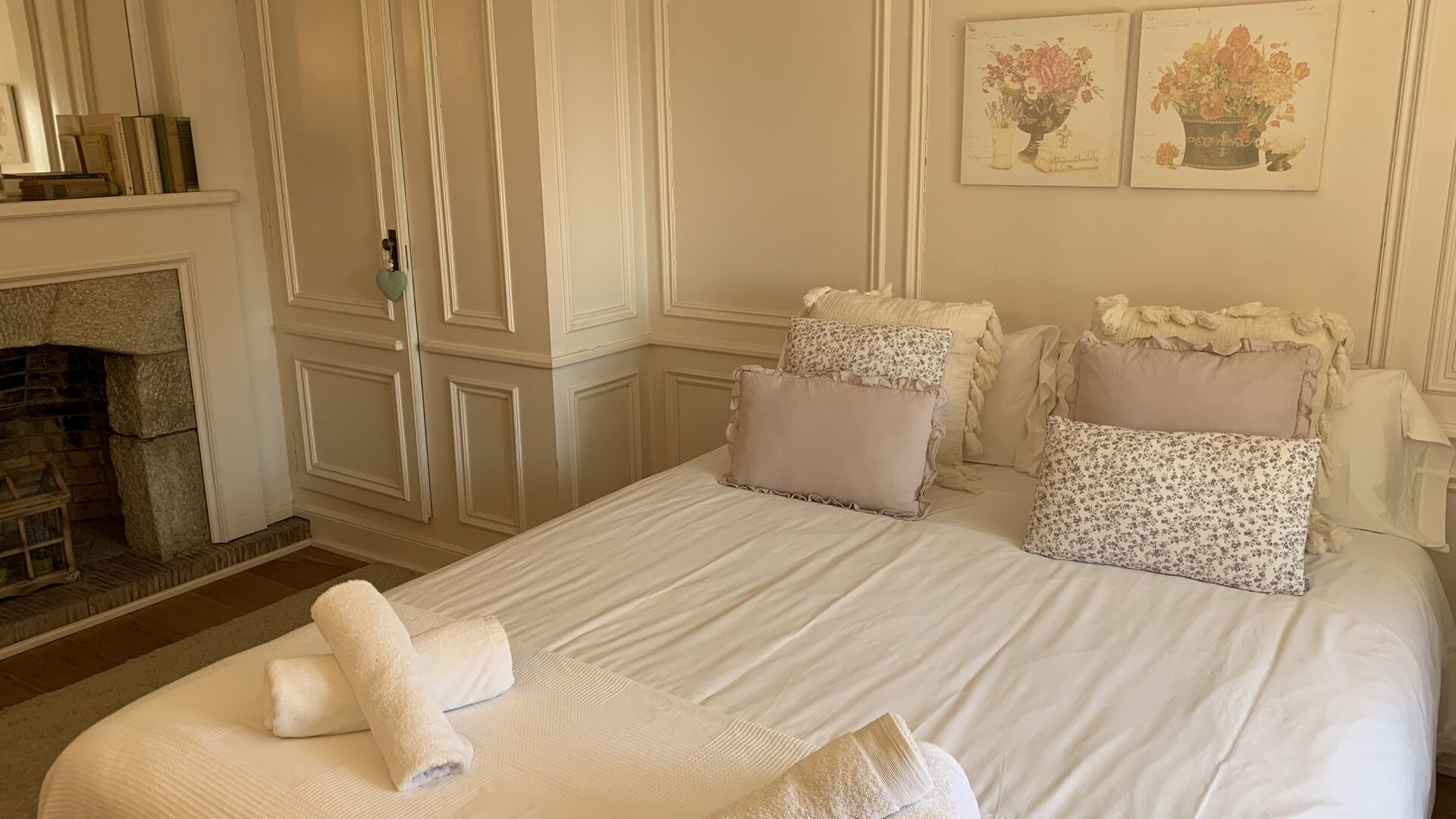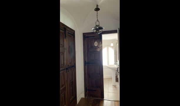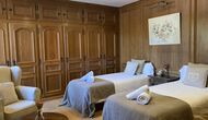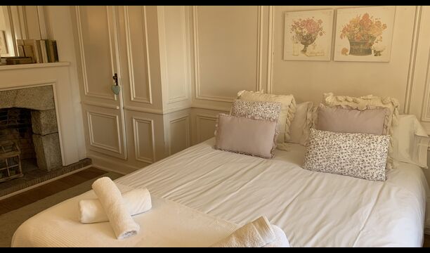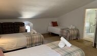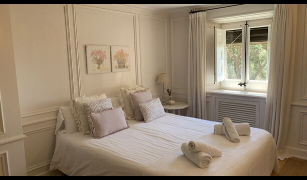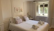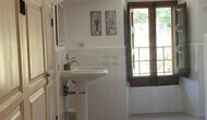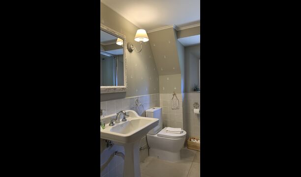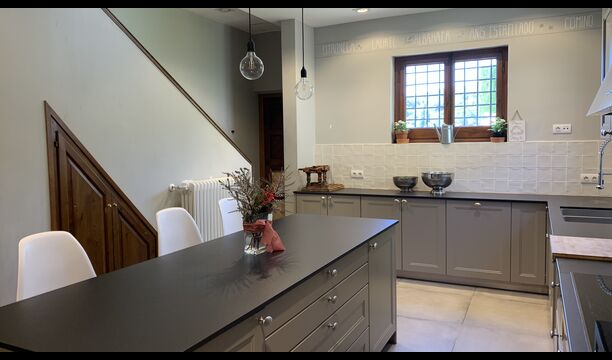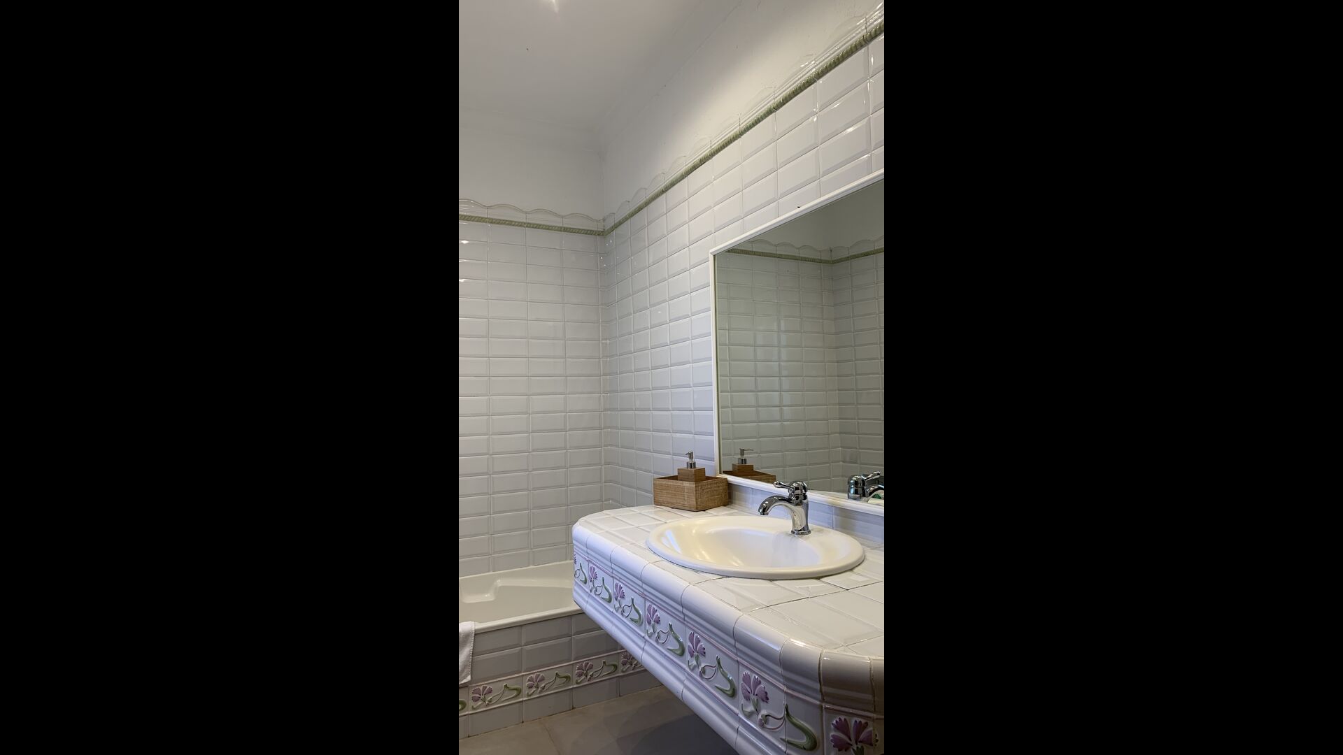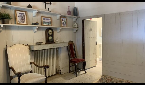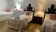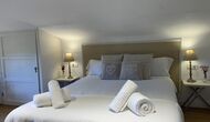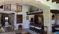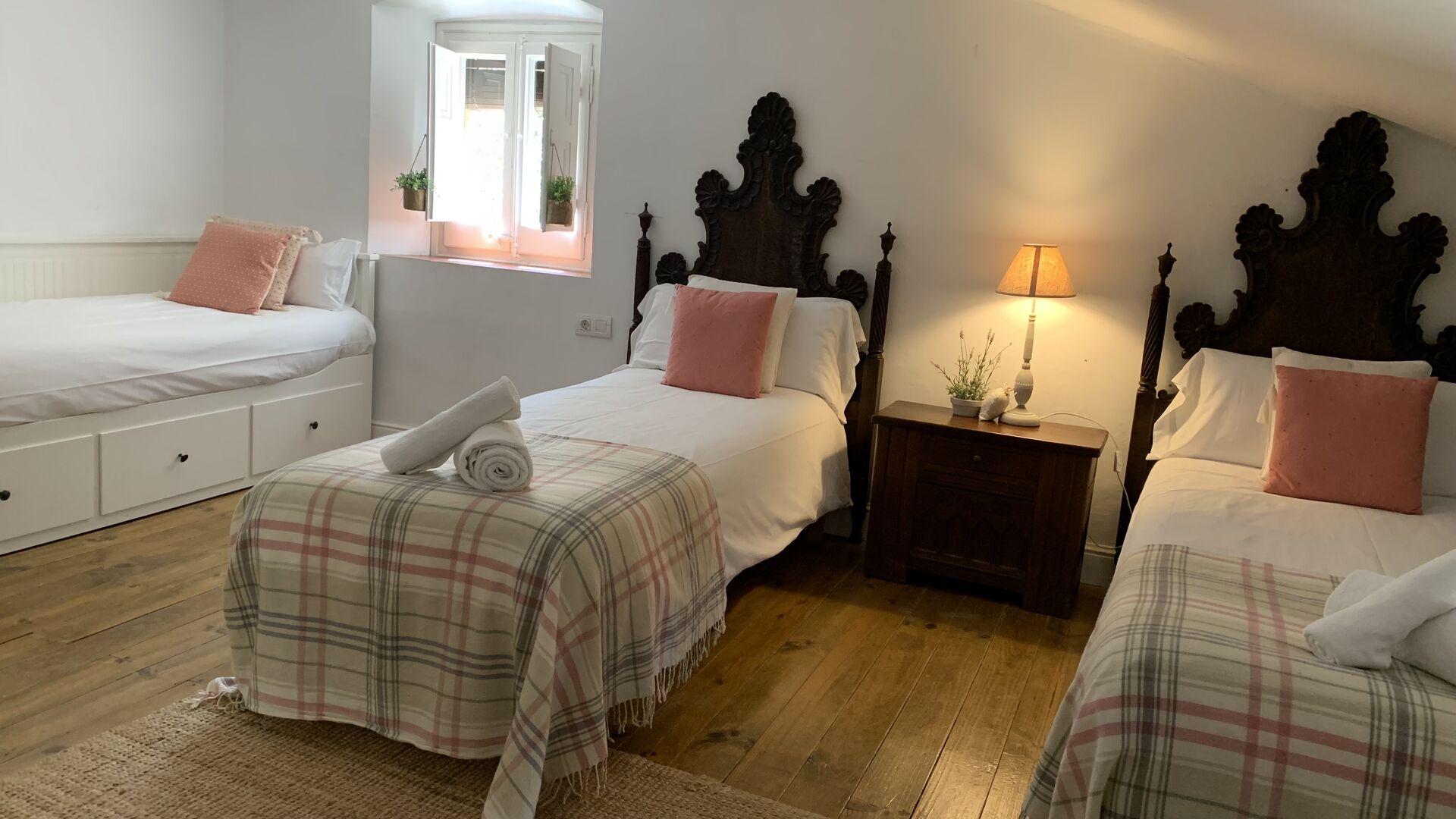 Neben dem Grillplatz befindet sich der Eingang zum Erdgeschoss des Hauses. Das Innere des Hauses wurde schön renoviert, aber natürlich mit Respekt vor der ursprünglichen Architektur des Hauses und seinen vielen wertvollen Details, wie den schönen Bögen und den Holzbalken in der Decke, die erhalten geblieben sind. Hier finden Sie vier große Schlafzimmer. Zwei der Zimmer sind Dreibettzimmer mit einem Doppelbett und einem Einzelbett, und die anderen zwei Zimmer sind Doppelzimmer - eines mit zwei Einzelbetten und das andere mit einem Doppelbett. Die Schlafzimmer teilen sich ein großes Badezimmer im Erdgeschoss.