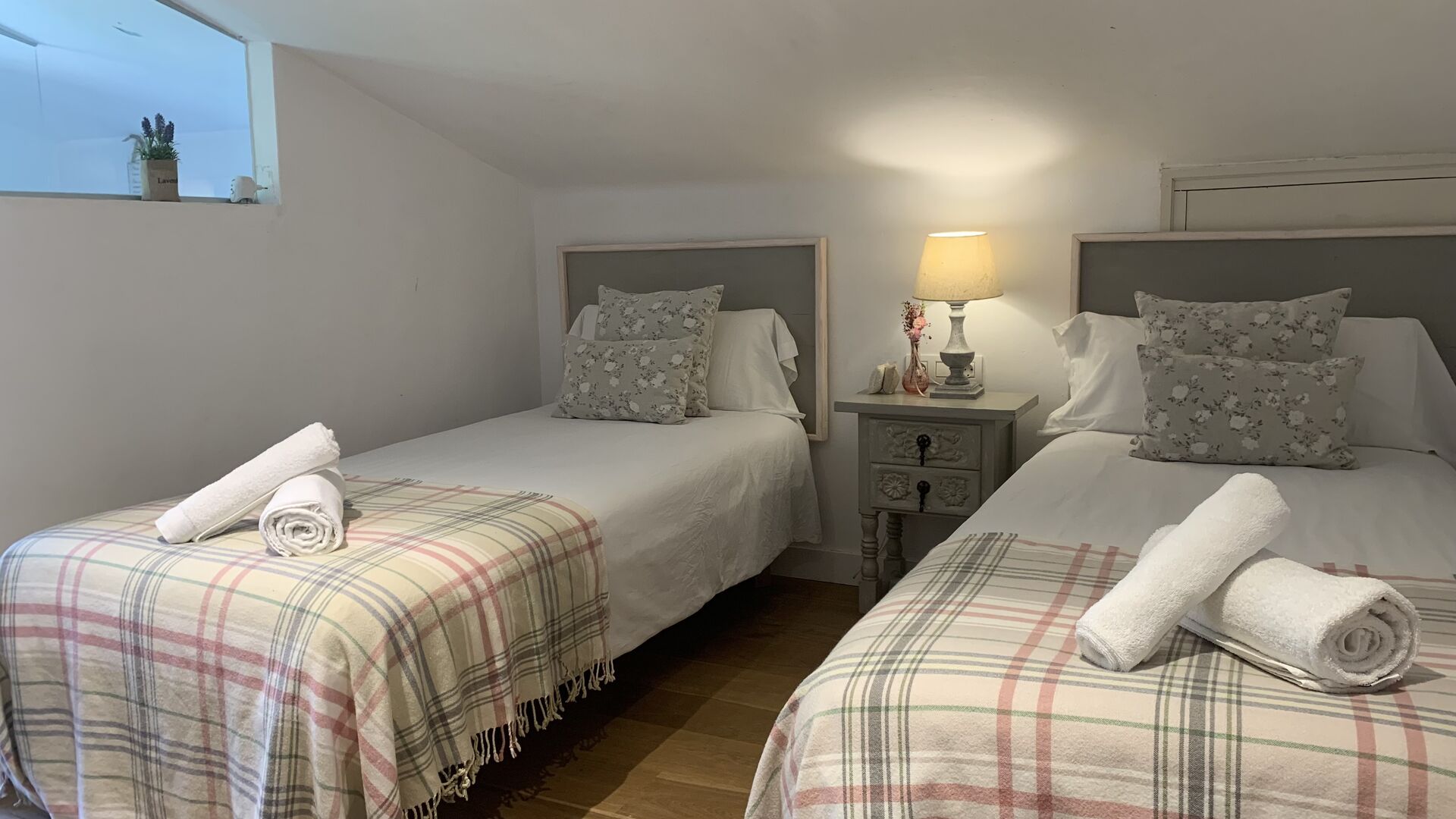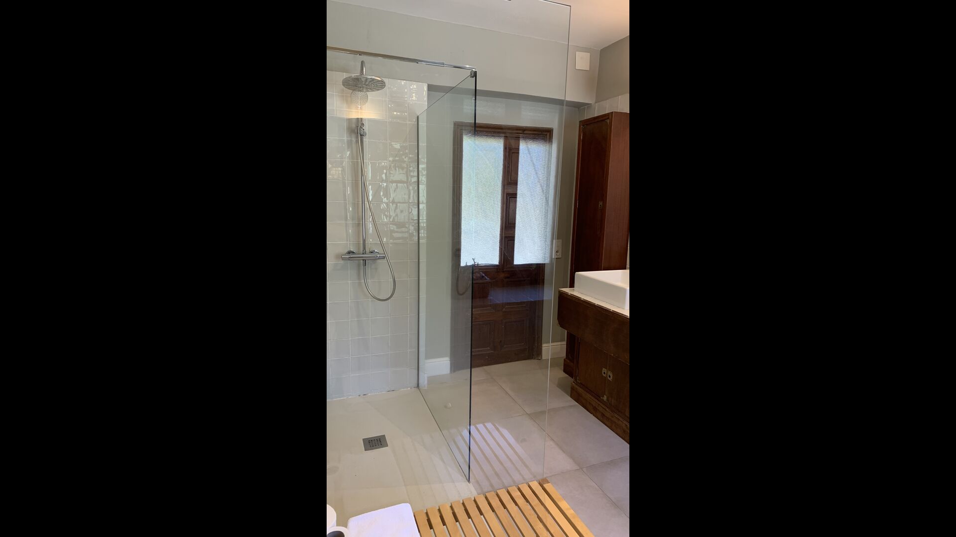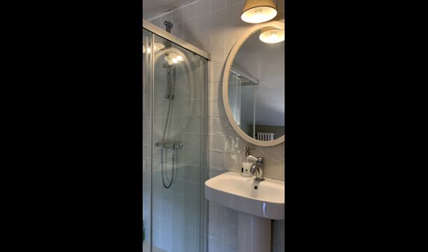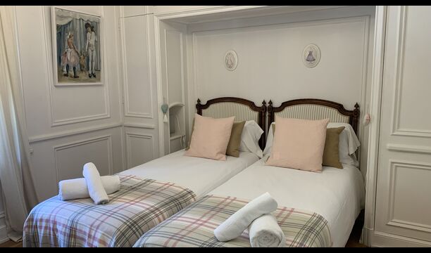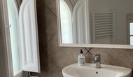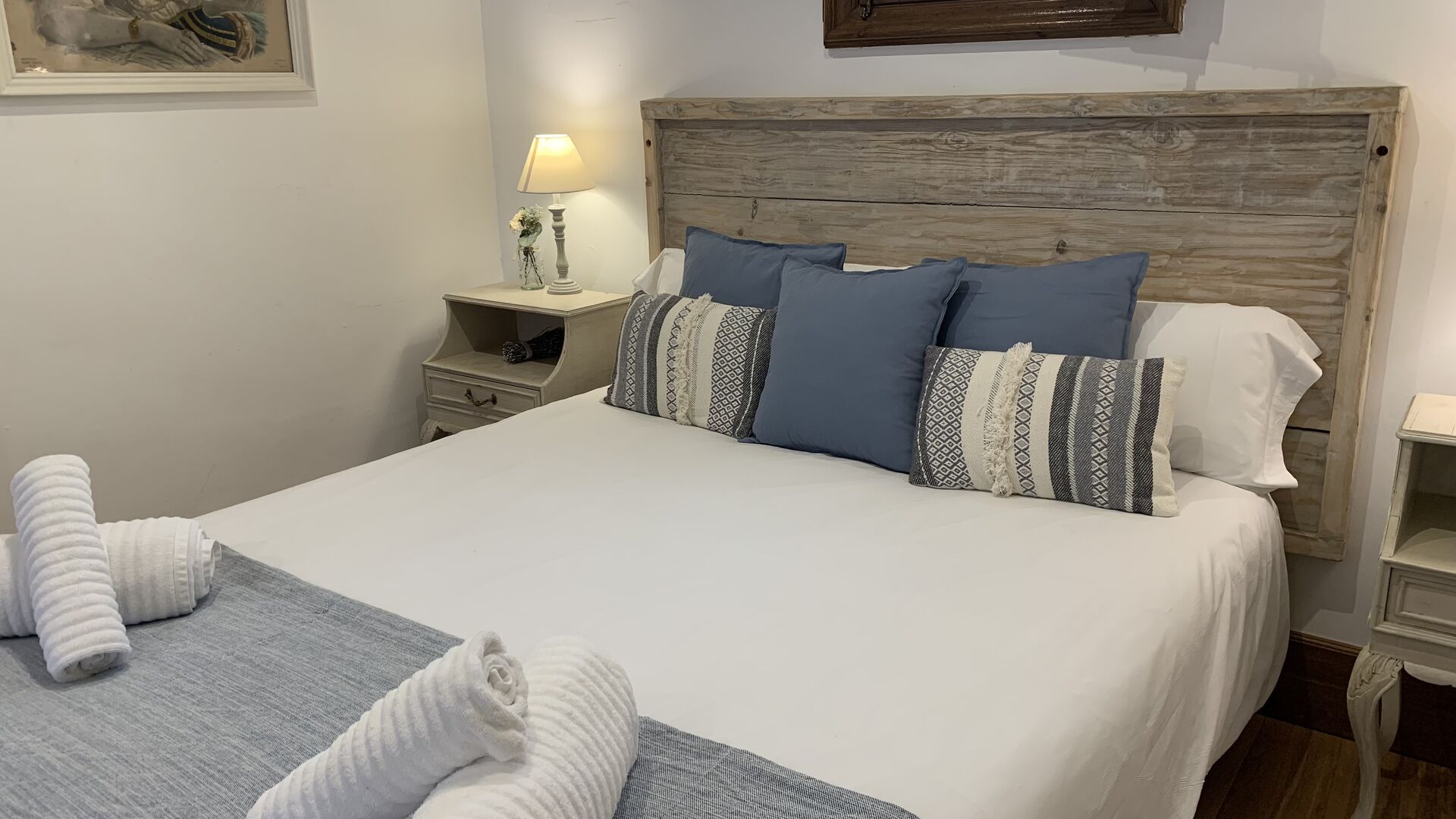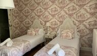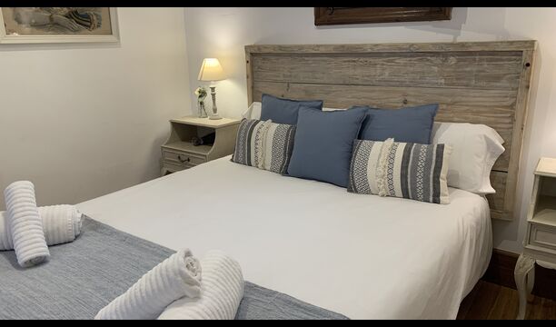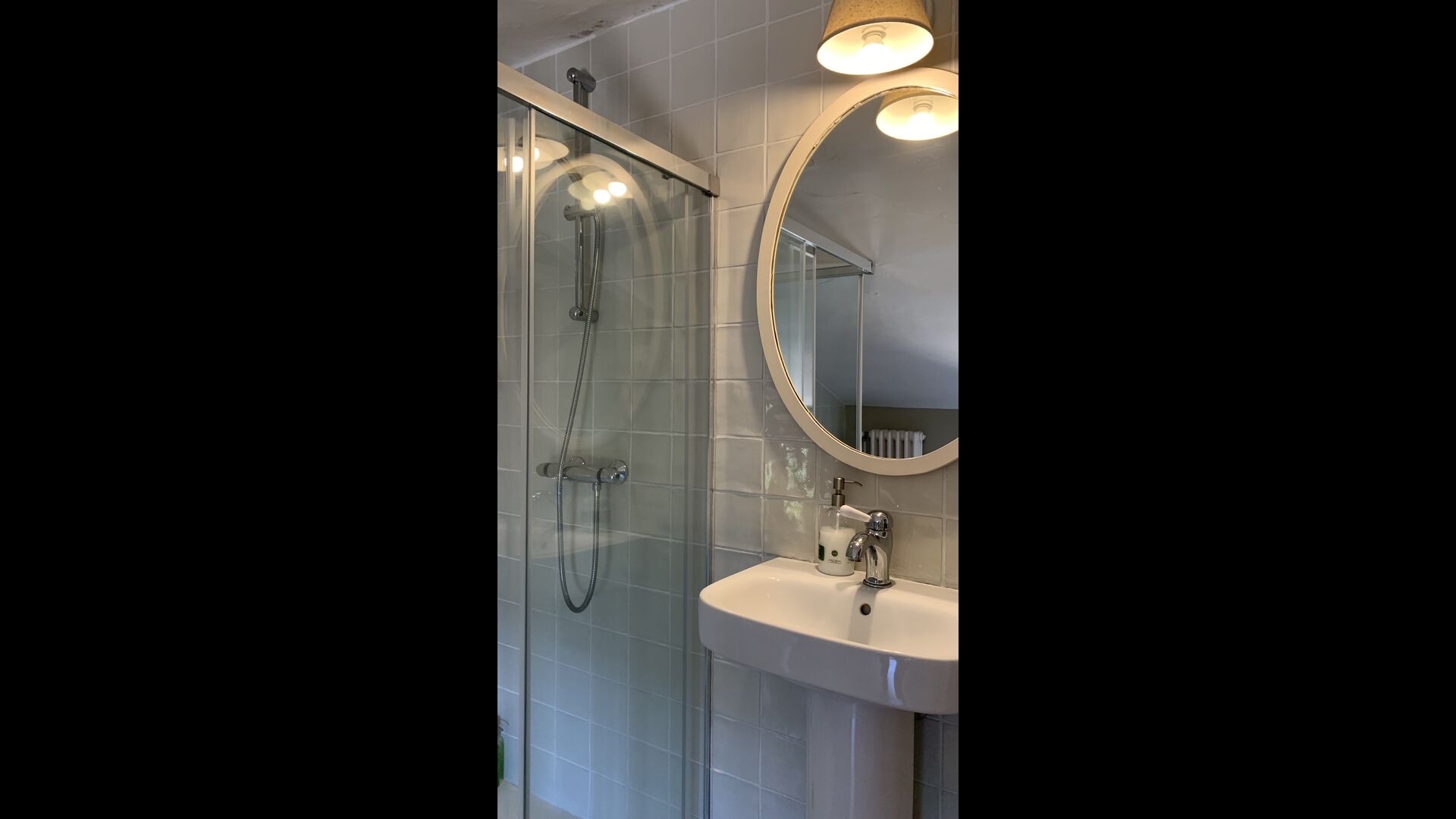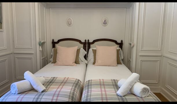 Neben dem Grillplatz befindet sich der Eingang zum Erdgeschoss des Hauses. Das Innere des Hauses wurde schön renoviert, aber natürlich mit Respekt vor der ursprünglichen Architektur des Hauses und seinen vielen wertvollen Details, wie den schönen Bögen und den Holzbalken in der Decke, die erhalten geblieben sind. Hier finden Sie vier große Schlafzimmer. Zwei der Zimmer sind Dreibettzimmer mit einem Doppelbett und einem Einzelbett, und die anderen zwei Zimmer sind Doppelzimmer - eines mit zwei Einzelbetten und das andere mit einem Doppelbett. Die Schlafzimmer teilen sich ein großes Badezimmer im Erdgeschoss.