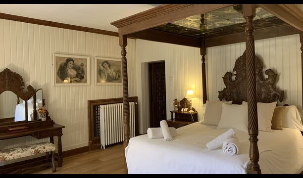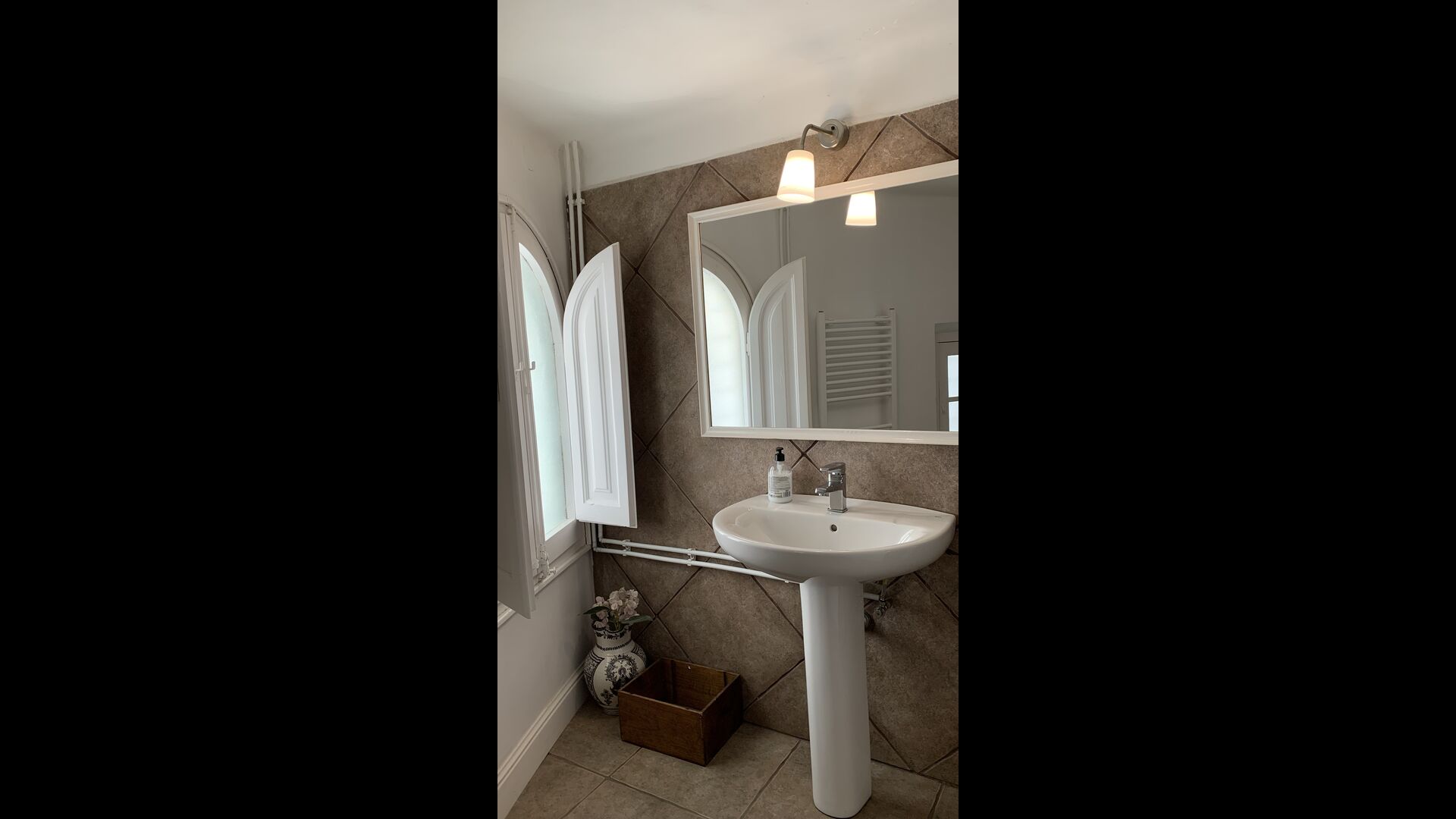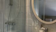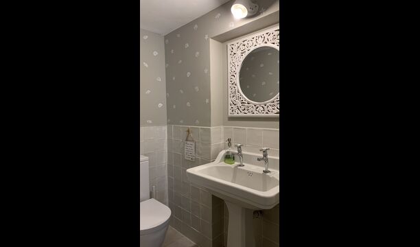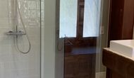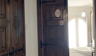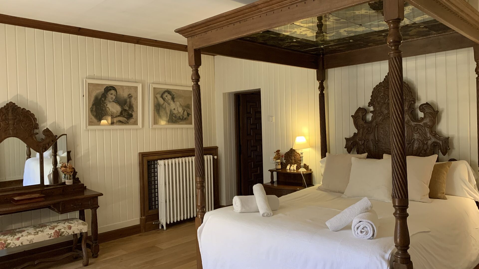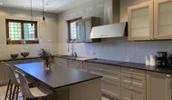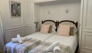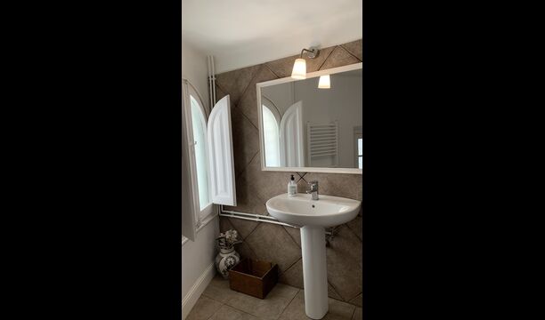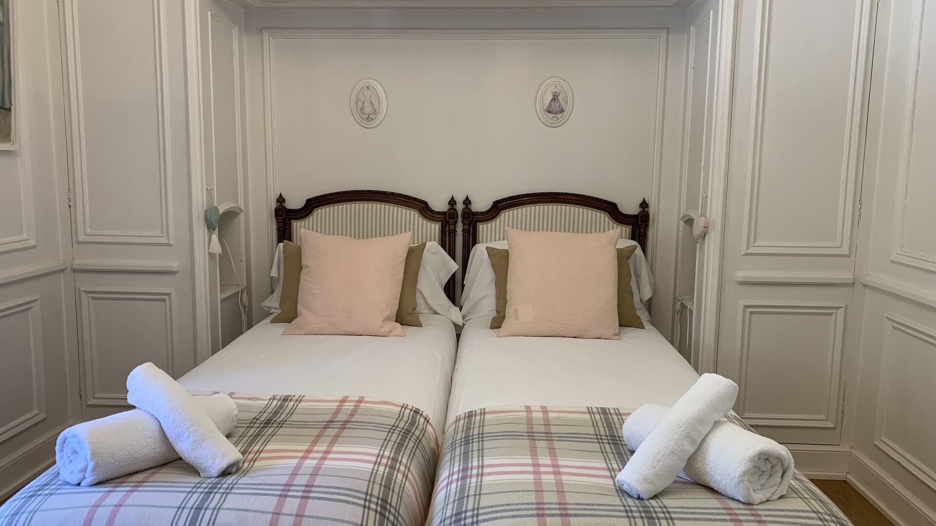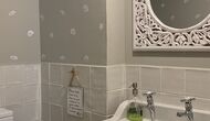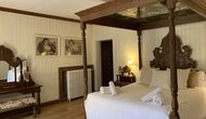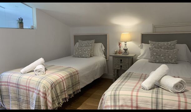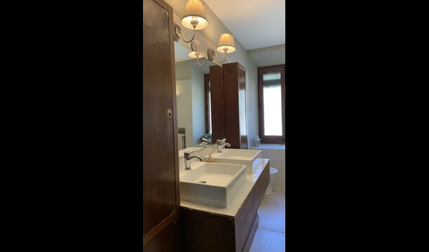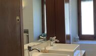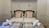 Neben dem Grillplatz befindet sich der Eingang zum Erdgeschoss des Hauses. Das Innere des Hauses wurde schön renoviert, aber natürlich mit Respekt vor der ursprünglichen Architektur des Hauses und seinen vielen wertvollen Details, wie den schönen Bögen und den Holzbalken in der Decke, die erhalten geblieben sind. Hier finden Sie vier große Schlafzimmer. Zwei der Zimmer sind Dreibettzimmer mit einem Doppelbett und einem Einzelbett, und die anderen zwei Zimmer sind Doppelzimmer - eines mit zwei Einzelbetten und das andere mit einem Doppelbett. Die Schlafzimmer teilen sich ein großes Badezimmer im Erdgeschoss.