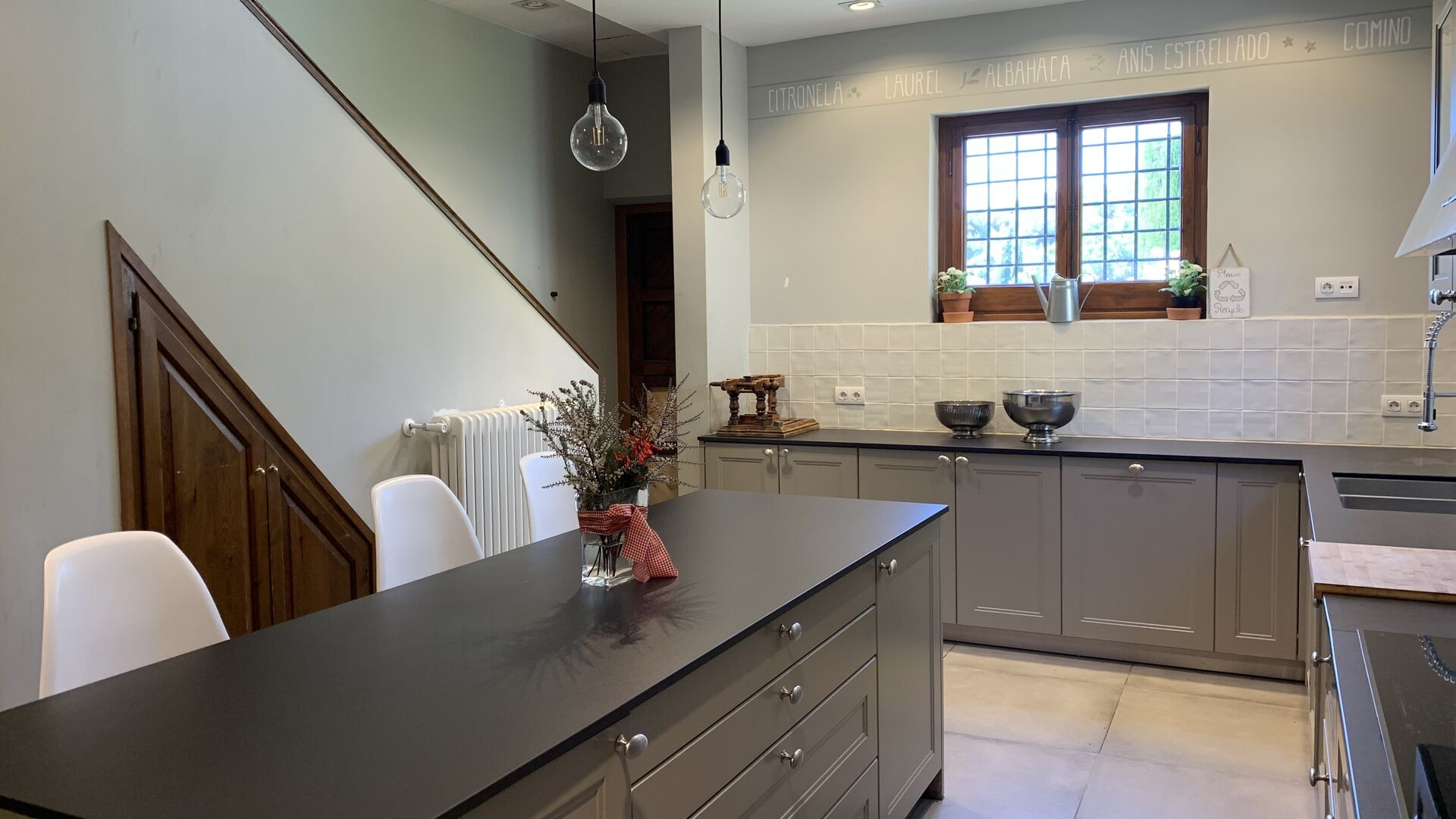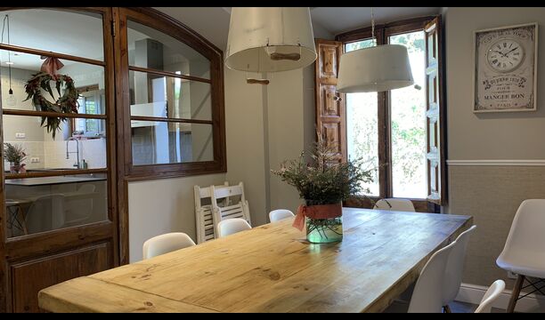 Wenn Sie Mas Sant Molina vom Haupteingang betreten, befinden Sie sich in einer großen Halle. Im Erdgeschoss finden Sie alle Gemeinschaftsräume, darunter ein gemütliches Wohnzimmer, ein großes Spielzimmer mit Billard, ein unglaubliches Esszimmer und eine voll ausgestattete Küche, die auch direkten Zugang zum Grillbereich im Freien hat. Im Erdgeschoss finden Sie auch ein Badezimmer.
