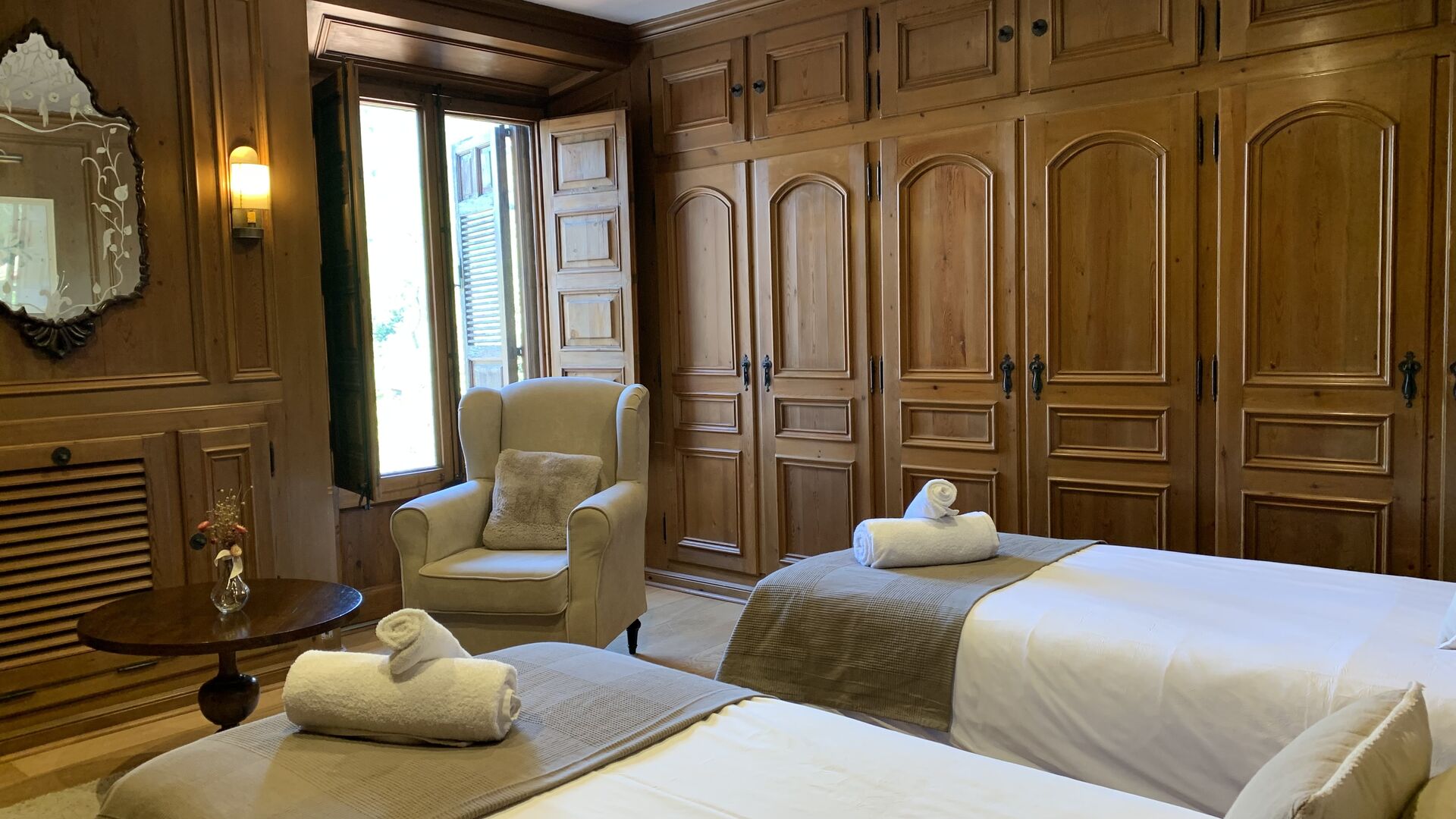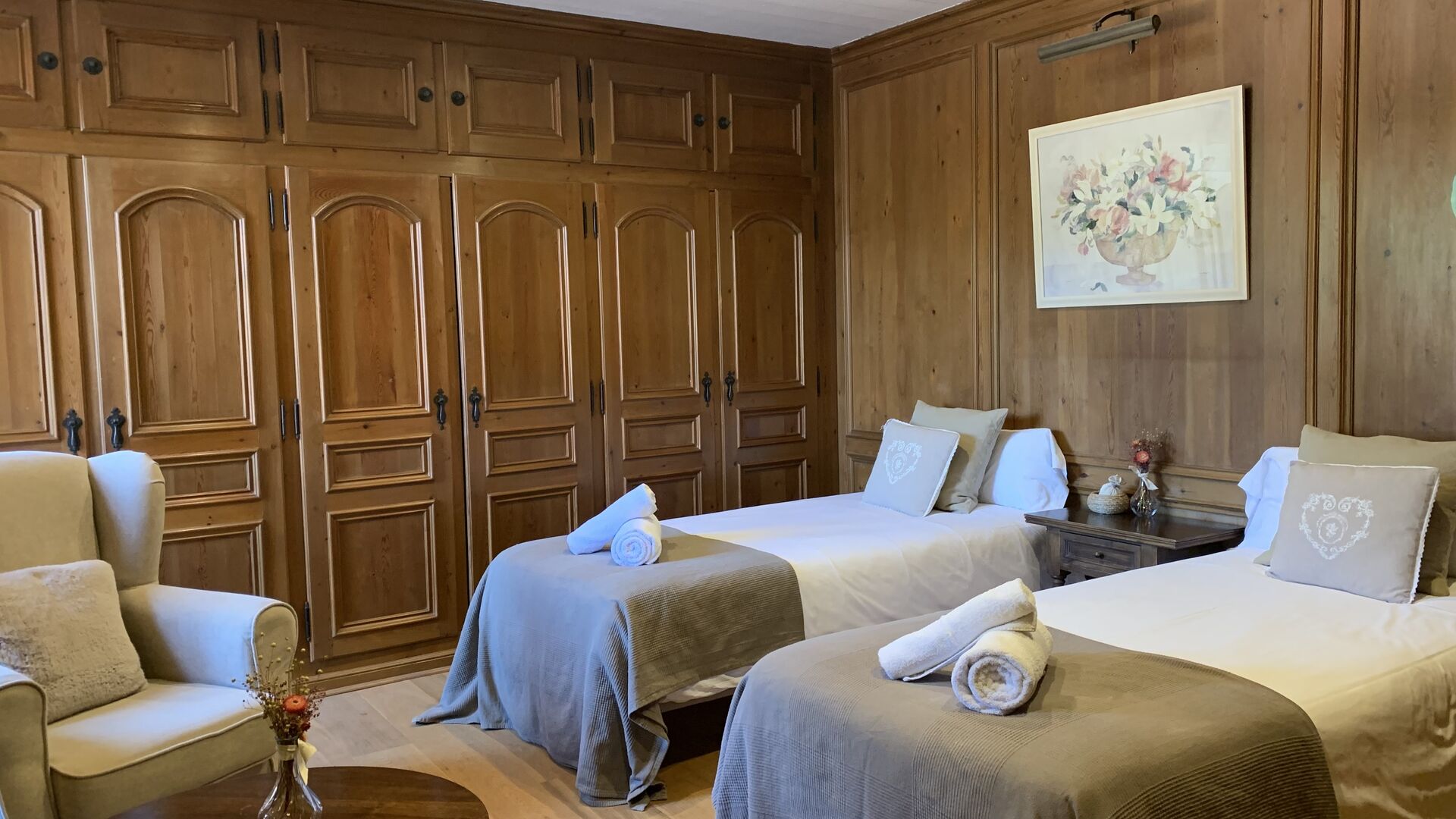Neben dem Eingang im Erdgeschoss führt eine Treppe hinauf zum Zimmer im ersten Stock. Das perfekte Kinderzimmer mit Platz für sechs Personen (ein Doppelbett und vier Einzelbetten). Das Zimmer hat auch ein eigenes Bad. Aber das Beste an der ersten Etage ist der direkte Zugang zur überdachten Terrasse, die mit einer großen Tischtennisplatte ausgestattet ist und einen Blick auf den atemberaubenden Garten und den Swimmingpool bietet.