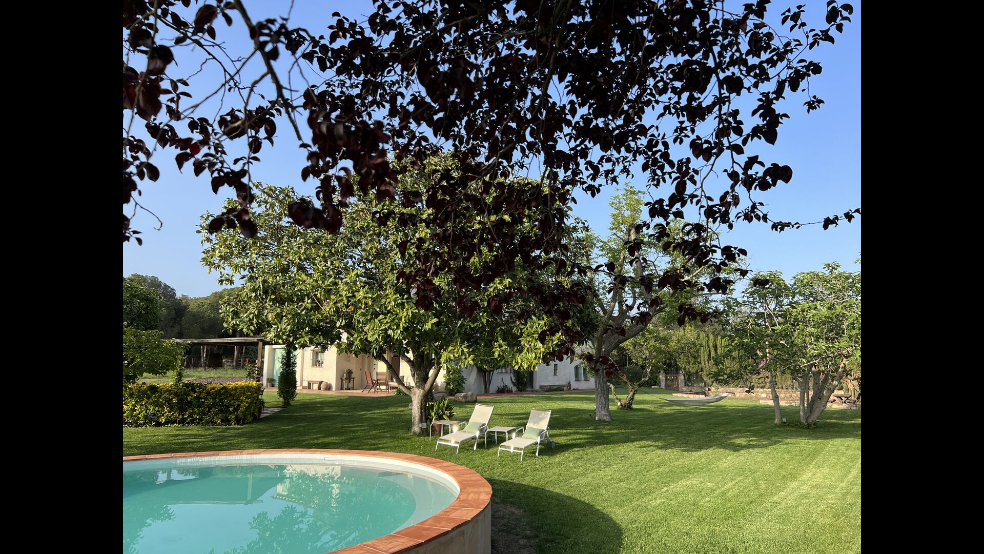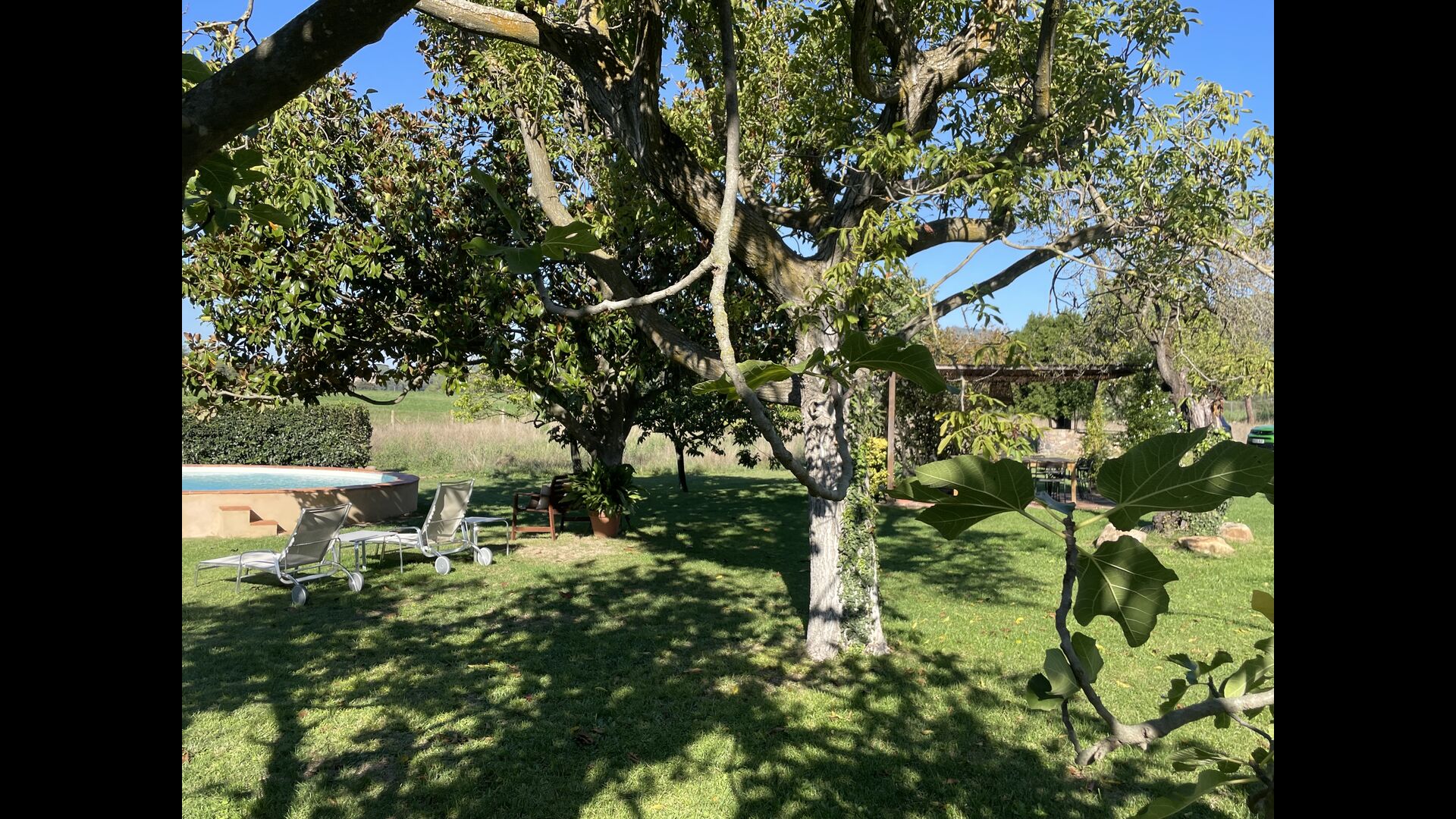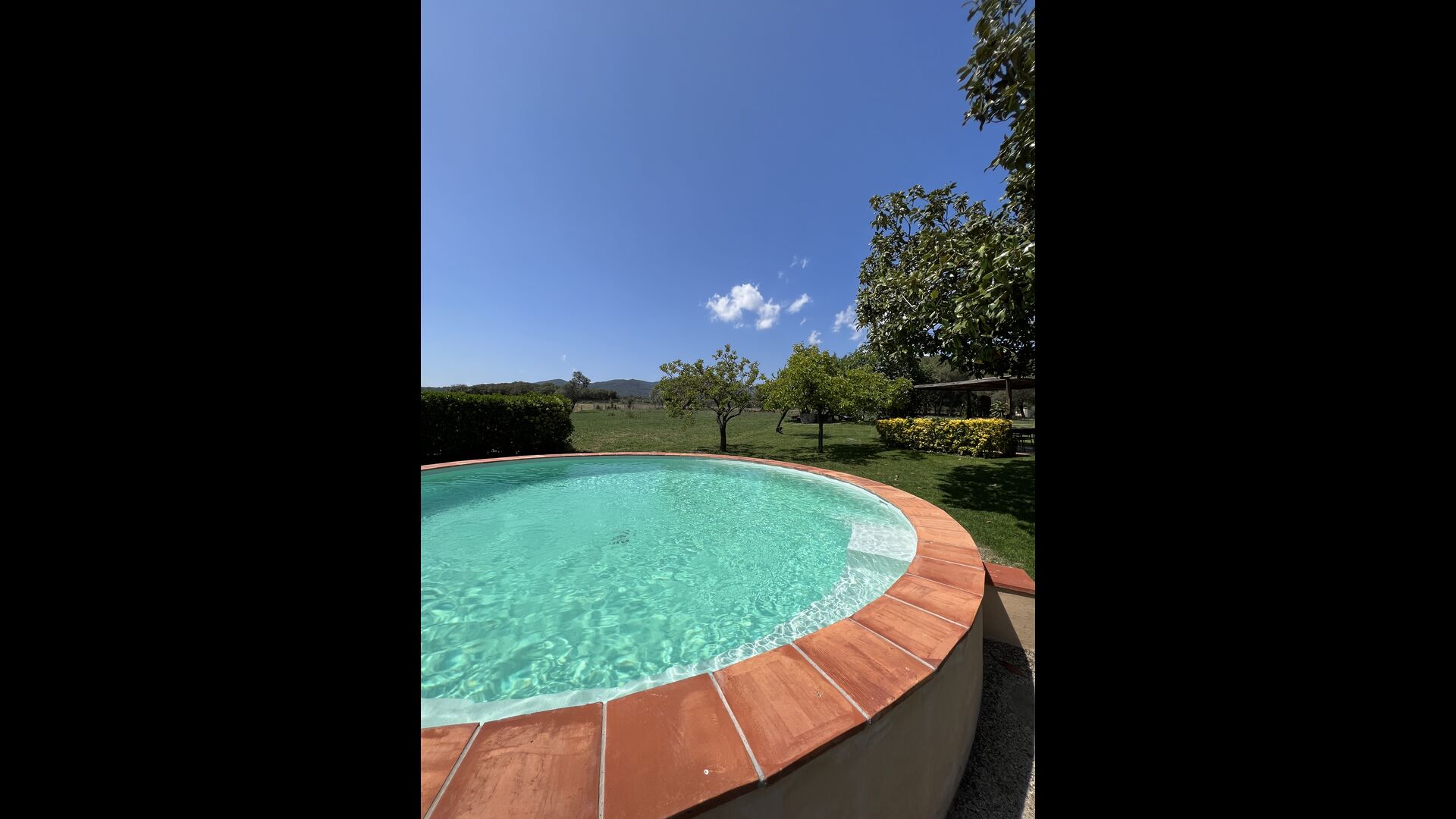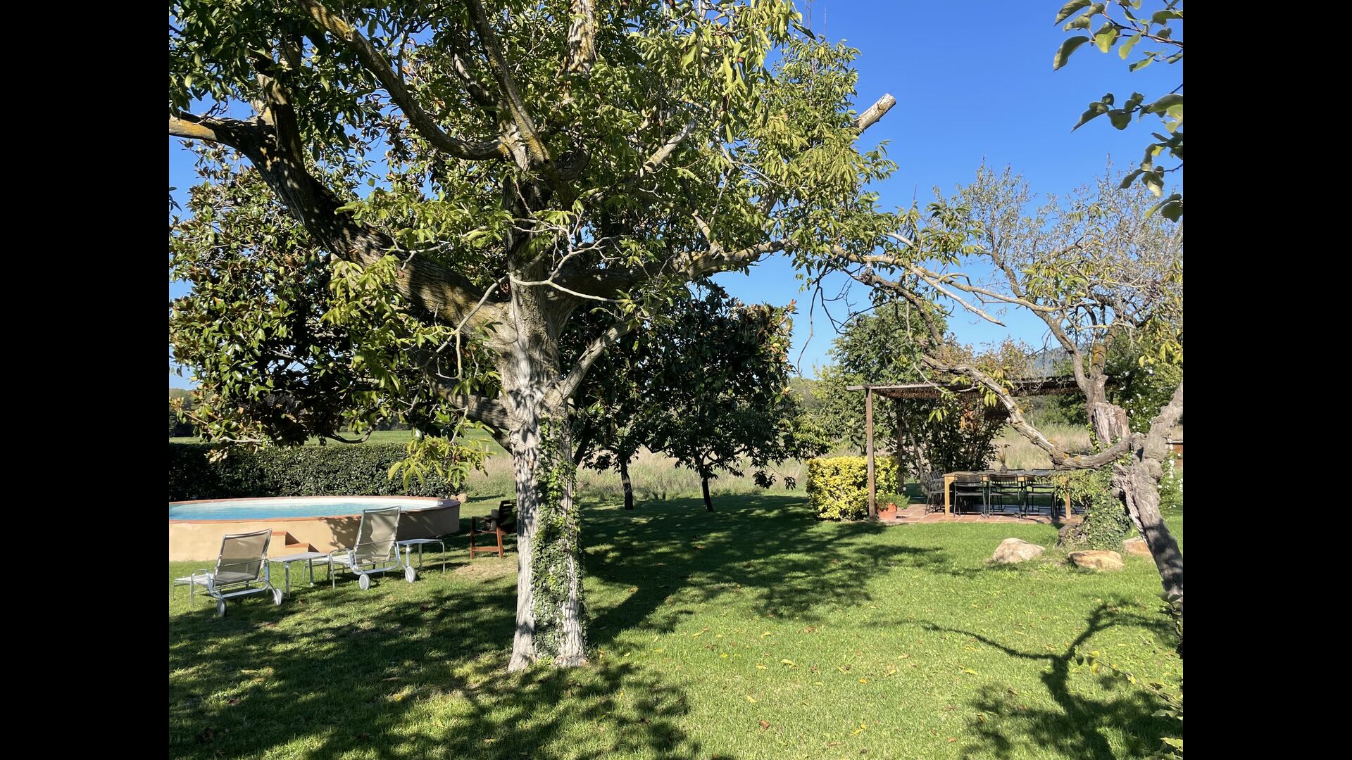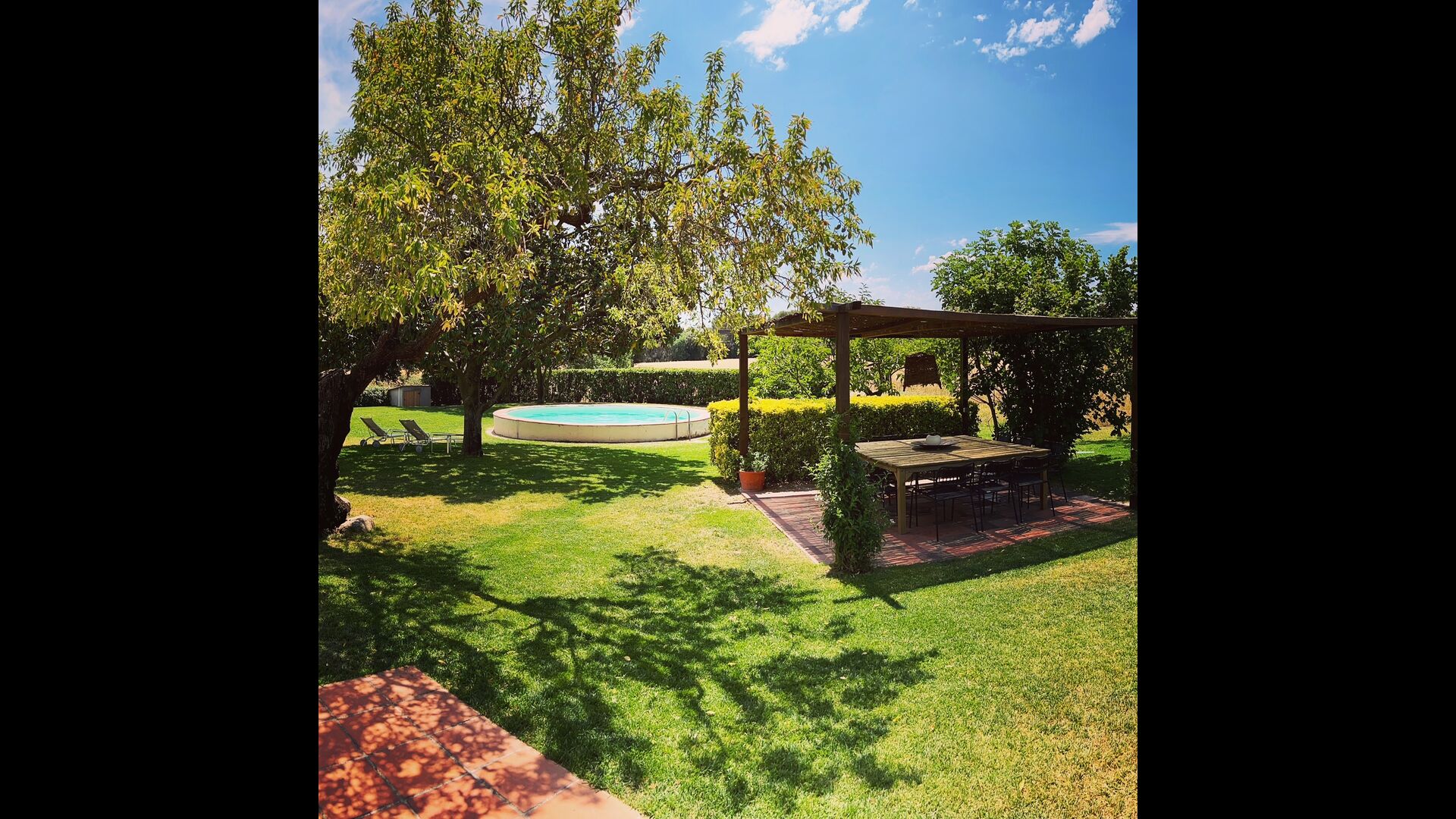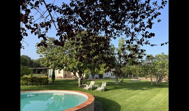 Die sorgfältig renovierte „Masia“, die mit ihren Pastellfarben Erinnerungen an den Süden Frankreichs weckt, ist von einem großen Garten umgeben > mit einem schönen schattigen Terrassenbereich mit großem Tisch; außerdem gibt es direkt vor der Hauseingangstür die gemütlichste Morgenterrasse mit Sofaecken. Im Garten gibt es viele Obstbäume, die viele schattige Plätze bieten, und einen schönen runden Swimmingpool mit Stufen und einer Bank, inklusive; Sie können im Wasser sitzen und die Aussicht genießen.