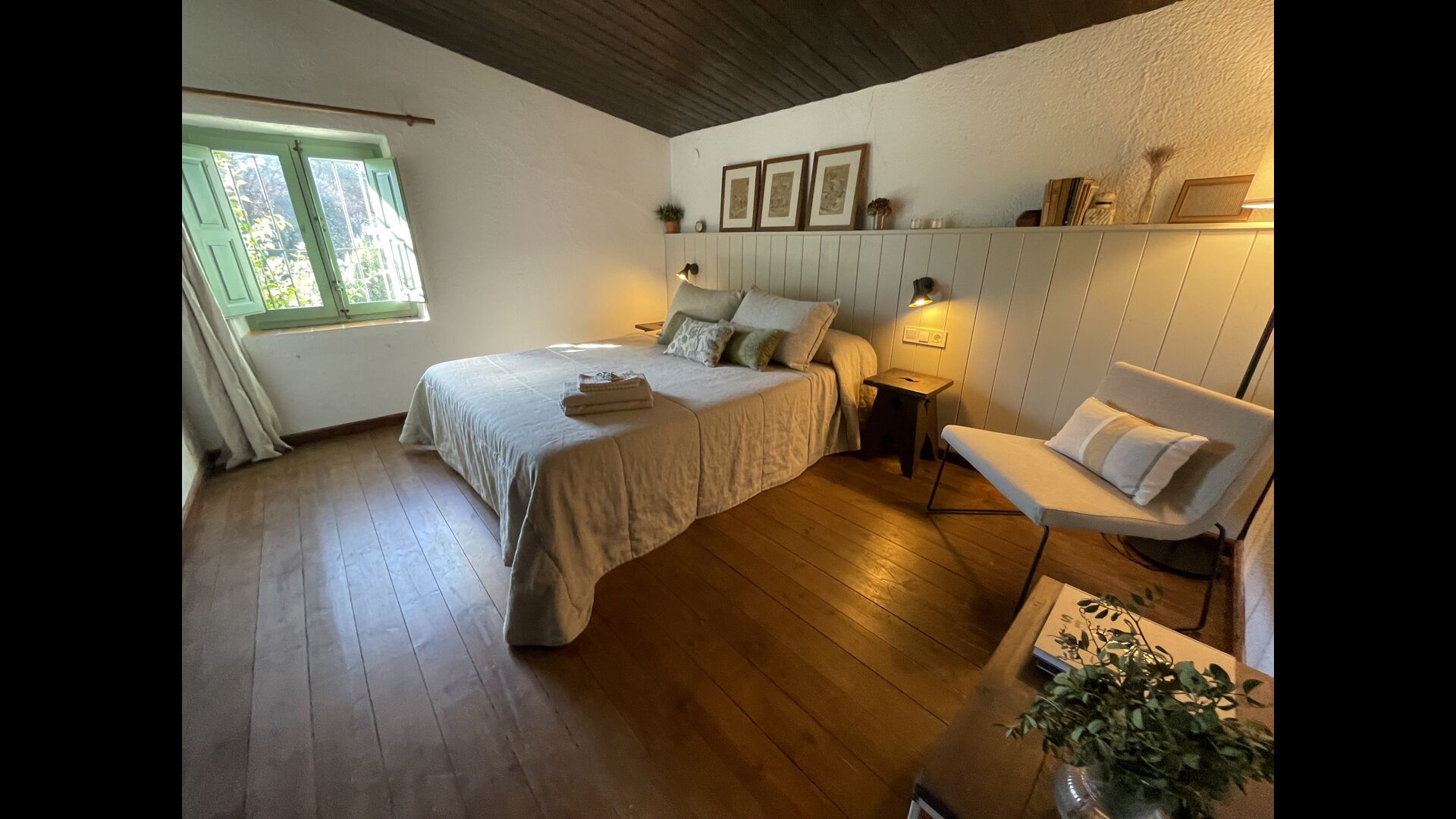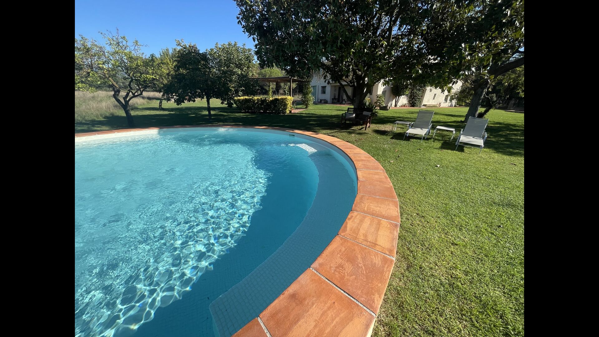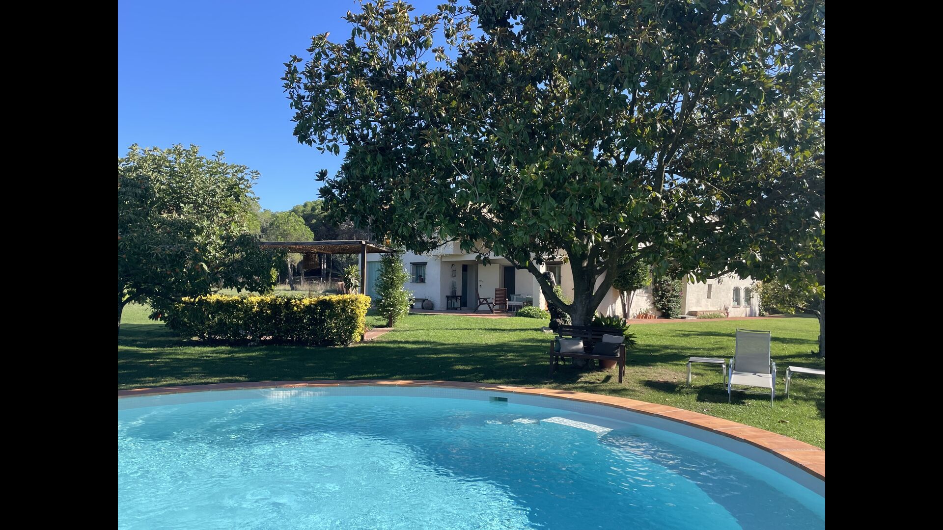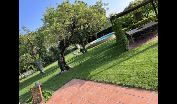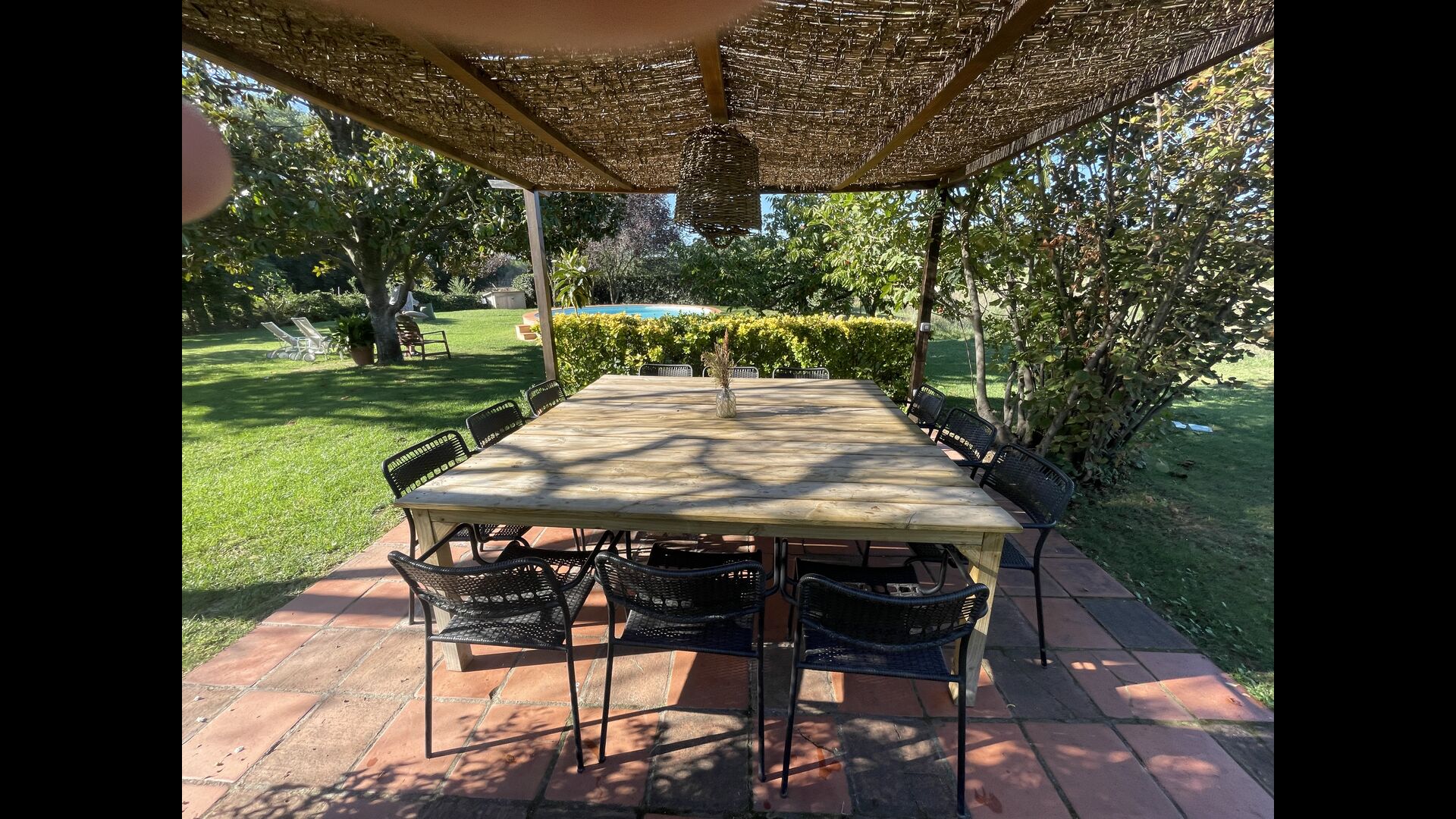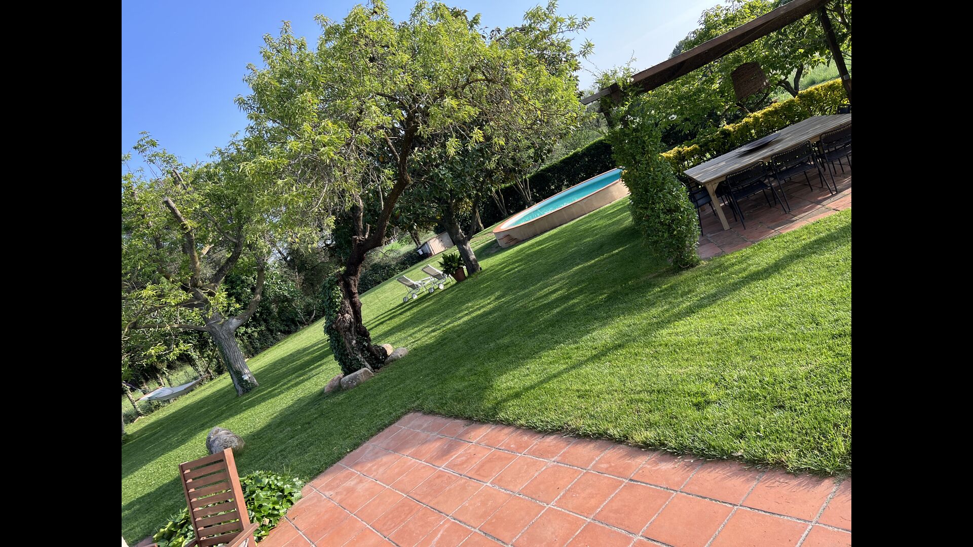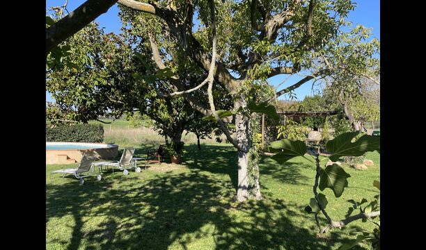 Die sorgfältig renovierte „Masia“, die mit ihren Pastellfarben Erinnerungen an den Süden Frankreichs weckt, ist von einem großen Garten umgeben > mit einem schönen schattigen Terrassenbereich mit großem Tisch; außerdem gibt es direkt vor der Hauseingangstür die gemütlichste Morgenterrasse mit Sofaecken. Im Garten gibt es viele Obstbäume, die viele schattige Plätze bieten, und einen schönen runden Swimmingpool mit Stufen und einer Bank, inklusive; Sie können im Wasser sitzen und die Aussicht genießen.