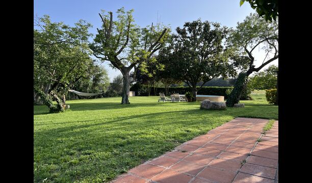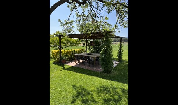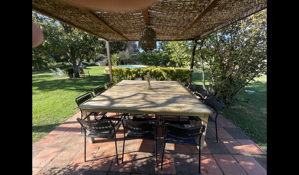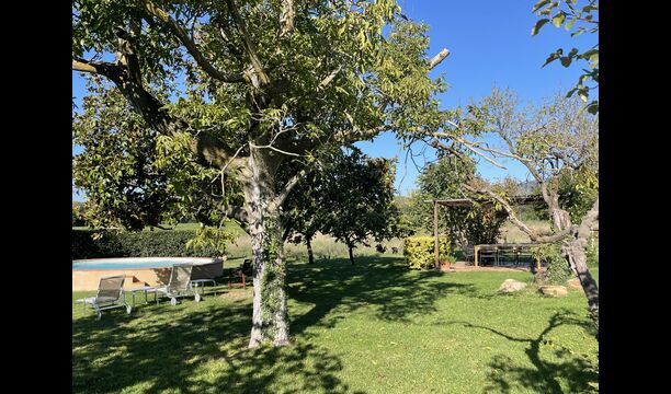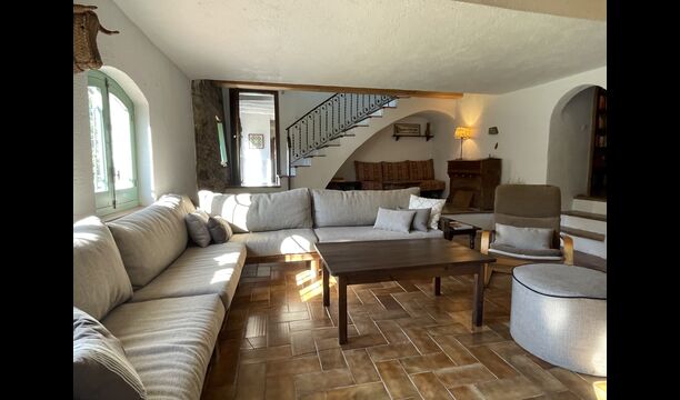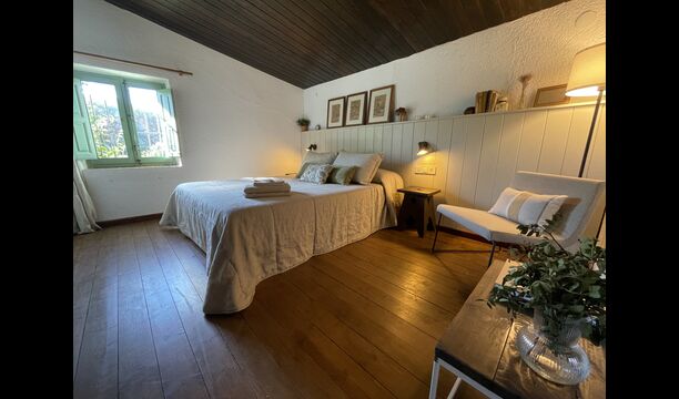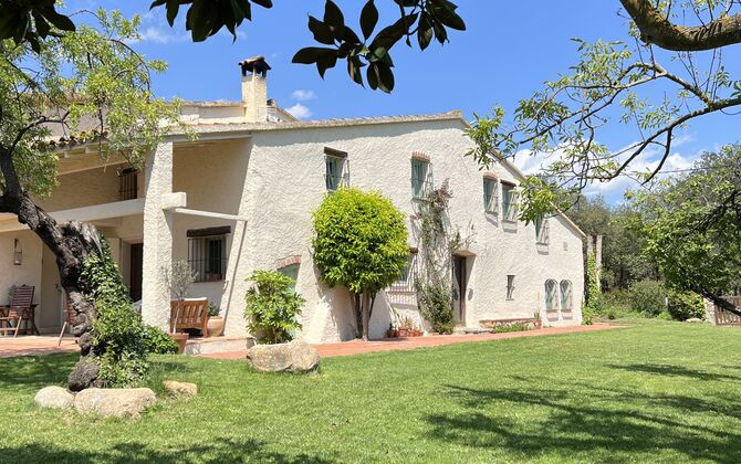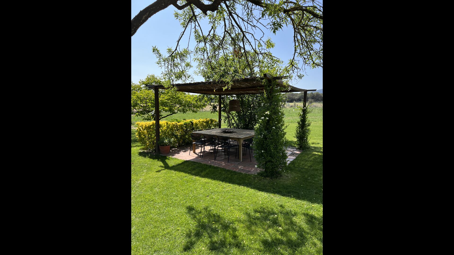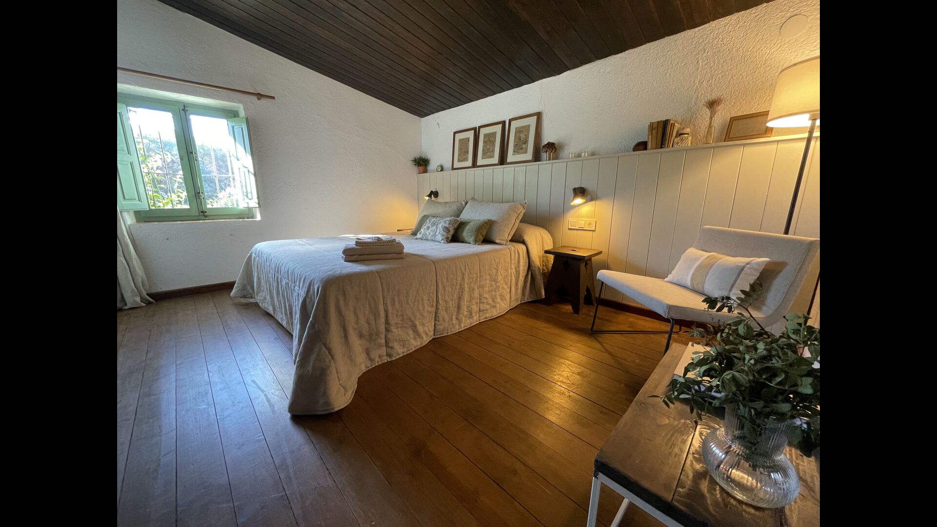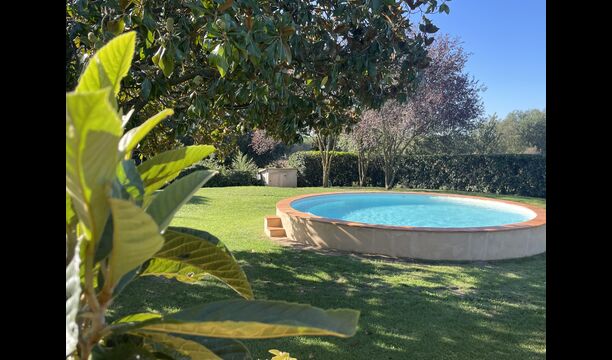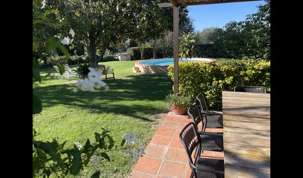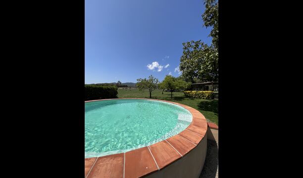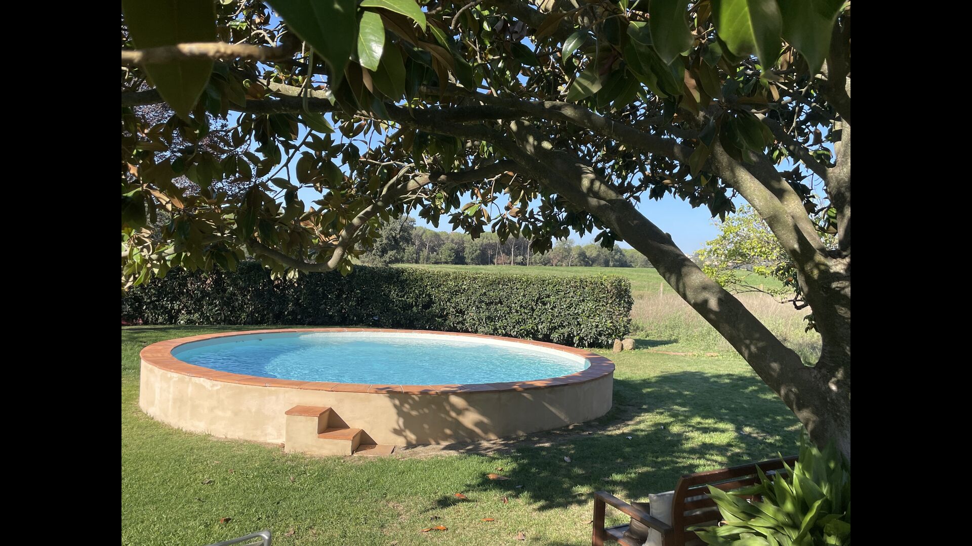 Die sorgfältig renovierte „Masia“, die mit ihren Pastellfarben Erinnerungen an den Süden Frankreichs weckt, ist von einem großen Garten umgeben > mit einem schönen schattigen Terrassenbereich mit großem Tisch; außerdem gibt es direkt vor der Hauseingangstür die gemütlichste Morgenterrasse mit Sofaecken. Im Garten gibt es viele Obstbäume, die viele schattige Plätze bieten, und einen schönen runden Swimmingpool mit Stufen und einer Bank, inklusive; Sie können im Wasser sitzen und die Aussicht genießen.