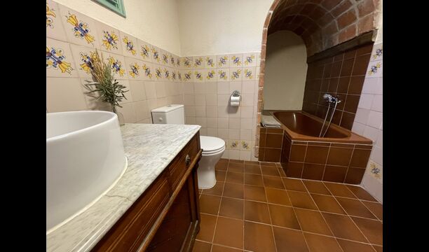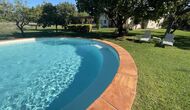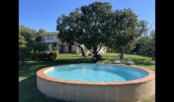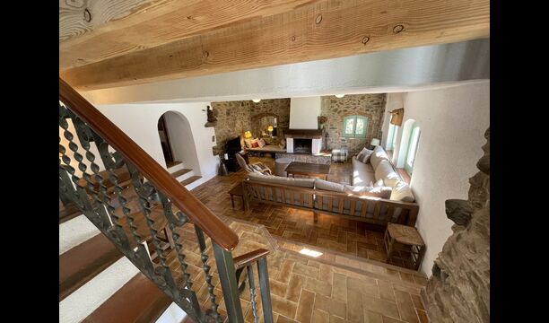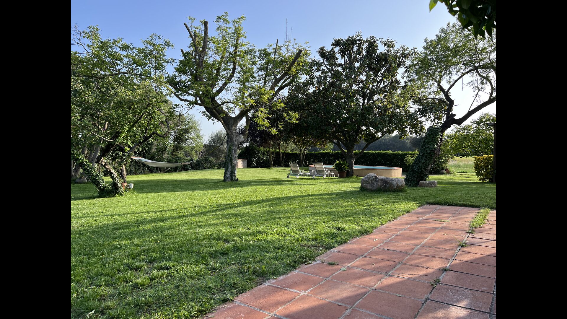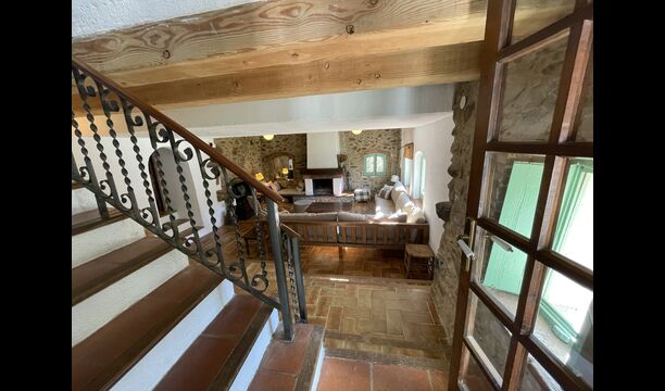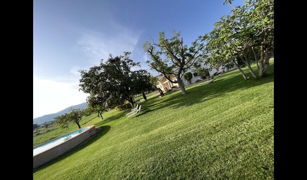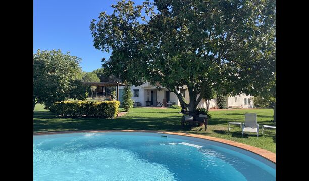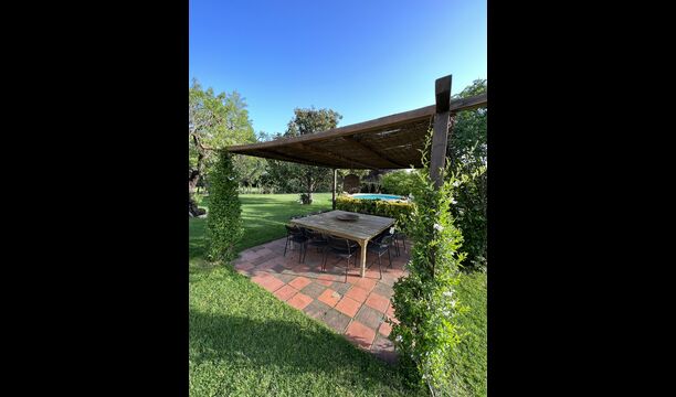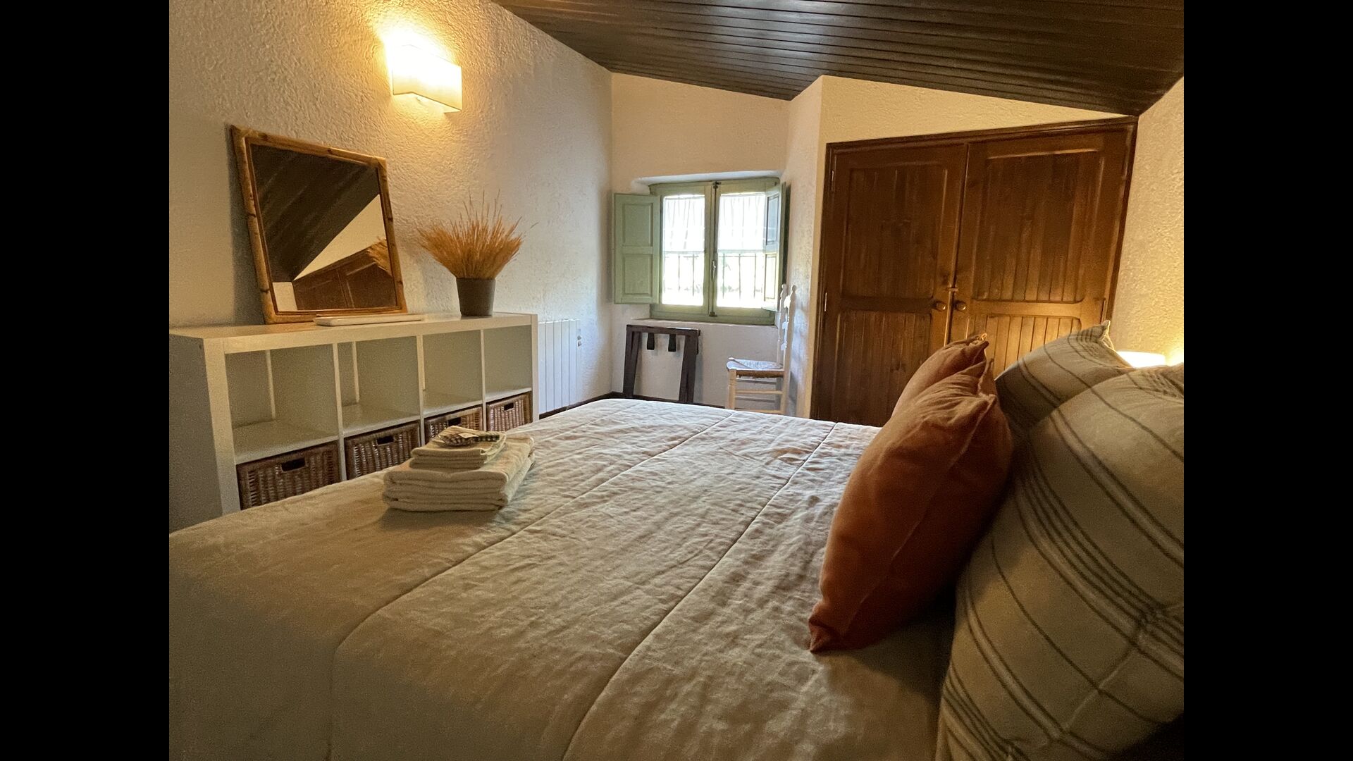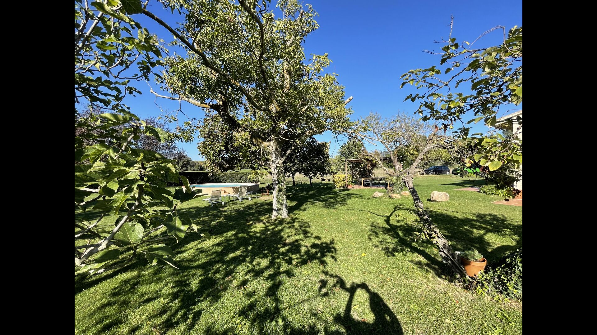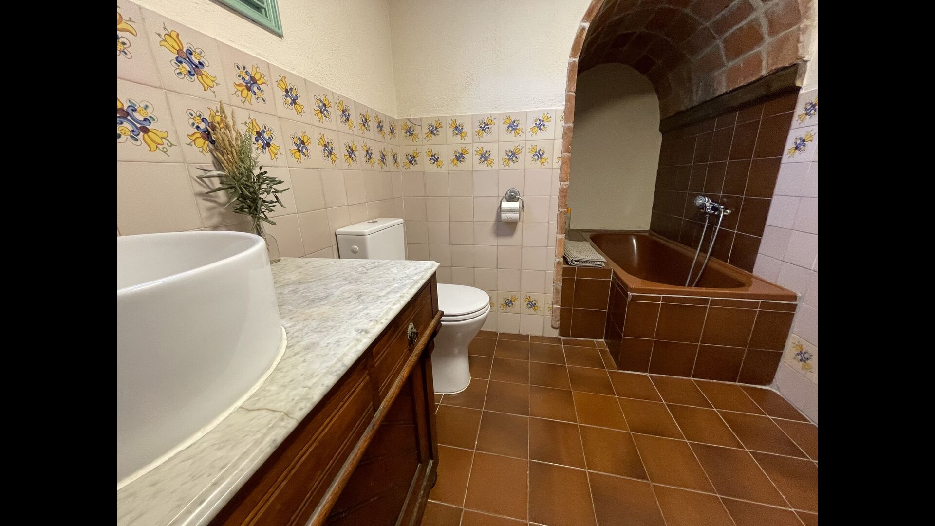 Die sorgfältig renovierte „Masia“, die mit ihren Pastellfarben Erinnerungen an den Süden Frankreichs weckt, ist von einem großen Garten umgeben > mit einem schönen schattigen Terrassenbereich mit großem Tisch; außerdem gibt es direkt vor der Hauseingangstür die gemütlichste Morgenterrasse mit Sofaecken. Im Garten gibt es viele Obstbäume, die viele schattige Plätze bieten, und einen schönen runden Swimmingpool mit Stufen und einer Bank, inklusive; Sie können im Wasser sitzen und die Aussicht genießen.