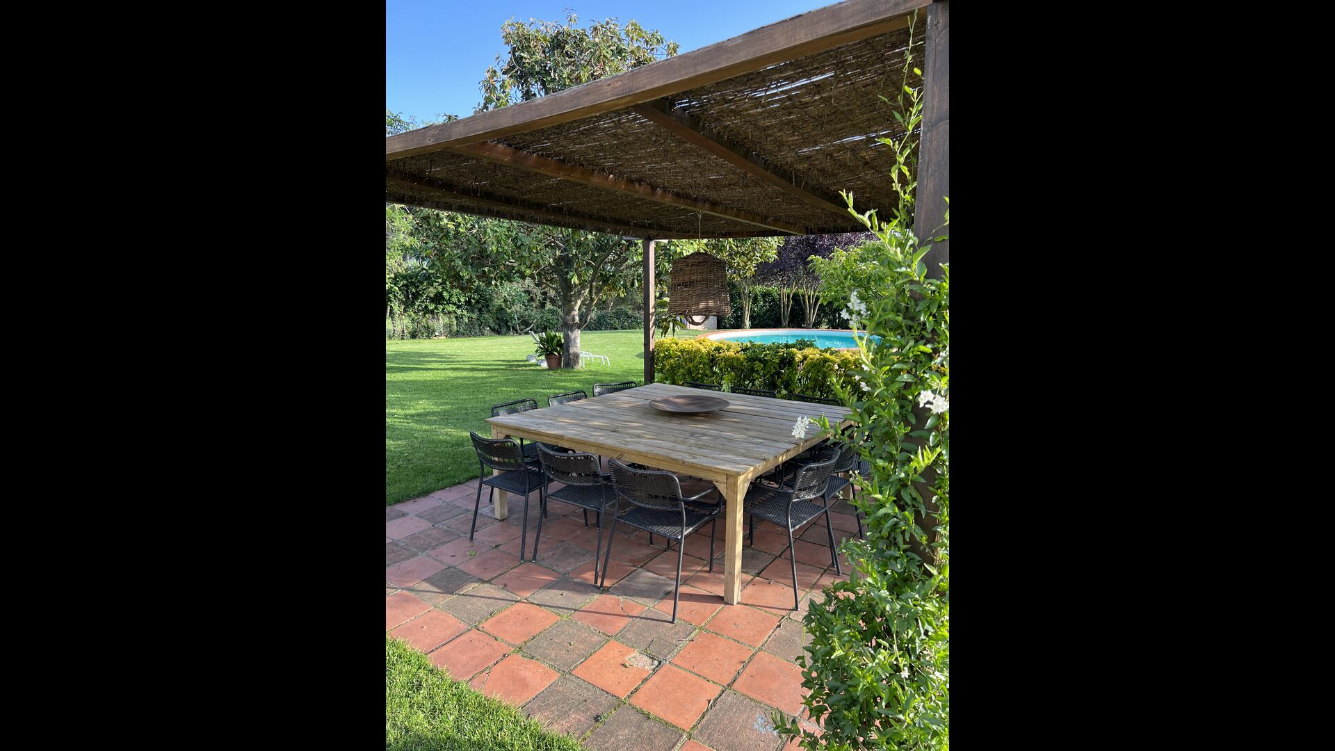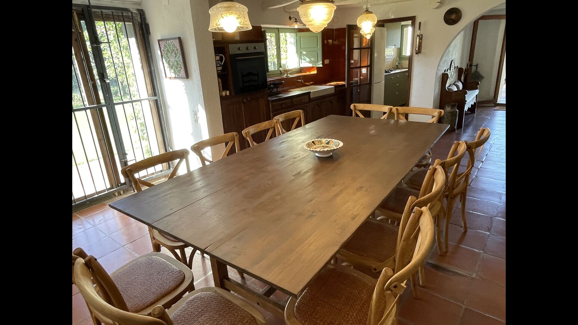 Sie können sitzen und die Aussicht genießen, nur einen Schritt von der Tür zum Erdgeschoss entfernt, wenn die Hitze zunimmt. In der Mitte des Gartens gibt es einen zusätzlichen Ess-/Ruhebereich mit Baldachin und einem schönen Tisch und Stühlen. Der Garten ist mit wunderschönen Bäumen und Sträuchern geschmückt und vom wunderschönen Swimmingpool aus können Sie auf Ihr kleines Stück Paradies blicken. Der Pool verfügt außerdem über eine eingebaute Bank, wenn Sie z.B. Sie müssen Ihre Beine ausruhen, nachdem Sie mit den Kindern gespielt haben, oder Sie möchten einfach nur im sanft plätschernden Wasser in der herrlichen katalanischen Sonne entspannen.