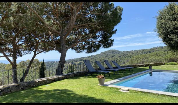 Der Poolbereich und der umliegende Garten sind das Herzstück des Hauses, in dem Sie unserer Meinung nach die meiste Zeit verbringen werden. Der Pool hat eine atemberaubende Aussicht mit dem Mittelmeer, das im Hintergrund hervorlugt. Wenn Sie gerne Zeit am Pool verbringen, schwimmen, lesen und die Natur genießen, dann scheint Mas Sant Molinda sicherlich das perfekte Ferienhaus für Sie zu sein!