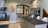 Wenn Sie das Haus vom Haupteingang betreten, befinden Sie sich in einer großen Halle. Im Erdgeschoss finden Sie alle Gemeinschaftsräume, darunter ein gemütliches Wohnzimmer, ein großes Spielzimmer mit Billard, ein unglaubliches Esszimmer und eine große, voll ausgestattete Küche, die auch direkten Zugang hat zum Grillplatz im Freien. Es gibt auch ein Gemeinschaftsbad im Erdgeschoss, in der Nähe des Swimmingpools.