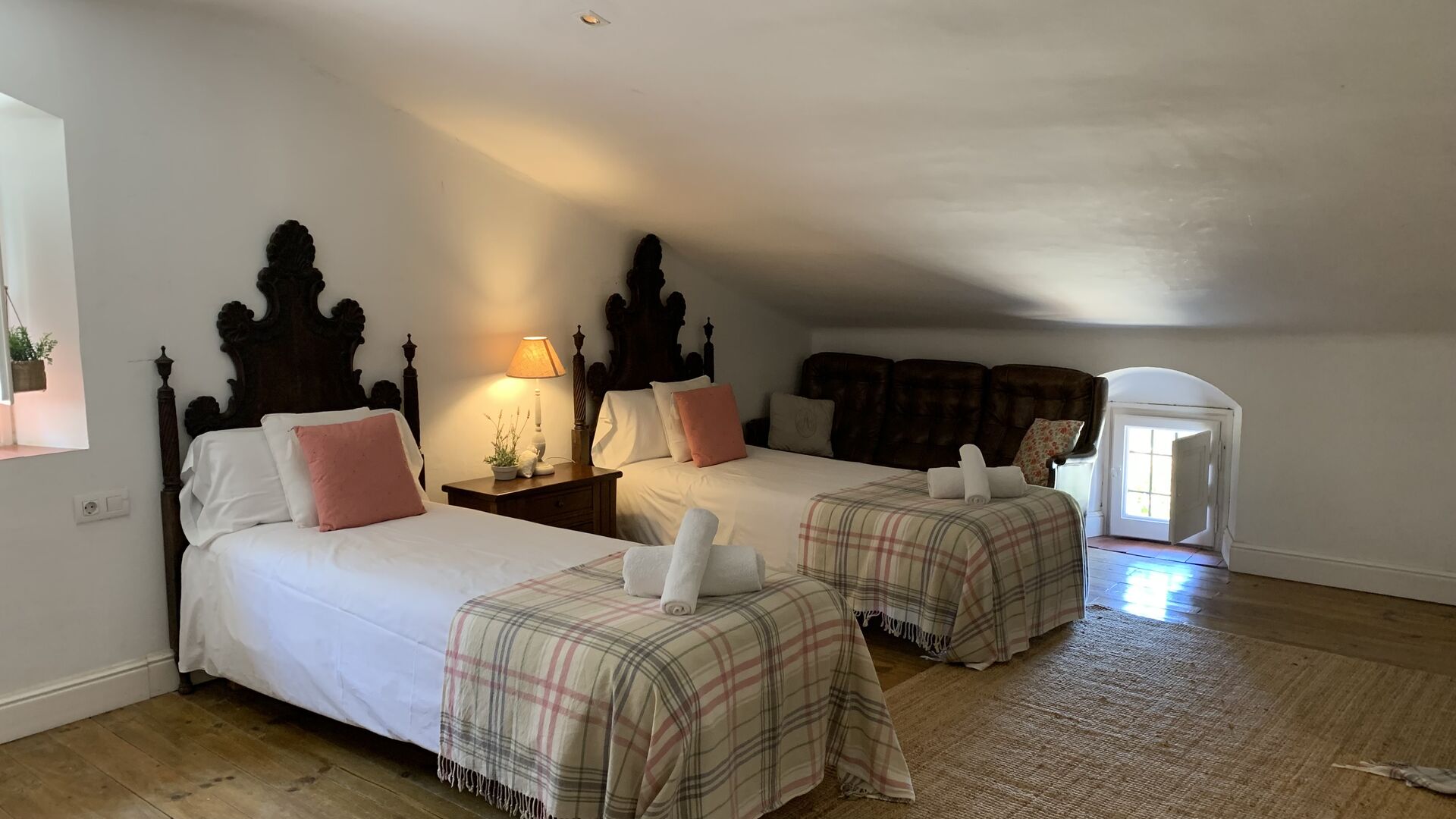 Im Prinzip können bis zu 22 Gäste im Haus übernachten, aber beachten Sie, dass das Haus über eine obere Etage mit 1 Doppelbett, 2 Einzelbetten und 1 Badezimmer mit recht niedrigen Decken verfügt zur Authentizität des Hauses; Daher ist dieser Boden nur für nicht sehr große Personen (oder Kinder) zu empfehlen.
