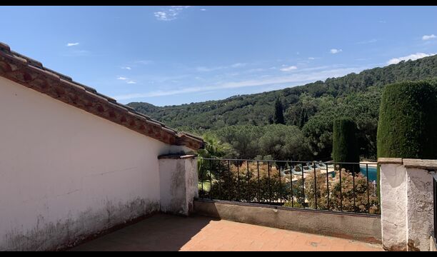 Beim Poolbereich finden Sie einen schattigen Bereich mit großem Esstisch, der auch die herrliche Aussicht vom Swimmingpool teilt. Der perfekte Ort, um bei warmem katalanischem Wetter Mahlzeiten im Freien oder einen Drink mit der gesamten Urlaubsgruppe zu genießen.