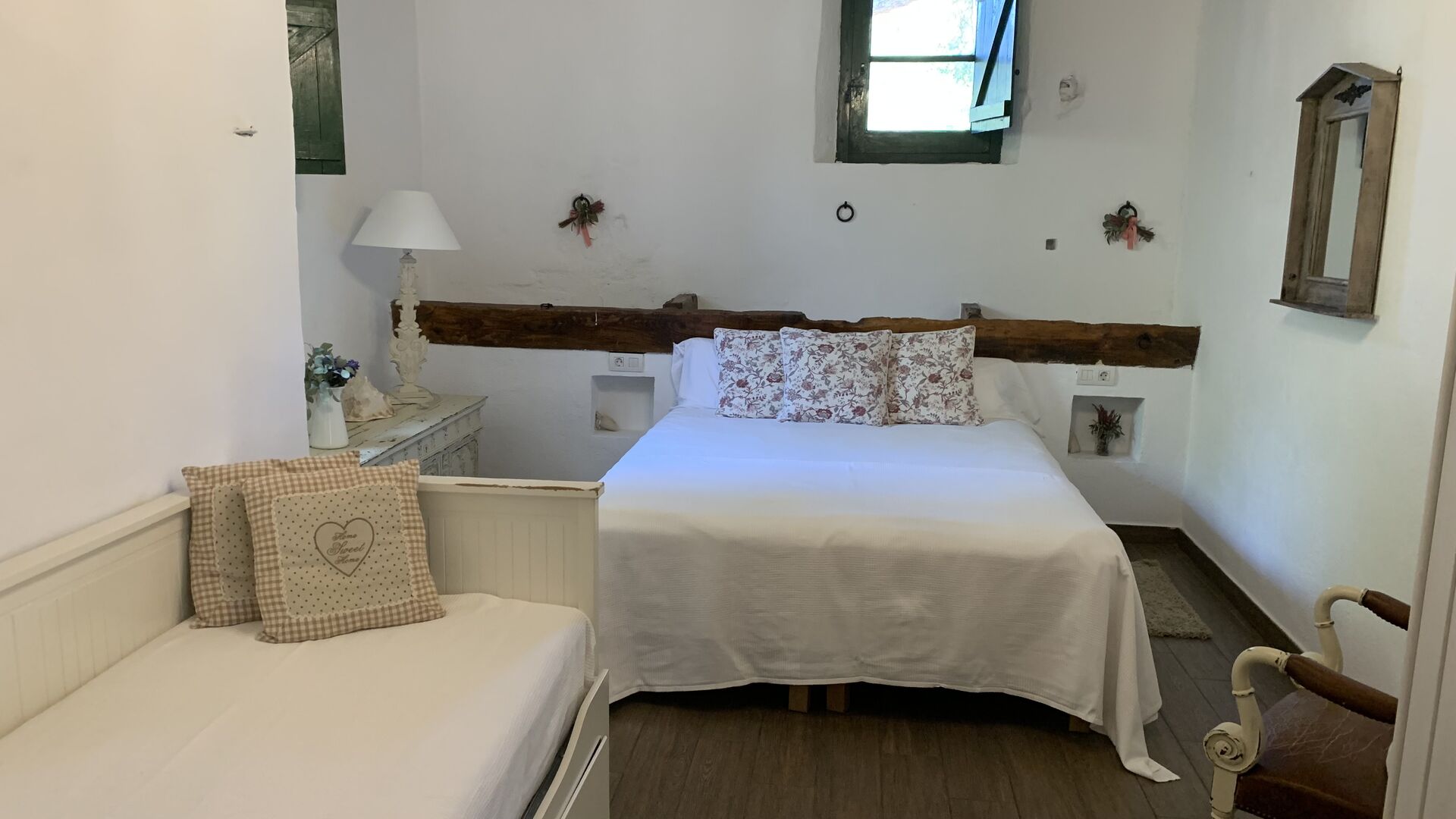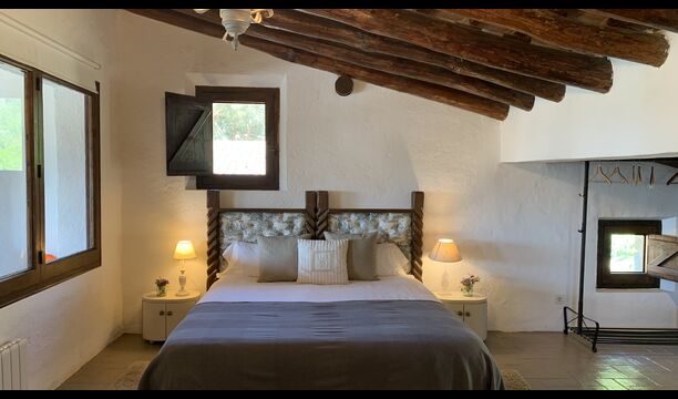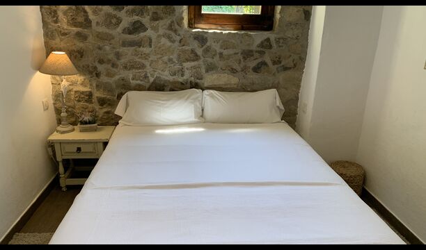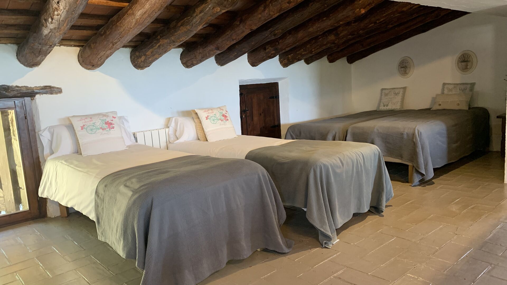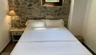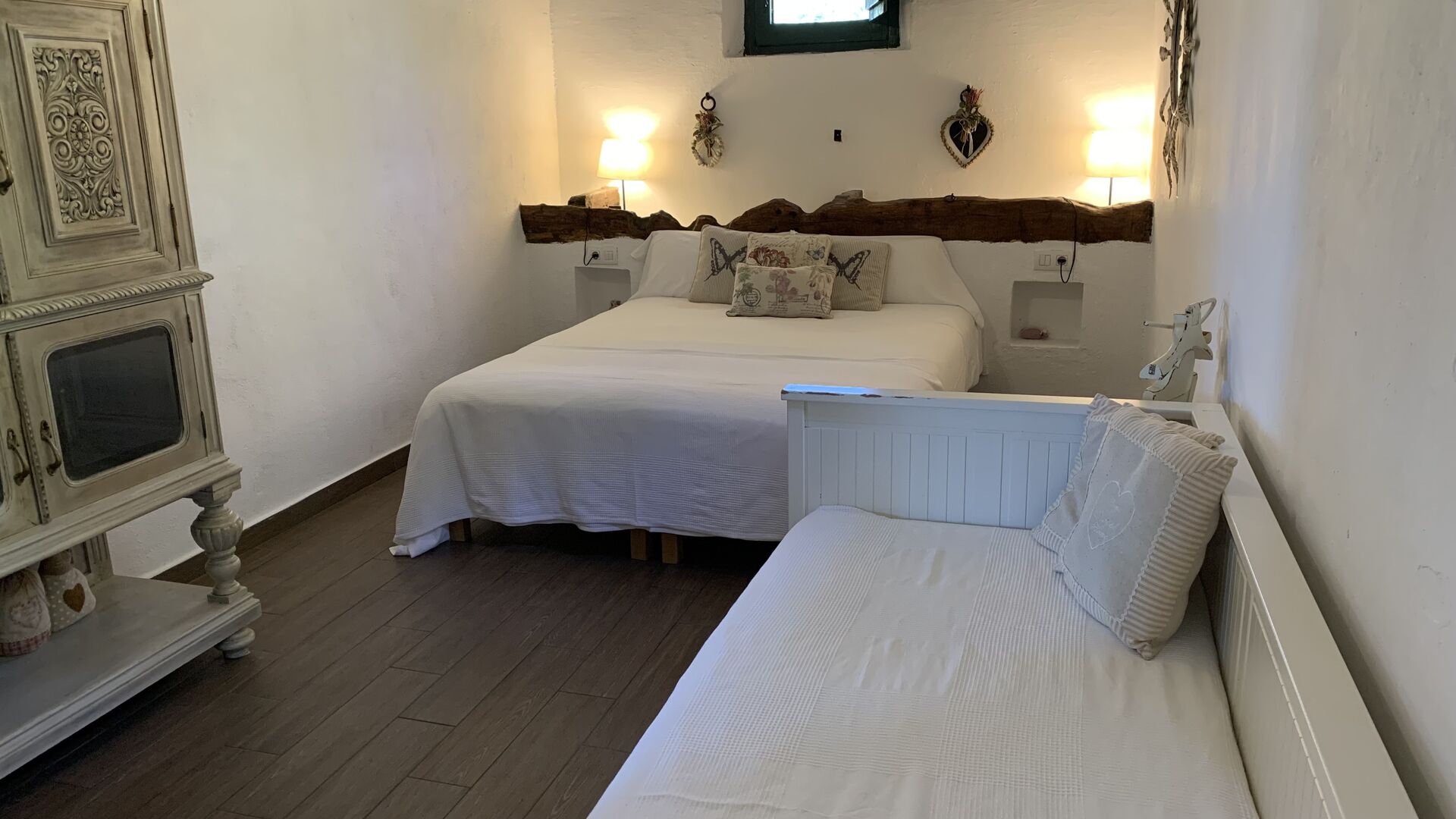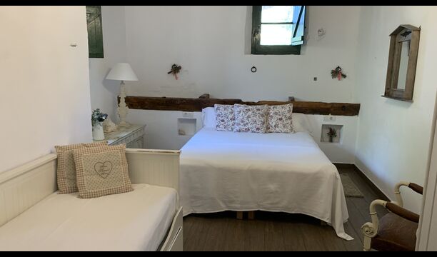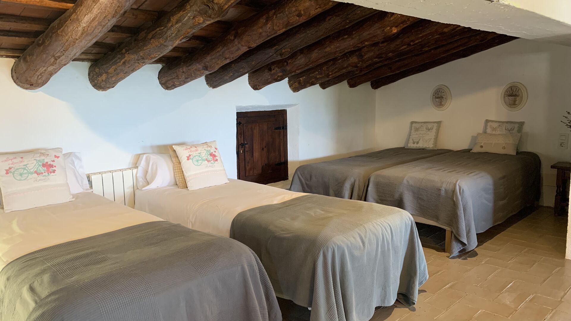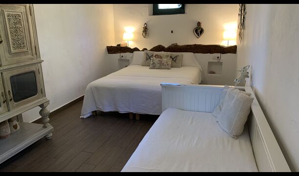 Neben dem Grillplatz befindet sich der Eingang zum Erdgeschoss des Hauses. Das Innere des Hauses wurde hübsch renoviert, aber natürlich mit Respekt für die ursprüngliche Architektur des Hauses und seine vielen wertvollen Details, wie die schönen Bögen und die Holzbalken in der Decke, sind erhalten geblieben. Hier finden Sie vier große Schlafzimmer. Zwei der Zimmer sind Dreibettzimmer mit einem Doppelbett und einem Einzelbett, und die anderen zwei Zimmer sind Doppelzimmer - eines mit zwei Einzelbetten und das andere mit einem Doppelbett. Die Schlafzimmer teilen sich ein großes Badezimmer im Erdgeschoss.