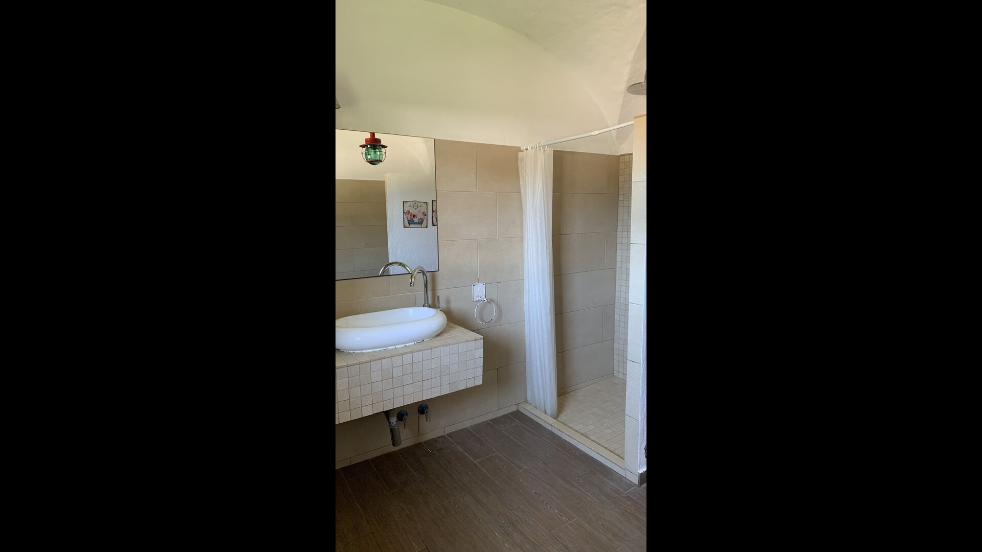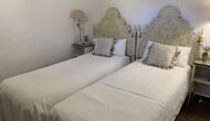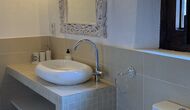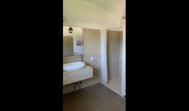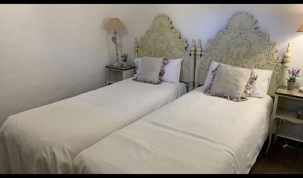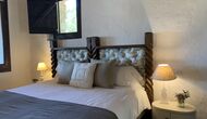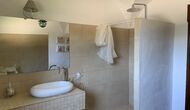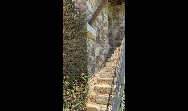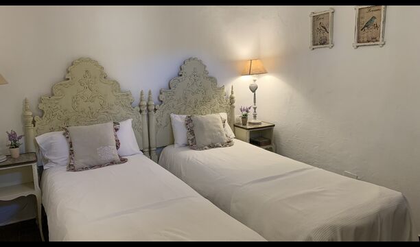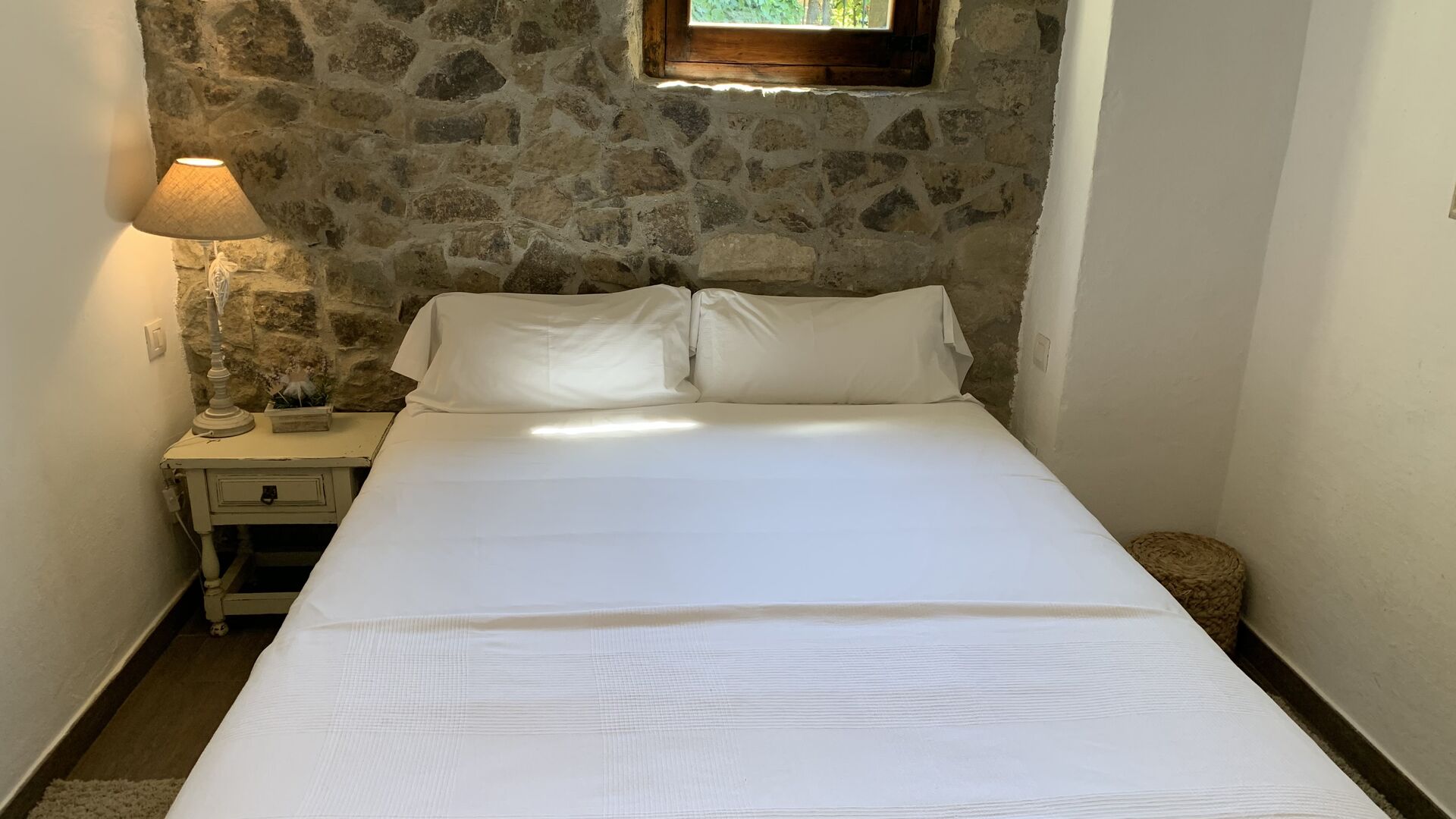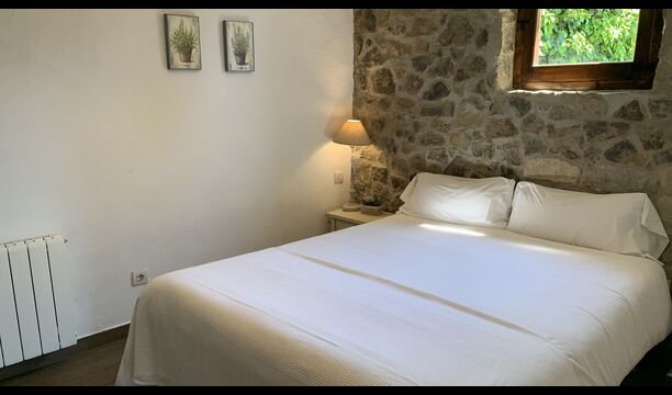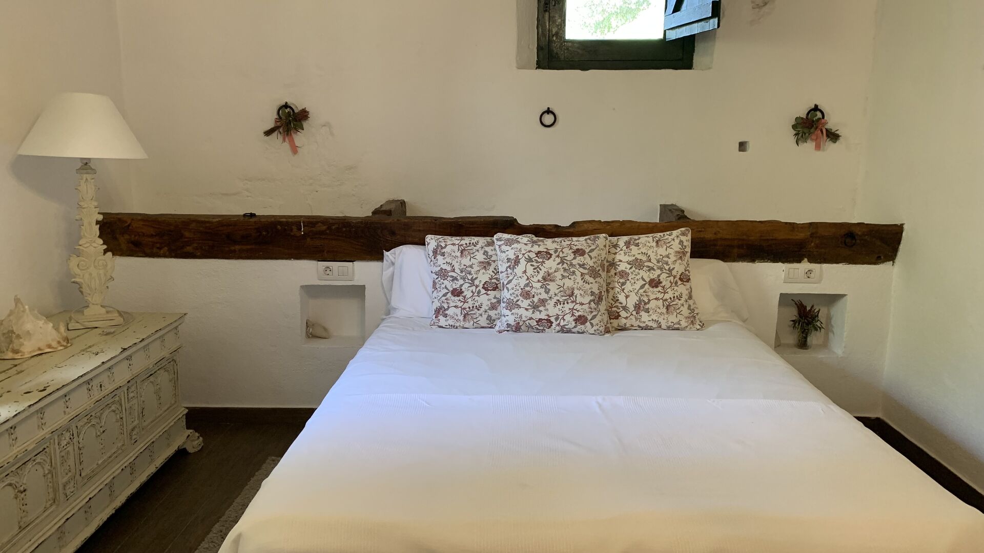 Neben dem Grillplatz befindet sich der Eingang zum Erdgeschoss des Hauses. Das Innere des Hauses wurde hübsch renoviert, aber natürlich mit Respekt für die ursprüngliche Architektur des Hauses und seine vielen wertvollen Details, wie die schönen Bögen und die Holzbalken in der Decke, sind erhalten geblieben. Hier finden Sie vier große Schlafzimmer. Zwei der Zimmer sind Dreibettzimmer mit einem Doppelbett und einem Einzelbett, und die anderen zwei Zimmer sind Doppelzimmer - eines mit zwei Einzelbetten und das andere mit einem Doppelbett. Die Schlafzimmer teilen sich ein großes Badezimmer im Erdgeschoss.