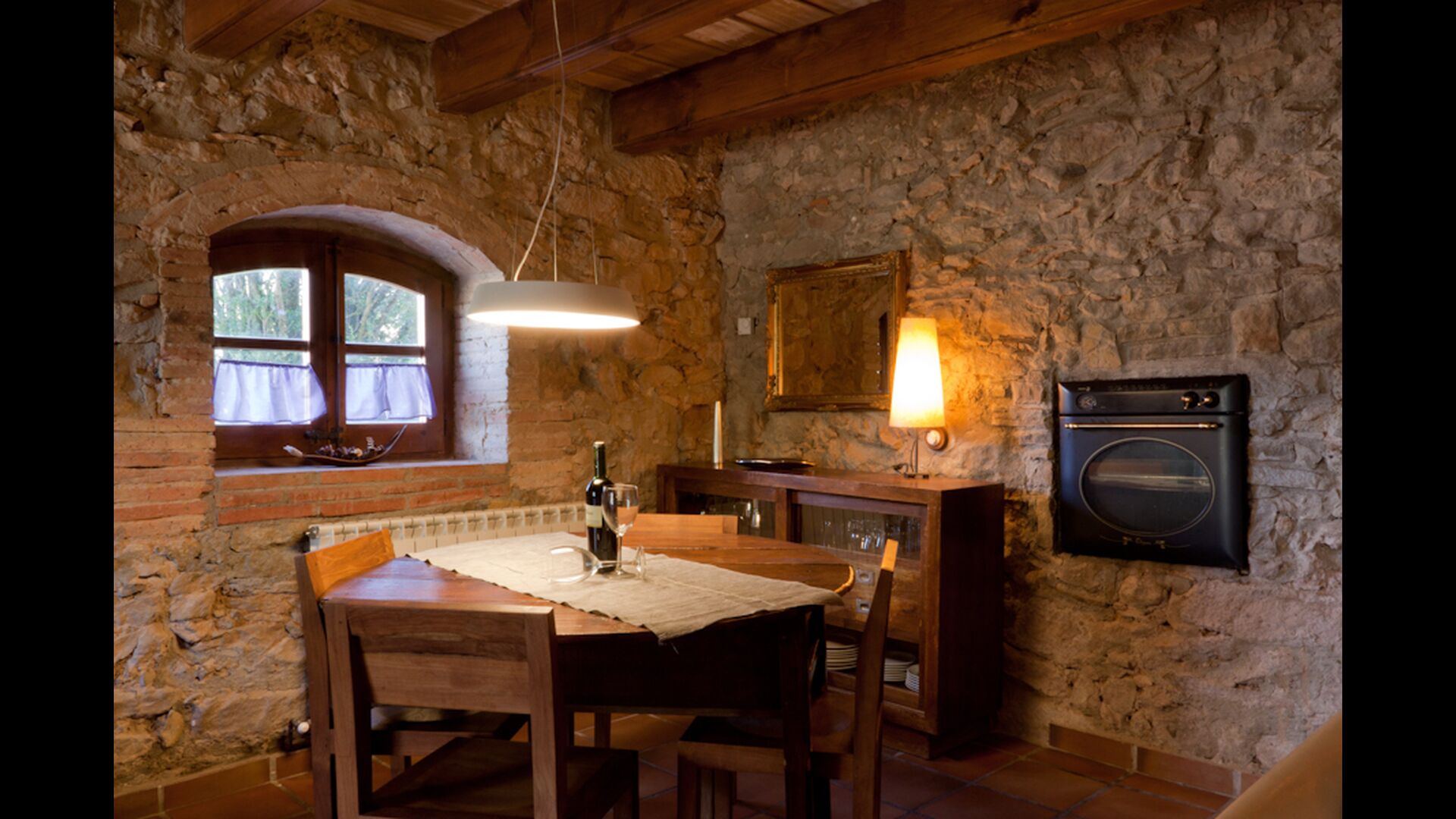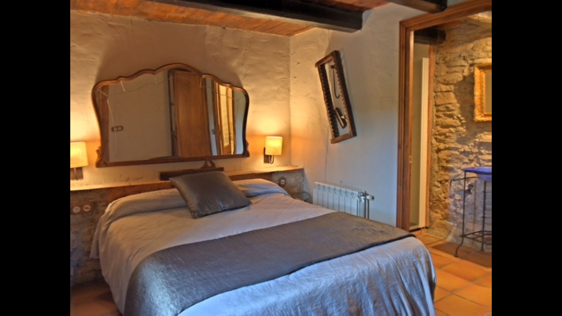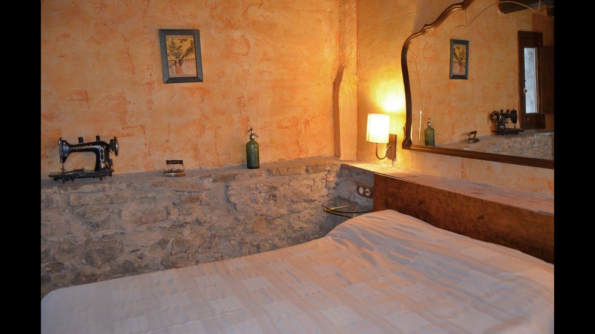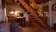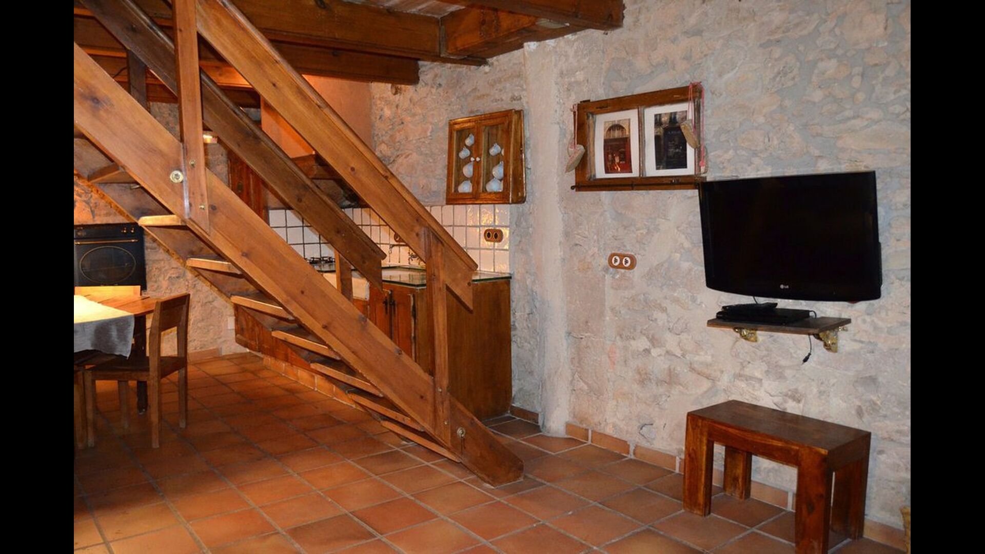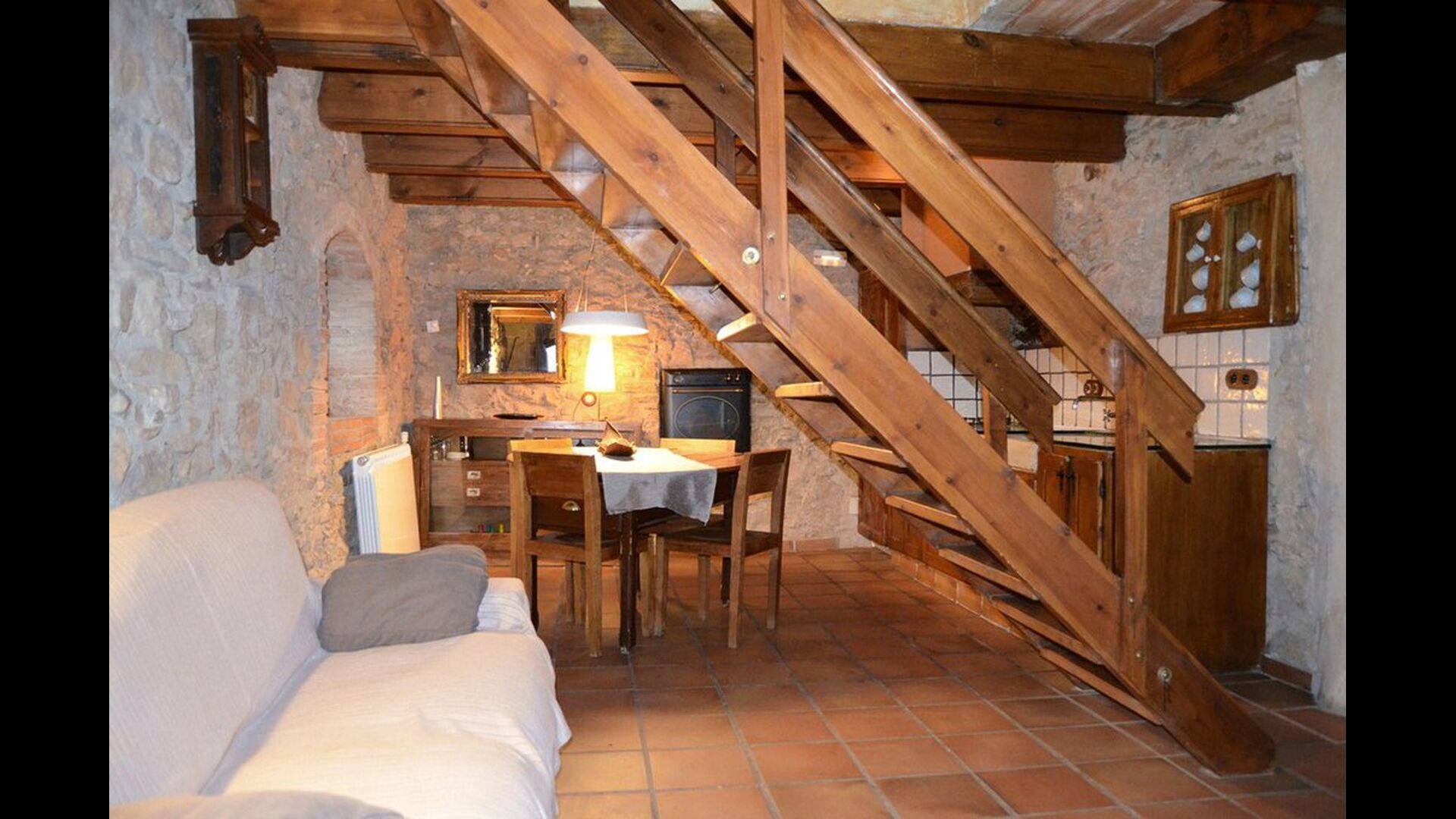 Dieser Wohnung, Piso Establo, ist für vier Personen. Es gibt zwei Doppelzimmer mi Doppelbetten - eine perfekte Basis für eine Familie. Beide Schlafzimmer haben eigene moderne Badezimmer. Die Wohnung hat eine Größe von 90 m2. Die Wohnung ist sehr authentisch und in einem traditionellen katalanischen Stil und mit großem Respekt für Original-Materialien und Strukturen eingerichtet. Dies schafft, zusammen mit der fantastischen Lage des Hauses, eine gute und romantische Atmosphäre. Darüber hinaus gibt es eine schöne Küche, wo die Besitzer sich angestrengt haben um den traditionellen katalanischen Stil aufrecht zu erhalten. In der Küche gibt es einen Kühlschrank, einen Herd, eine Spülmaschine und eine Waschmaschine. Weiter gibt es eine kleine Wohnzimmer mit einem weichen Sofa vor dem Fernseher. Im selben Raum gibt es eine Treppe zum Obergeschoss, wo die geräumigen und schön dekorierten Schlafzimmer gelegen sind.