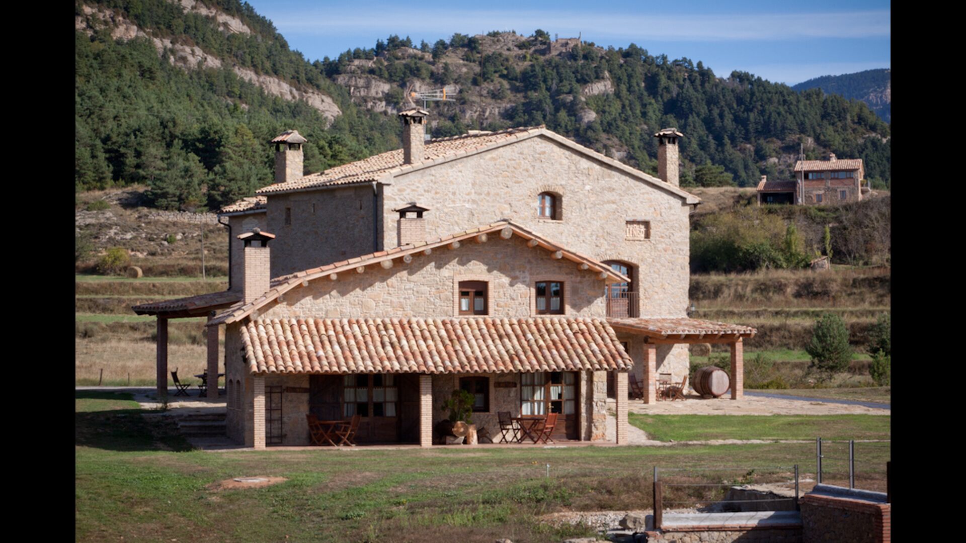 Casas Montañas liegt, wie der Name schon sagt, in den Bergen. Diese Schönheit einer Wohnung ist in den unteren Hängen der Pyrenäen gelegen. Man erreicht zum Haus über kleine kurvige Straßen und deshalb ist es in ganz privaten, ruhigen und schönen Umgebung gelegen. Wenn Sie frische Luft und die herrliche Landschaft mögen, gibt es keine anderen Häuser, die besser als dieses passen. Casas Montañas ist in fünf Wohnungen, die separat vermietet werden, geteilt. Hier gibt es jeweils eine Wohnung für 8 Personen, ein Appartement für 4 Personen und zwei Appartements für zwei Personen.