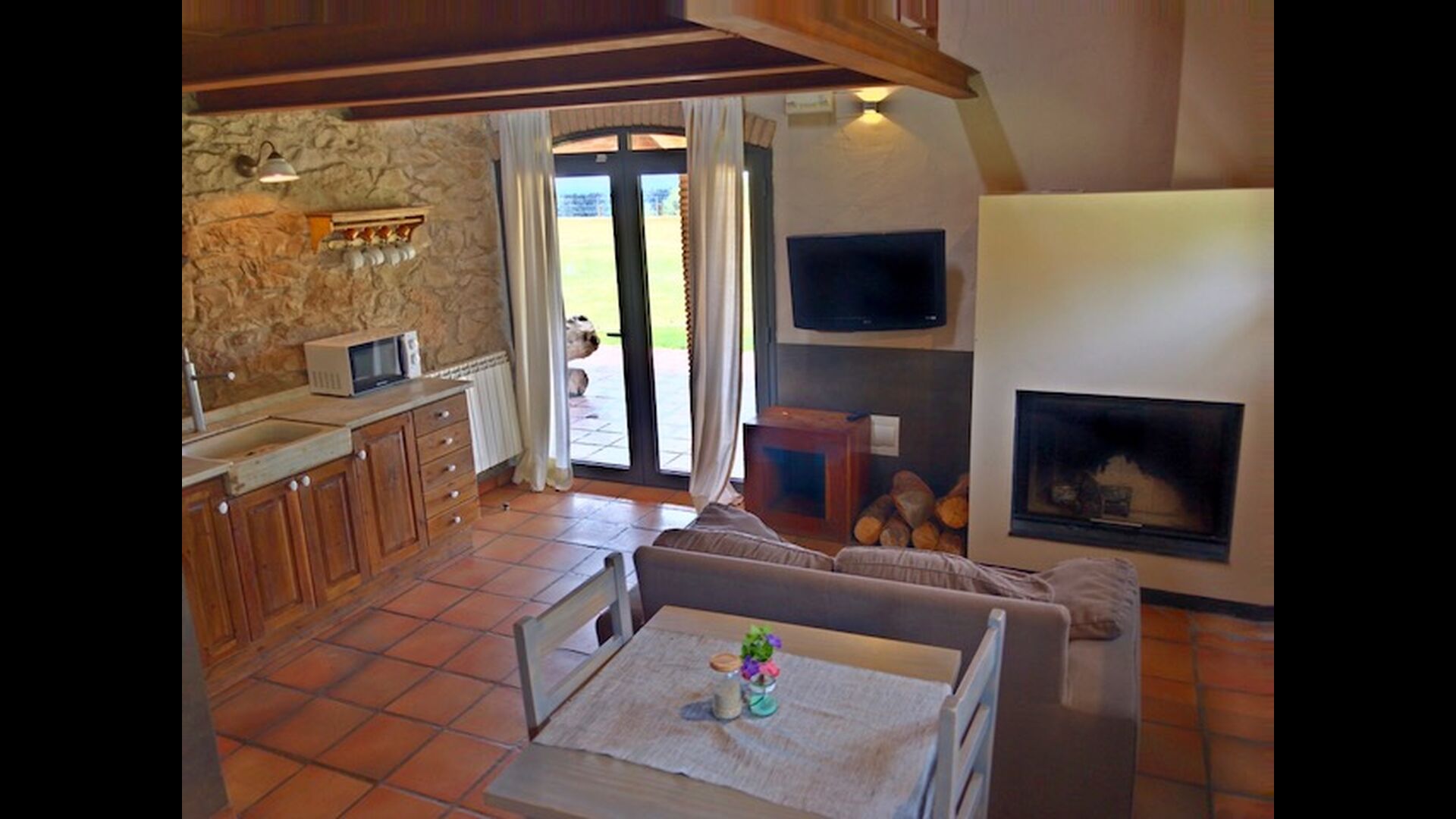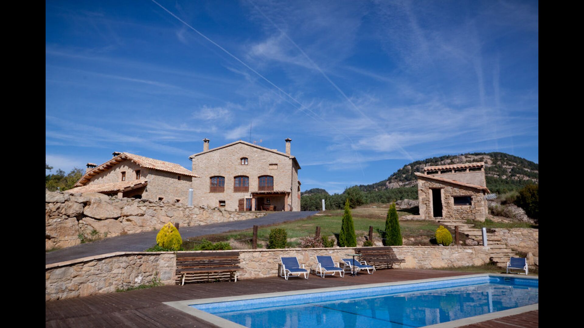 Casas Montañas liegt, wie der Name schon sagt, in den Bergen. Diese Schönheit einer Wohnung ist in den unteren Hängen der Pyrenäen gelegen. Man erreicht zum Haus über kleine kurvige Straßen und deshalb ist es in ganz privaten, ruhigen und schönen Umgebung gelegen. Wenn Sie frische Luft und die herrliche Landschaft mögen, gibt es keine anderen Häuser, die besser als dieses passen. Casas Montañas ist in fünf Wohnungen, die separat vermietet werden, geteilt. Hier gibt es jeweils eine Wohnung für 8 Personen, ein Appartement für 4 Personen und zwei Appartements für zwei Personen.