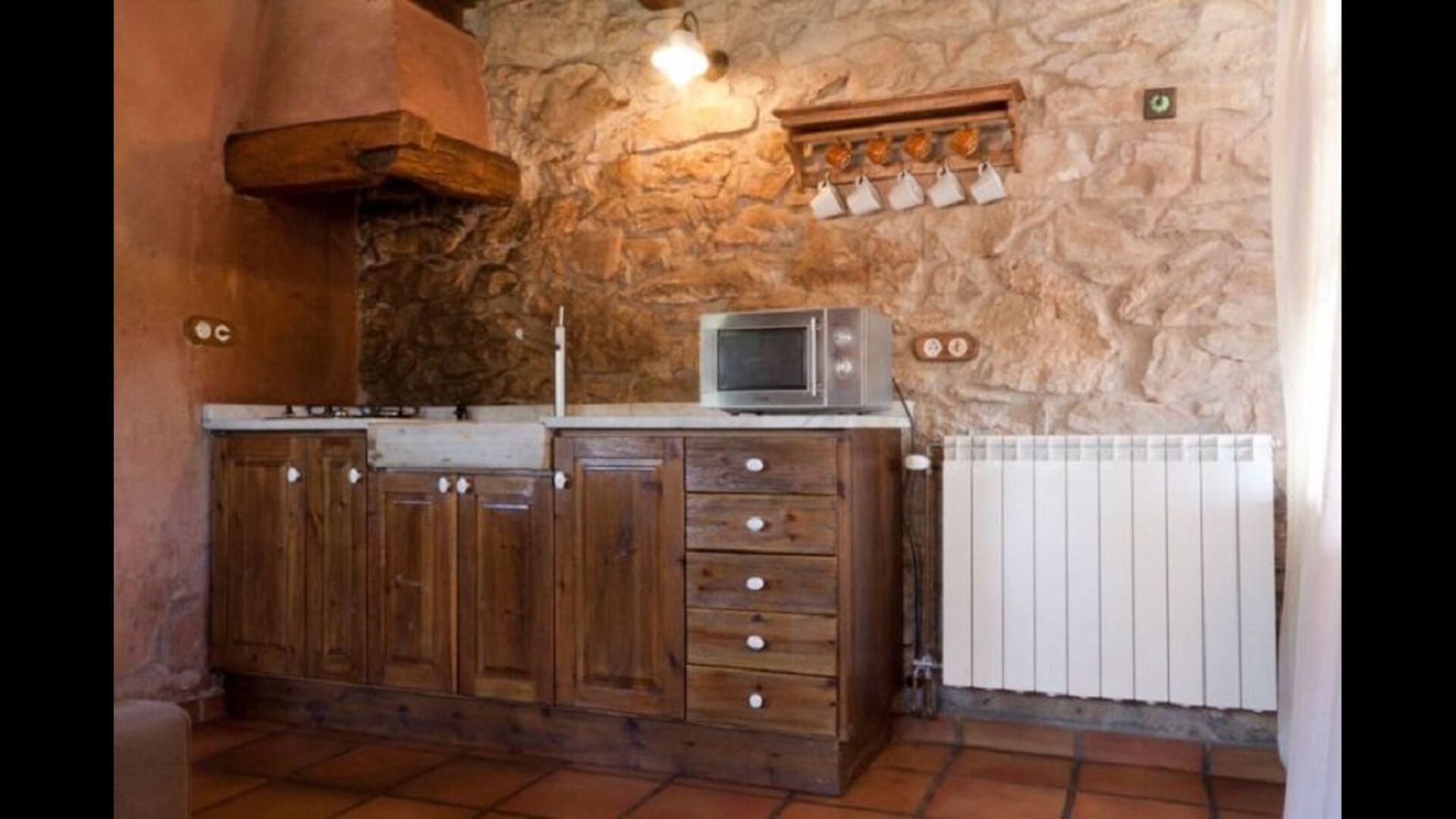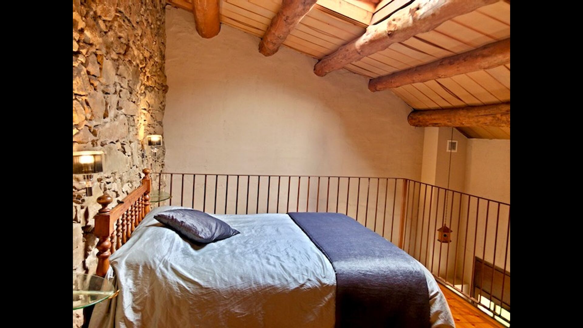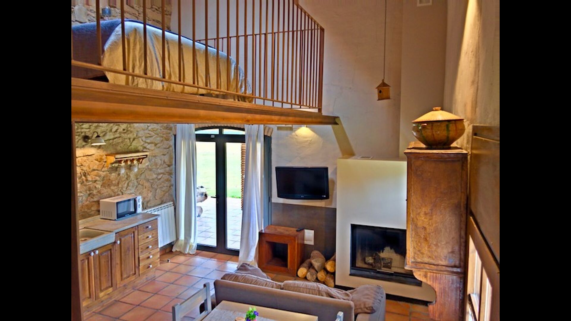 Dieser Wohnung, Piso Nio, ist für zwei Personen. Es gibt ein Doppelbett, das eine perfekte Basis für ein Paar ist. Es gibt auch ein modernes Badezimmer. Die Wohnung hat eine Größe von 60 m2. Die Wohnung ist sehr authentisch und in einem traditionellen katalanischen Stil und mit großem Respekt für Original-Materialien und Strukturen eingerichtet. Dies schafft, zusammen mit der fantastischen Lage des Hauses, eine gute und romantische Atmosphäre. Darüber hinaus gibt es eine schöne Küche, wo die Besitzer sich angestrengt haben um den traditionellen katalanischen Stil aufrecht zu erhalten. In der Küche gibt es einen Kühlschrank, einen Herd, eine Spülmaschine und eine Waschmaschine. Im selben Raum gibt es eine weiche Couch vor dem Fernseher und es gibt auch einen Kamin. Im Obergeschoss befindet sich ein geräumiges Schlafzimmer mit einem schönen Doppelbett. Draußen gibt es eine Terrasse neben der Wohnung nebenan. Hier können Sie ein Buch lesen oder einfach im Schatten entspannen, wenn es zu heiß wird. Das Beste an der Wohnung ist jedoch die atemberaubende Aussicht Es gibt eine ganz besondere Ruhe und Frieden, die einzigartig für Häuser in den Bergen sind.