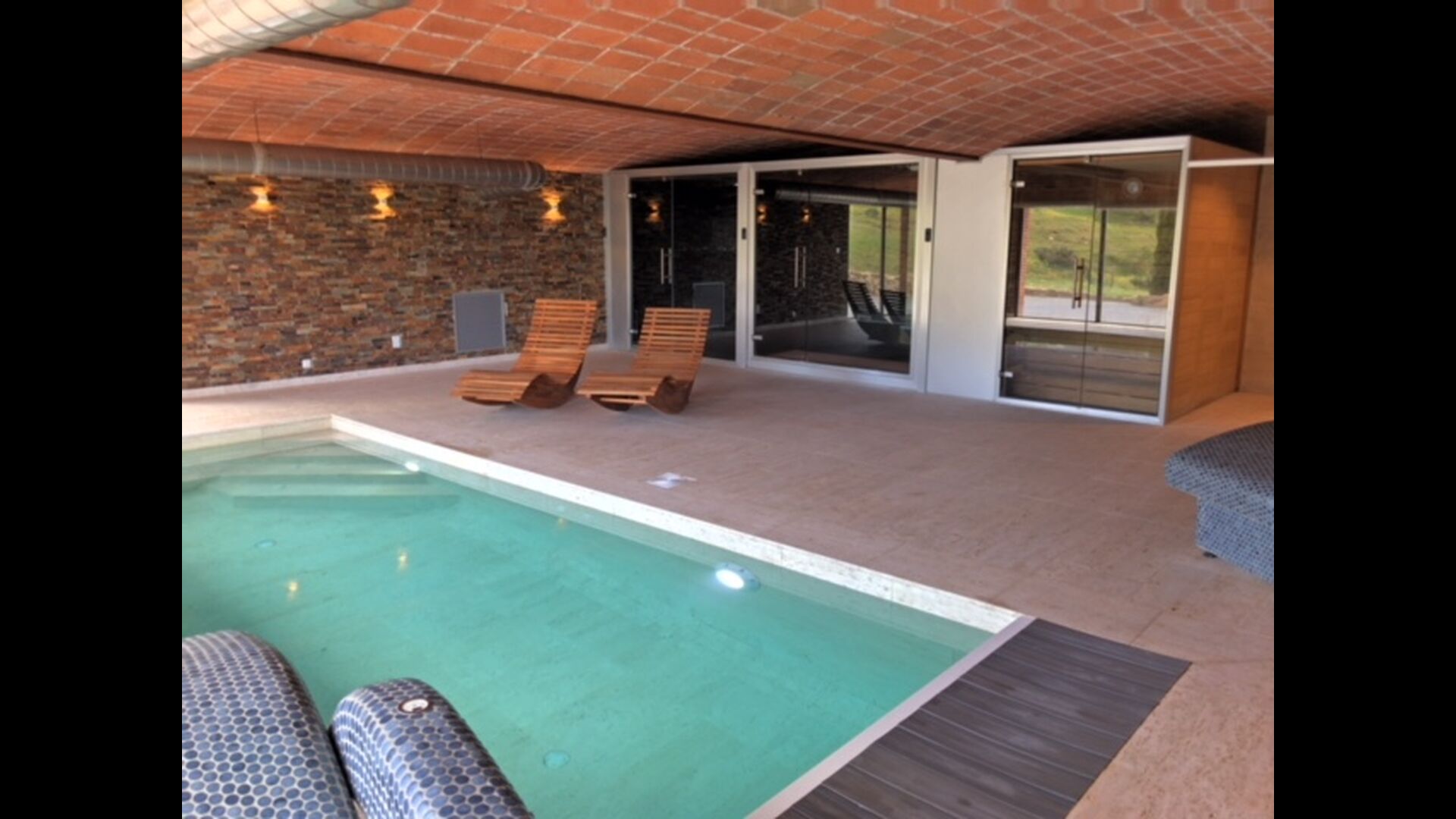 Es gibt zwei gemeinsamen Einrichtungen, die besonders hervorstechen. Einerseits der herrliche Pool (40 m2) mit einem fantastischen Blick über die Berge und Wälder. Zweitens gibt es einen ganz besonderen Spa / Wellness-Bereich, der die Folgendes enthält: