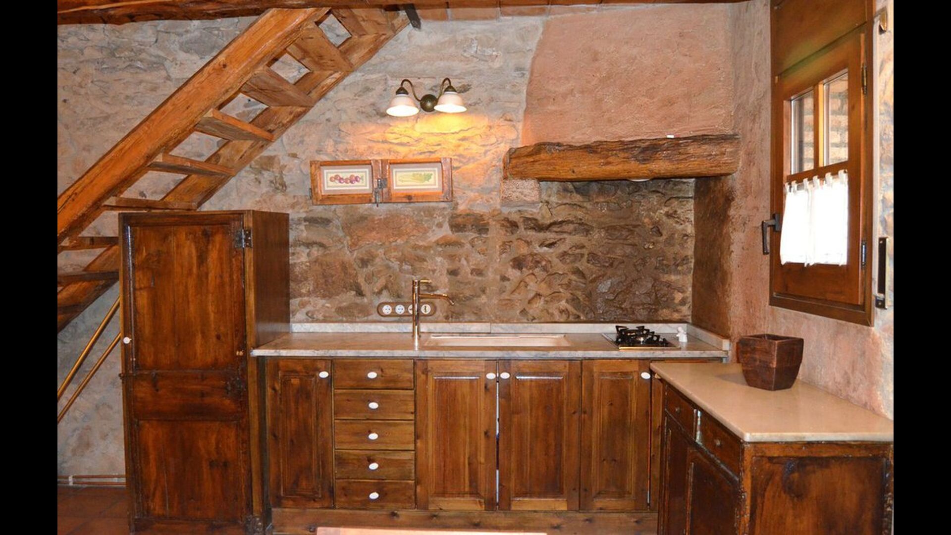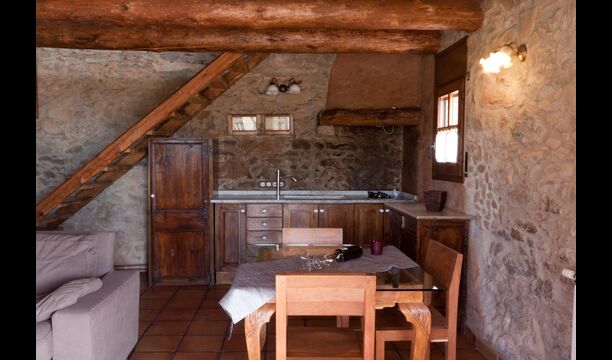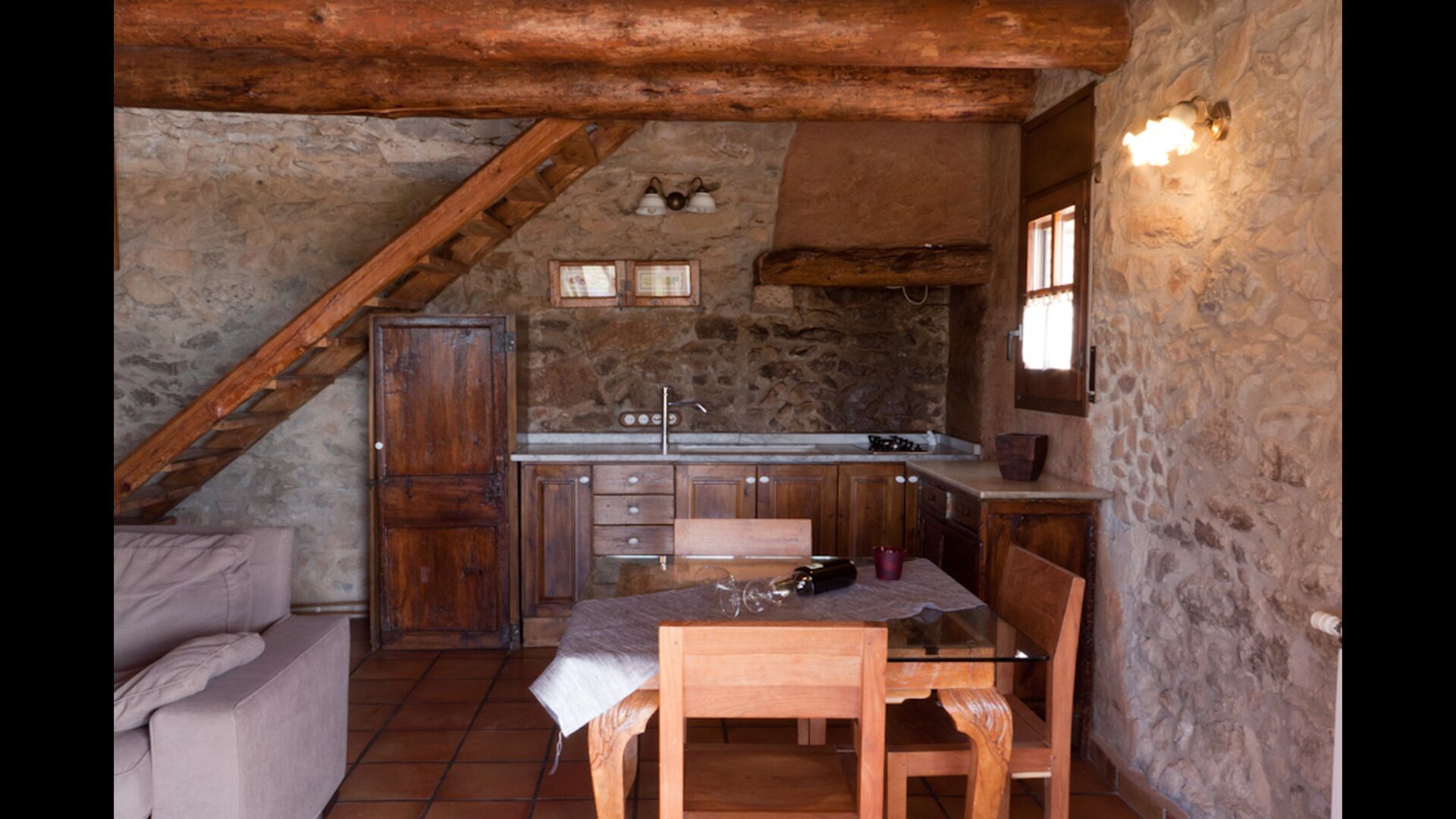 Dieser Wohnung, Piso Reful, ist für zwei Personen. Es gibt ein Doppelbett, das eine perfekte Basis für ein Paar ist. Es gibt auch ein modernes Badezimmer. Die Wohnung hat eine Größe von 60 m2. Die Wohnung ist sehr authentisch und in einem traditionellen katalanischen Stil und mit großem Respekt für Original-Materialien und Strukturen eingerichtet. Dies schafft, zusammen mit der fantastischen Lage des Hauses, eine gute und romantische Atmosphäre. Darüber hinaus gibt es eine schöne Küche, wo die Besitzer sich angestrengt haben um den traditionellen katalanischen Stil aufrecht zu erhalten. In der Küche gibt es einen Kühlschrank, einen Herd, eine Spülmaschine und eine Waschmaschine. Im selben Raum gibt es eine weiche Couch vor dem Fernseher und es gibt auch einen Kamin. Im Obergeschoss befindet sich ein geräumiges Schlafzimmer mit einem schönen Doppelbett. Draußen gibt es eine Terrasse neben der Wohnung nebenan. Hier können Sie ein Buch lesen oder einfach im Schatten entspannen, wenn es zu heiß wird. Das Beste an der Wohnung ist jedoch die atemberaubende Aussicht Es gibt eine ganz besondere Ruhe und Frieden, die einzigartig für Häuser in den Bergen sind.