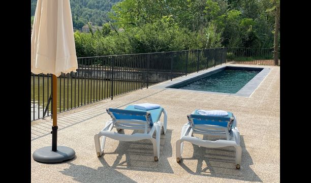 Die schöne Terrasse ist direkt mit dem Haus verbunden und bietet Ihnen sowohl sonnige Plätze, um den katalanischen Sommer zu genießen, als auch schattige Plätze, falls es tagsüber zu heiß wird. Und dann können Sie sich natürlich auch im privaten Swimmingpool erfrischen. Die Terrasse verfügt außerdem über Sonnenliegen, einen Terrassentisch und einen Grill.