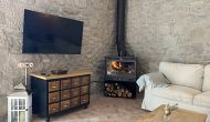Im Erdgeschoss befinden sich die Küche, das Wohnzimmer mit Kamin und das Esszimmer. Ein Doppelzimmer mit rollstuhlgerechtem Bad befindet sich ebenfalls im Erdgeschoss. Das Haus verfügt über eine zweite Ebene, auf der sich ein zusätzliches Doppelzimmer mit Bad befindet.