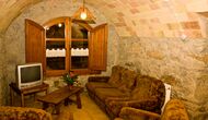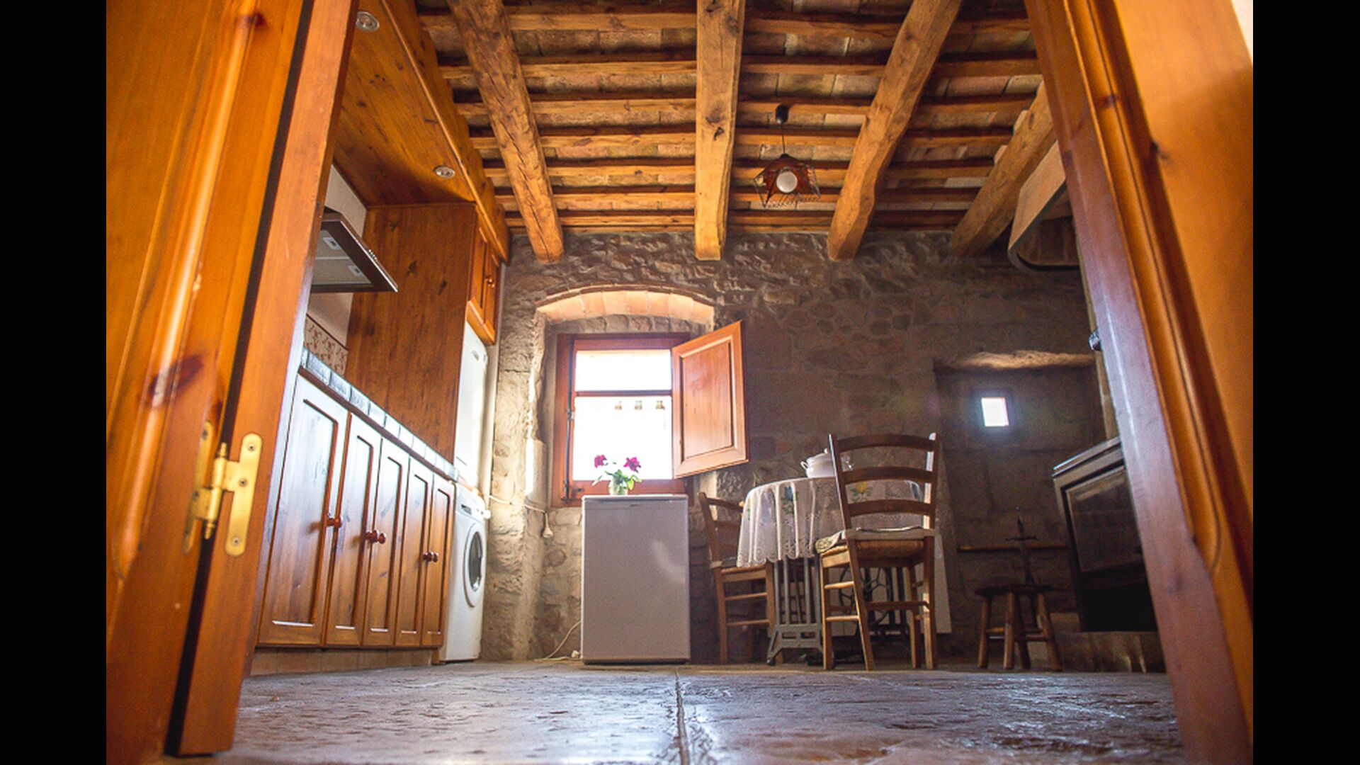 Auf der linken Seite des Hauses wohnen die freundlichen pensionierten Besitzer und wenn Sie Glück haben, werden sie mit frischem Gemüse oder vielleicht Milch zu Ihnen kommen, da sie eine Kuh nach ihrem Rücktritt behalten haben .