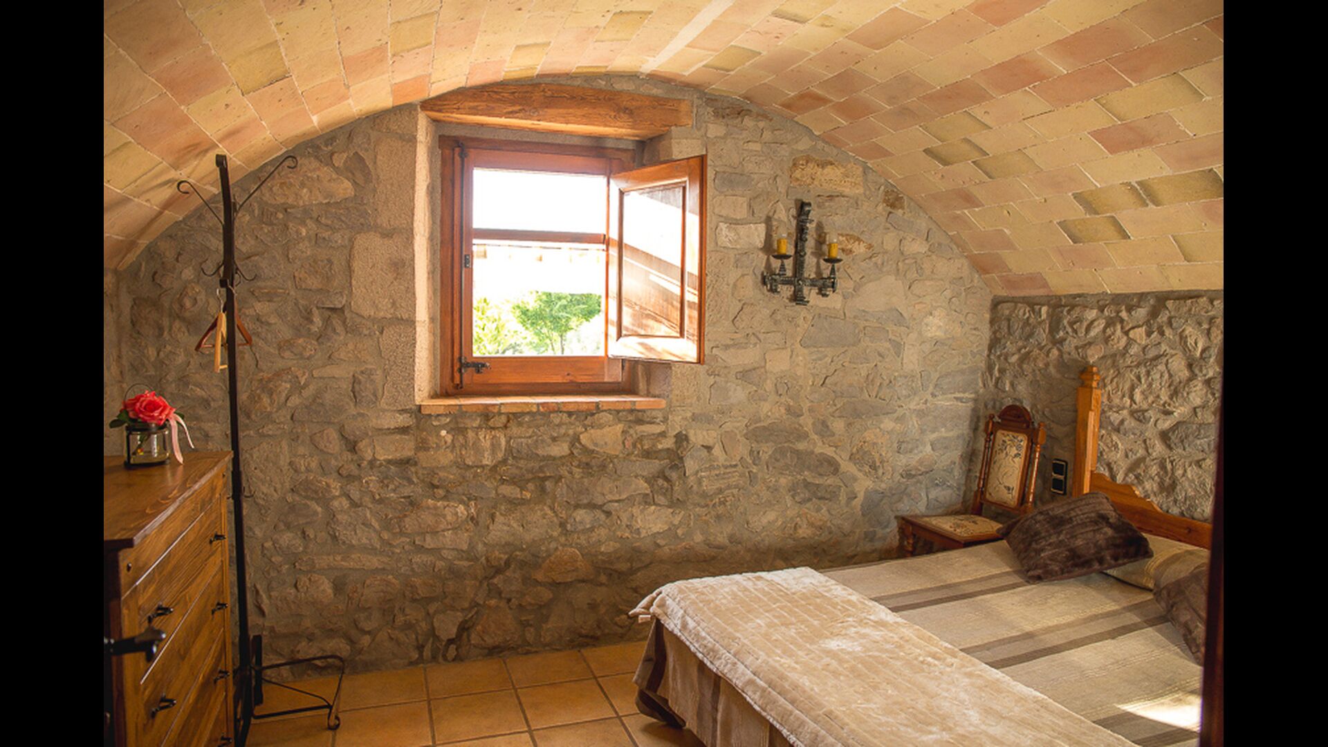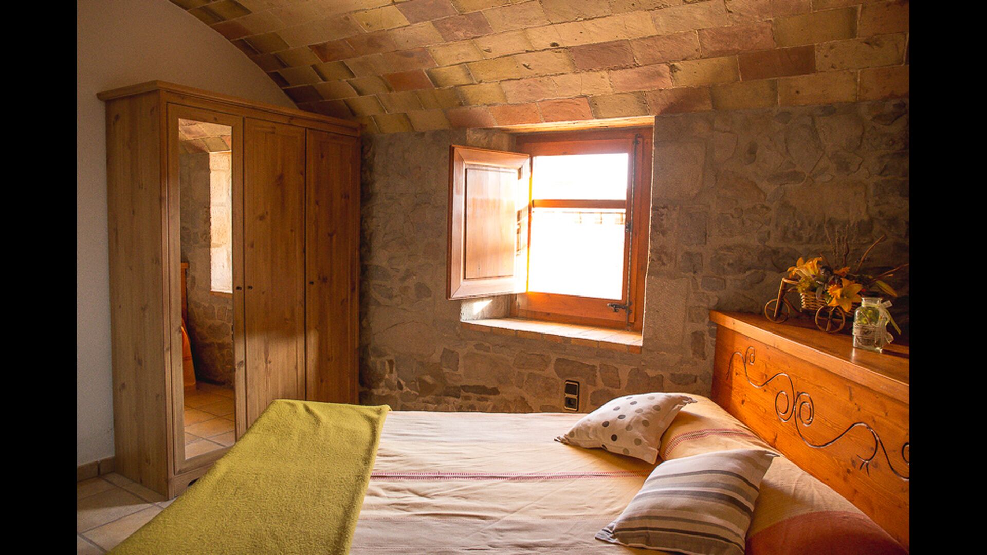 Can de la Sierra ist ein typisches katalanisches Kalksteinhaus für 13 +2 Personen, wo man die Geschichte spürt, und gleichzeitig alle Annehmlichkeiten des Hauses genießt. Das Haus ist auf einem Hügel gelegen mit Blick auf das nahe gelegene Dorf auf der einen Seite und auf der anderen Seite die schöne Landschaft mit Feldern und Wäldern und mit den Pyrenäen im Hintergrund