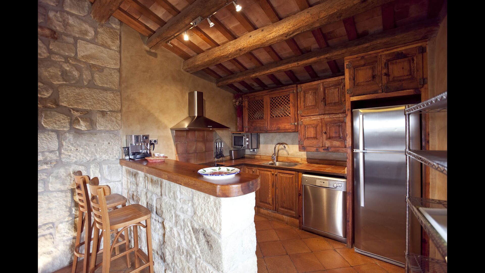 Das Haupthaus datiert aus dem Jahr 1711. Im 19. Jahrhundert entstanden neue Anbauten, die zu dem heutigen Erscheinungsbild führten. 2005 wurde Casa Alberda grundlegend renoviert und ein hervorragender Architekt gestaltete eine luxuriöse Urlaubswohnung. Alberda hat 7 DZ – alle mit Bad und Hydro-Massage Kabine. 43 m2 Wohnzimmer mit offenem Kamin, TV und Stereoanlage, Spielzimmer, komplett ausgestattete Küche mit Mikrowelle, Wasch- und Spülmaschine. Im Freien gibt es einen überdeckten Grill, einen großen Swimmingpool, privaten Tennisplatz sowie einen großen Spielplatz für die Kinder. Ein weiterer Spielraum enthält Tischfussball und Tisch-Tennis. Das Haus liegt 765 m hoch in der Serrateix Hochebene, mit einer exclusiven Aussicht über das Pre-Pyrenäen Gebirge, den Montseny und das Montserrat Massiv. Casa Alberda ist von Feldern und Eichenwäldern umgeben, die das Haus abschirmen und ihm eine reizende und besondere Atmosphäre vermitteln.