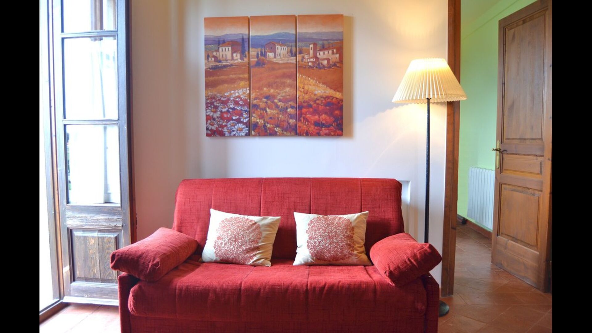 - Wohnzimmer: Ein Doppel-Sofa-Bett (135 cm) steht zur Verfügung, wenn nötig (Zweisitzer).