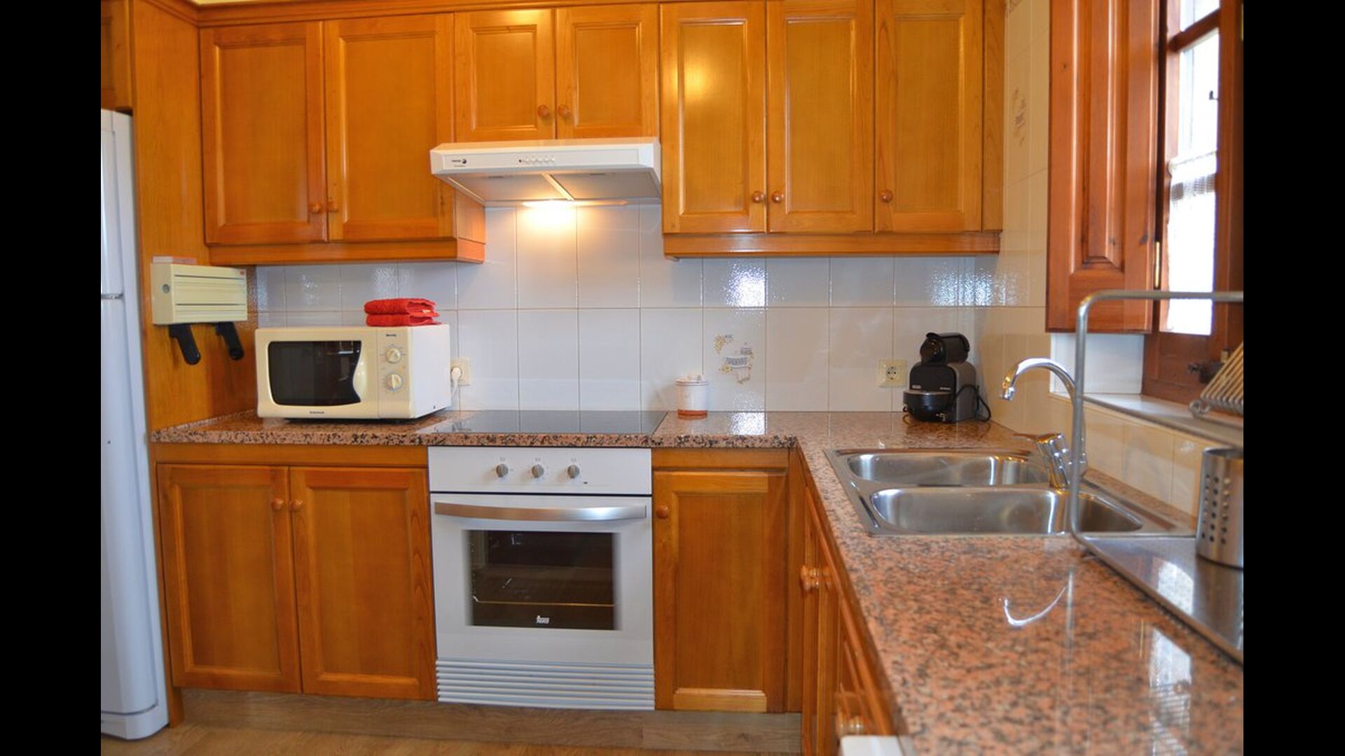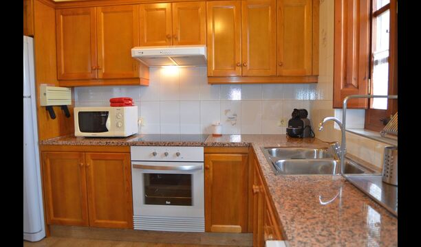 - KÜCHE: Keramischer Herd, Backofen, Mikrowelle, Spülmaschine, Waschmaschine, Kaffeemaschine, alle notwendige Kochutensilien und Geschirr, Gläser, Besteck, usw. Schrank mit Reinigungsutensilien (Besen, Mopp, Eimer, usw.). Bügeleisen und Bügelbrett.