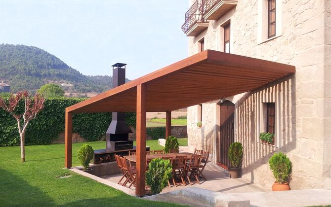 Der Garten ist mit einem kleinen Spielplatz für die Kleinsten ausgestattet, auch mit Sandkasten und die große Attraktion ist natürlich den Swimmingpool, der ganzjährig funktionell ist, weil es in der Nebensaison überdacht und beheizt ist. Im Sommer ist es offen. Mit direktem Zugang aus dem Haus, ist die Außenterrasse die ideale Stelle für Entspannung und essen. Es gibt auch hier einen Grill..