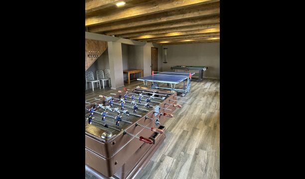 Das Anwesen ist ein Paradies für Kinder. Das Haus verfügt über ein umzäuntes Schwimmbad, einen umzäunten Fußballplatz und ein Gebäude mit Tischfußball, Billard und Tischtennis. Im ersten Stock dieses Gebäudes gibt es auch einen Projektor und eine DVD, damit Sie Filme ansehen können. Wenn das Haus zusammen gemietet wird, können Sie hier auch gemeinsam essen, da es einen großen Holztisch gibt, oder Sie können im „El Gran“ essen.