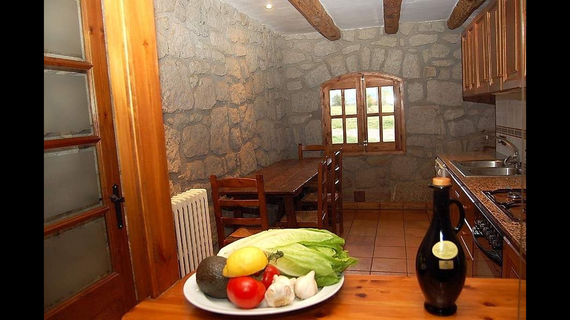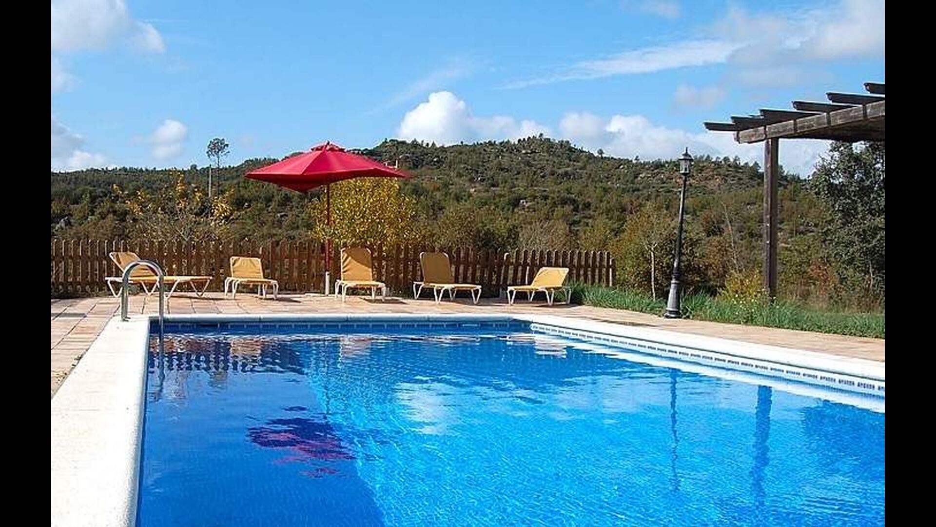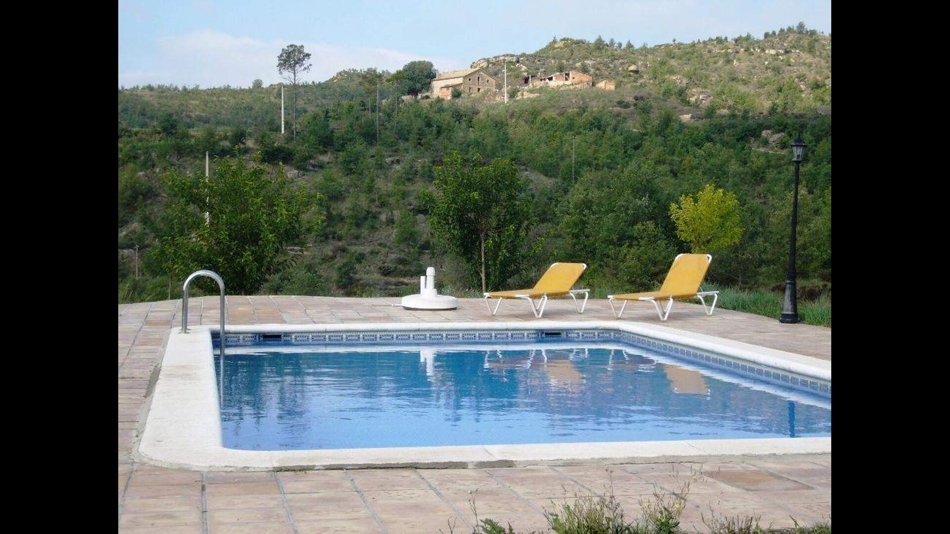 Im Aussen gibt es ein Ativitätszimmer mit Tischtennis, Schaukeln, und nicht zuletzt den schönen Pool-Bereich mit Liegestühlen und einen kinderfreundlichen Swimmingpool. Das Haus ist sehr privat in der hügeligen Landschaft desr Pre-Pyrenäen gelegen.