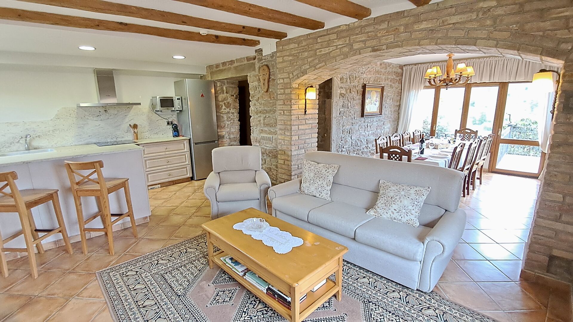 Das Ferienhaus wurde im Jahr 2012 komplett renoviert und neu eingerichtet um Ihnen ein einzigartiges und angenehmes Erlebnis zu geben. Das Haus verfügt über einen großen Swimmingpool mit einem geschlossenen Ende für kleinere Kinder und das andere Ende ist für größere Kinder und Erwachsene. Das Haus hat mehrere Terrassen, wo Sie den Schatten genießen können, wenn Sie eine Pause von der Sonne brauchen und hier ist es auch möglich zu essen. Das Gebiet hat auch einen großen Grill und hier ist auch ein WC, damit Sie nicht ins Haus zu gehen brauchen, wenn Sie draußen sind. Es lohnt sich Ihre Lebensmittel auf den lokalen Märkten einzukaufen, denn hier bringen die Bauern ihre frischen Gemüse, Eier, hausgemachte Würste, Käse u.s.w.