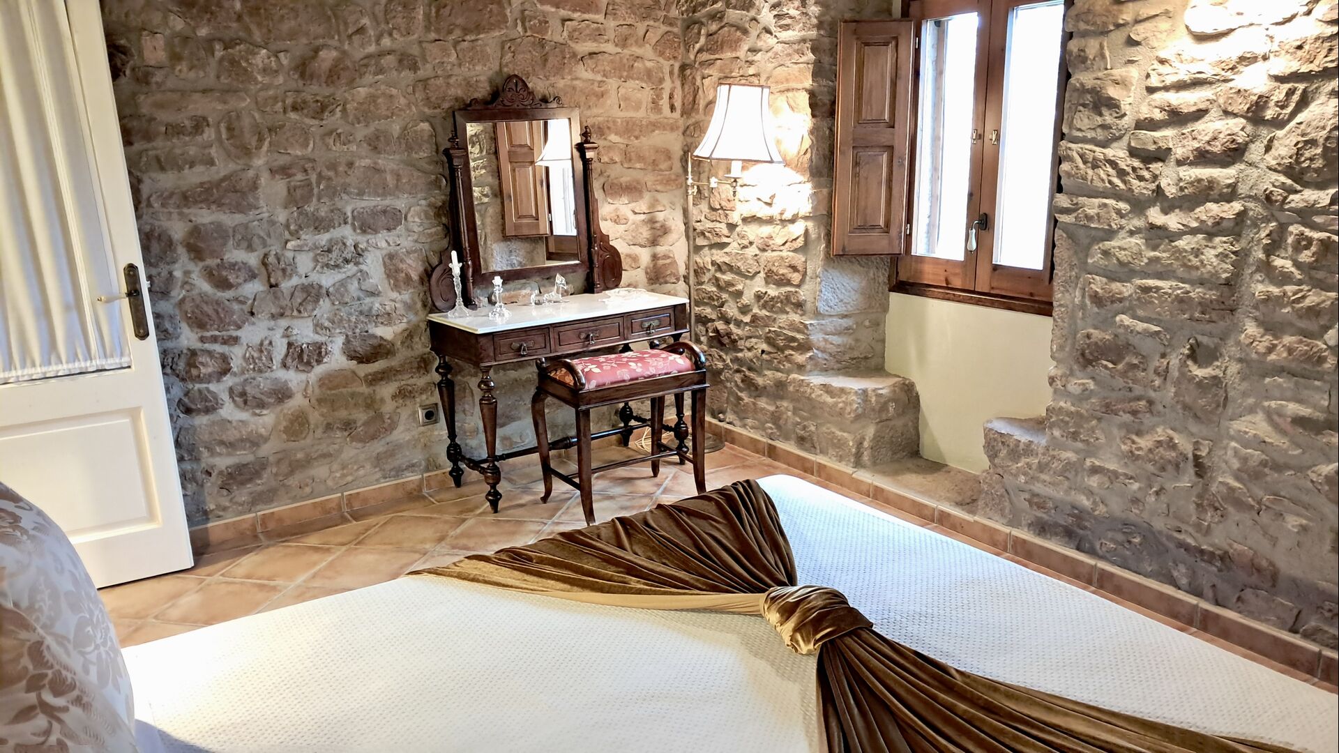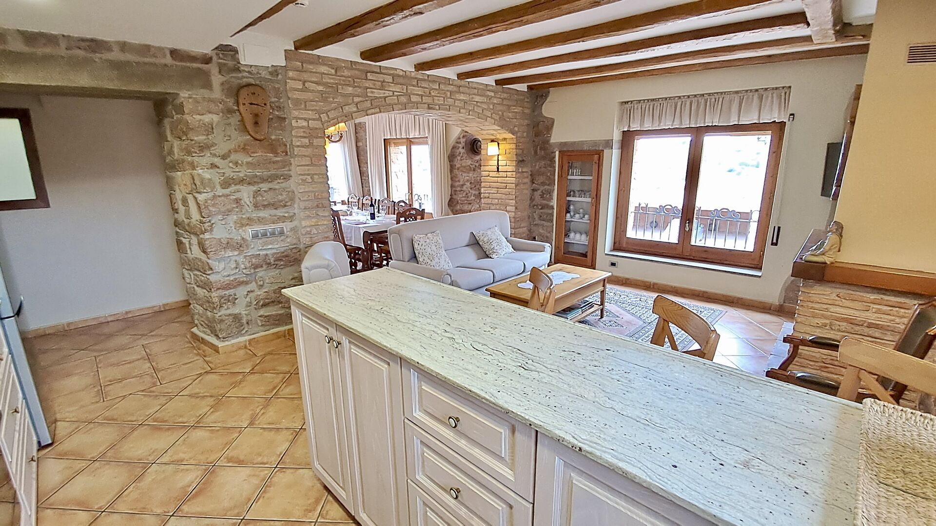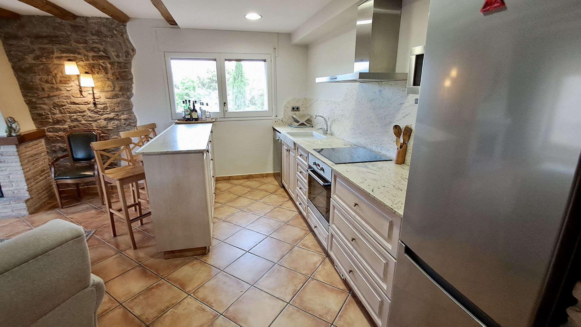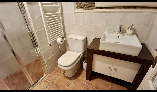 Das Haus, das neben den wirklich süßen Eigentümer gelegen ist, hat fünf wunderschöne Zimmer, alle mit eigenem Bad mit Handtüchern und Fön. Im Wohnzimmer gibt es TV und Kamin, und wie die Schlafzimmer, ist es mit großer Sorgfalt eingerichtet, damit sich die Gäste sich so bequem wie möglich fühlen. Die Küche / Esszimmer hat einen Kamin und ist mit allem modernen Komfort versehen, wie Kühlschrank, Gefriertruhe, Backofen, Mikrowelle, keramische Kochplatte, Geschirrspüler, Kaffeemaschine und Toaster.