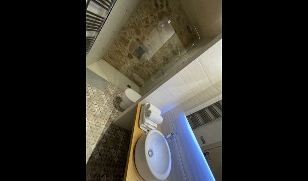 Rechts vom Flur befinden sich vier der fünf wunderschönen Schlafzimmer in Can de Mateo. Die vier Schlafzimmer sind alle Doppelzimmer, von denen drei ein Bad ensuite haben. Eines der Zimmer hat direkten Zugang zur Terrasse. Auf dieser Etage befindet sich auch ein weiteres Badezimmer, das mit dem letzten Schlafzimmer im Obergeschoss des Hauses geteilt wird.