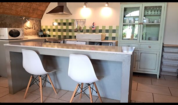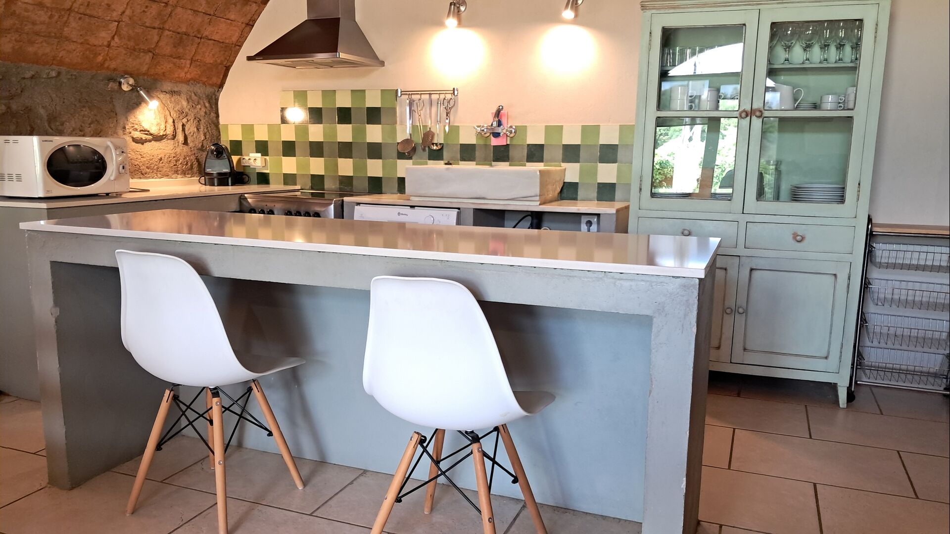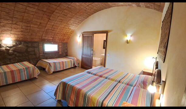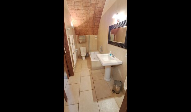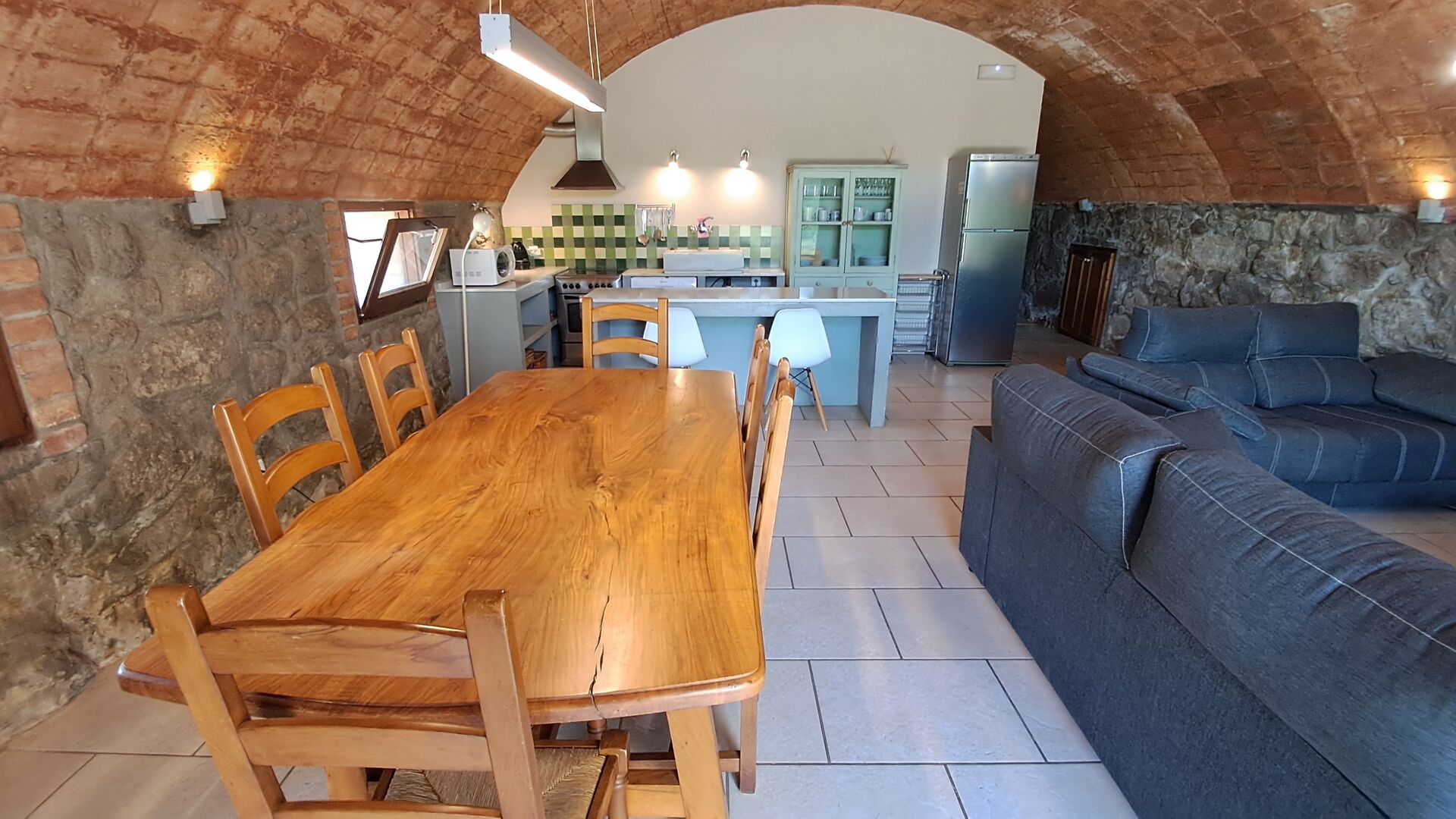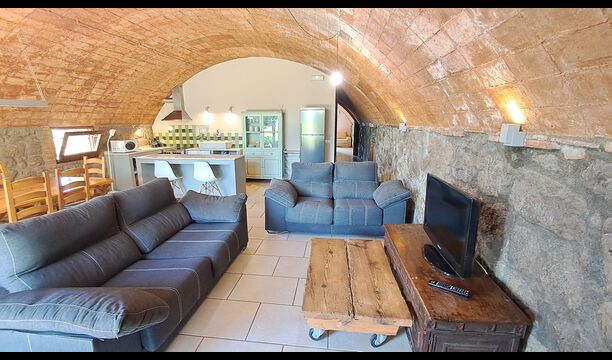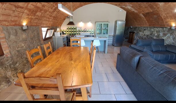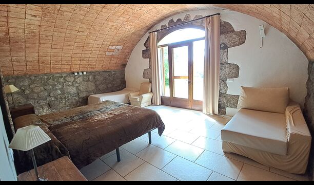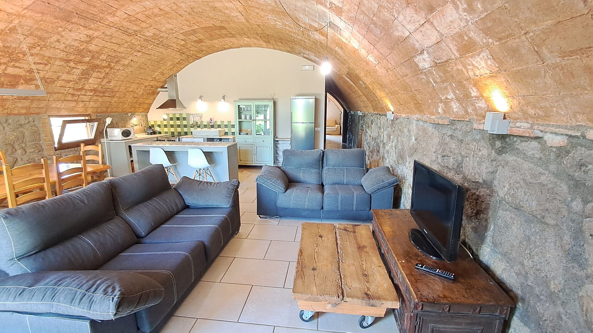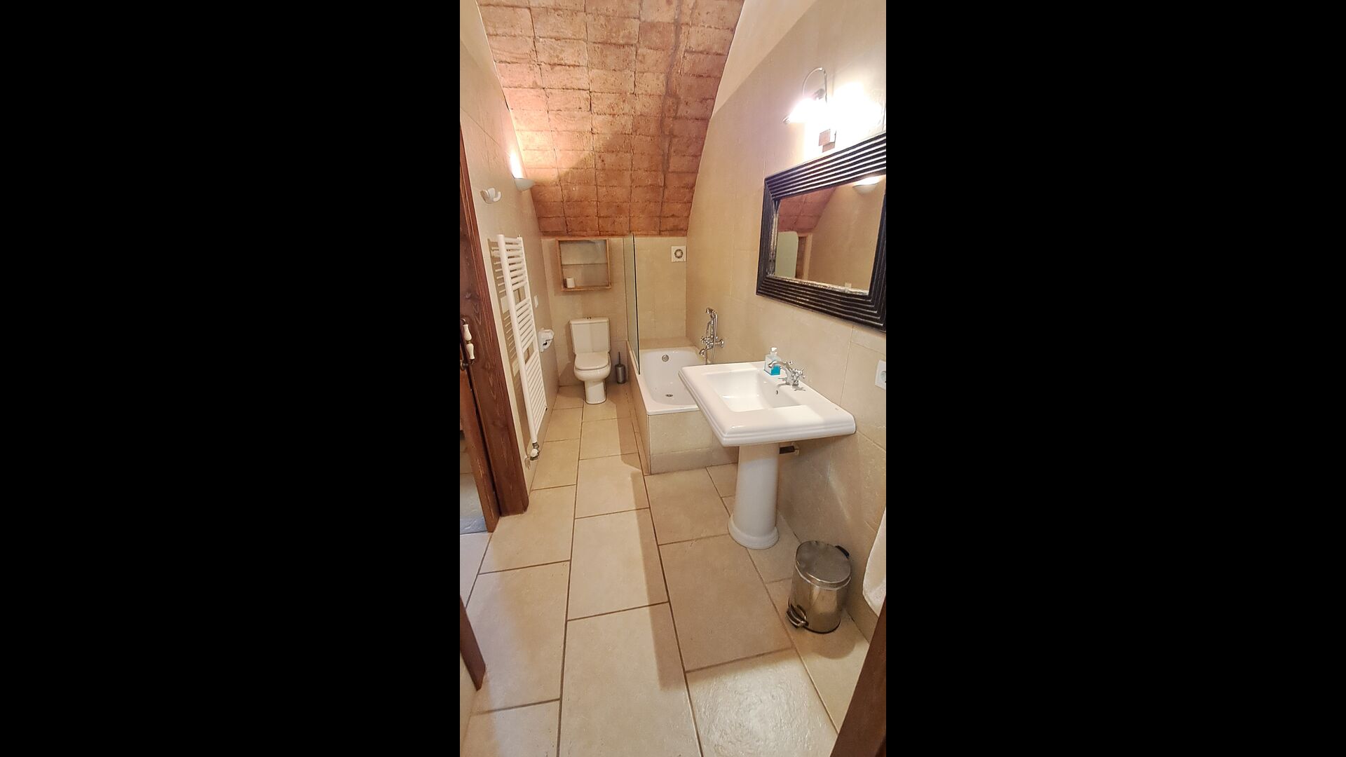 Die Wohnung besteht aus einem 45 m2 großen Wohnzimmer mit Küche, großem Esstisch, ein Sofa-Ecke und Ausgang zur Terrasse, die teilweise überdacht ist. Eine schöne gewölbte Halle führt hinunter zu den zwei sehr großen Schlafzimmer, eines mit drei Betten und Bad, das zweite mit einem Doppelbett, Bad, eine Sitzecke und direktem Zugang zur Terrasse.