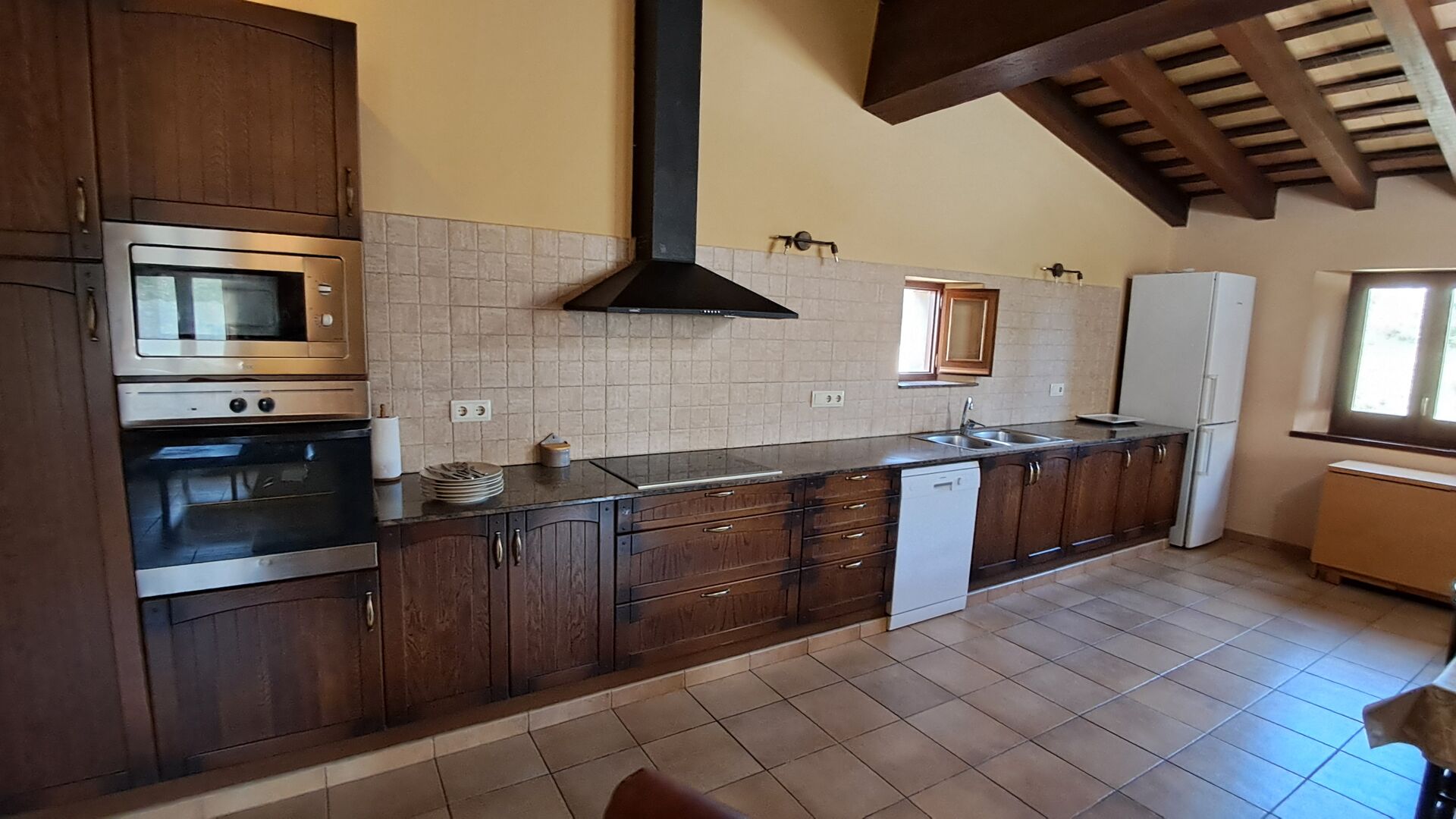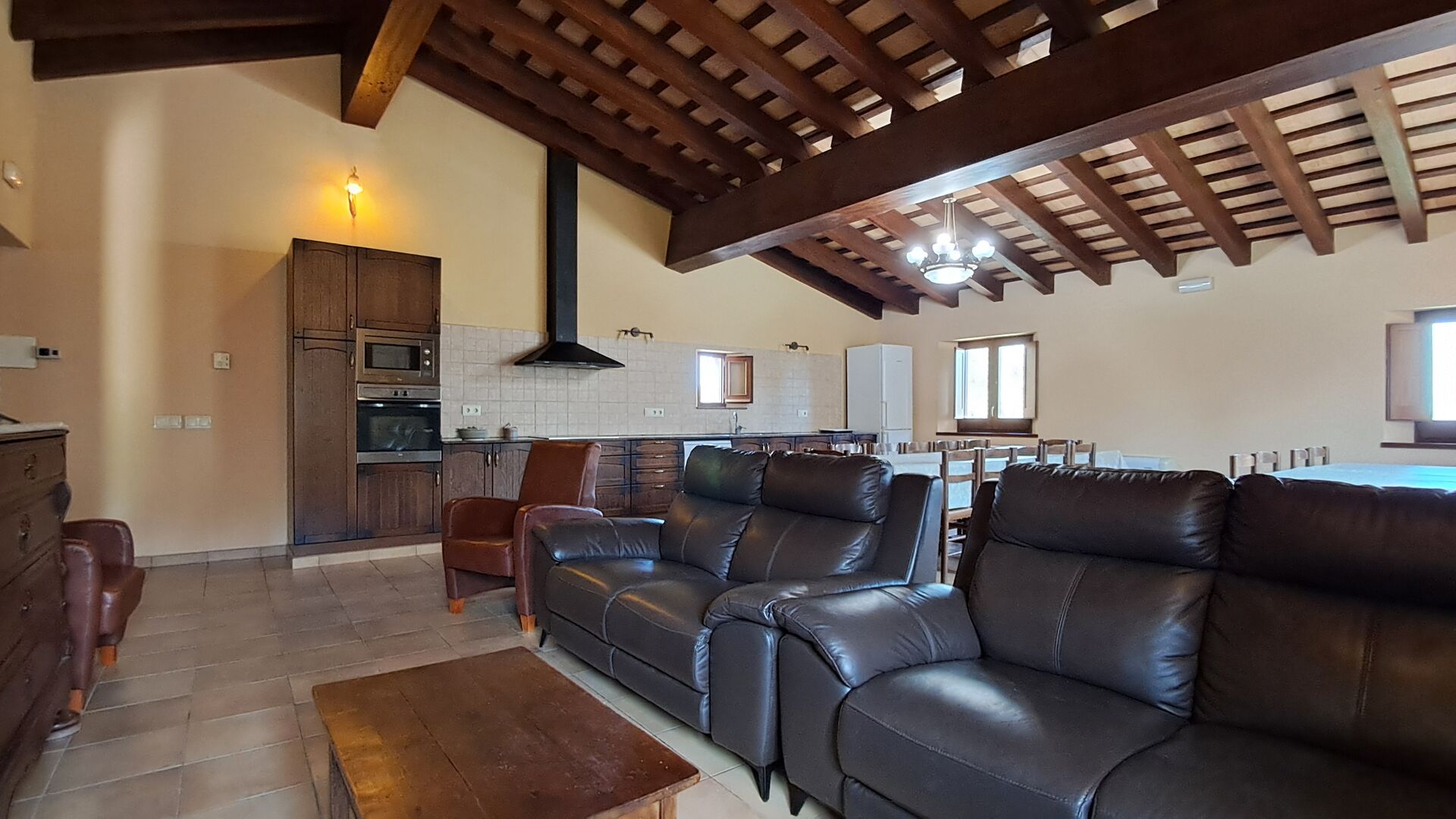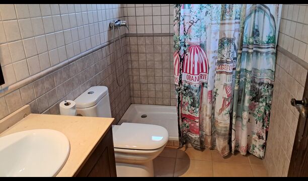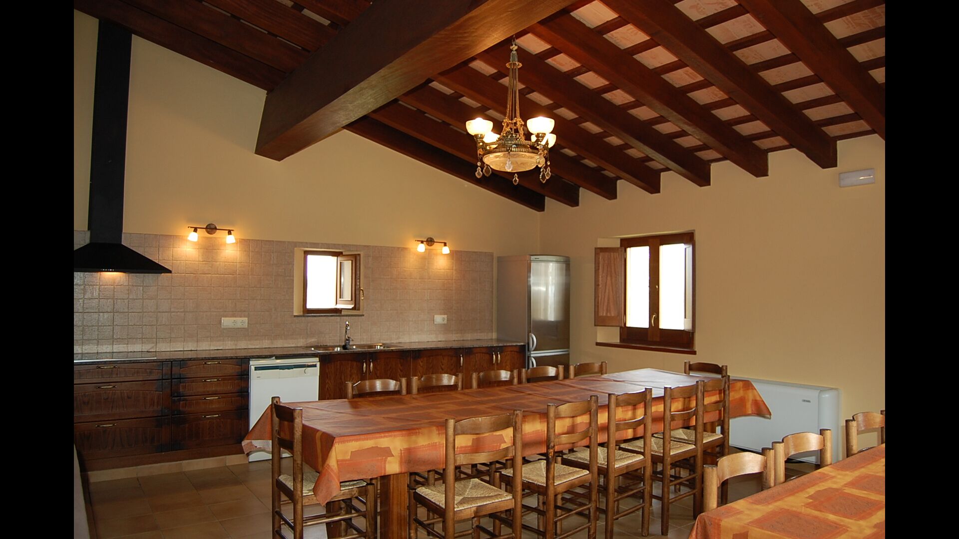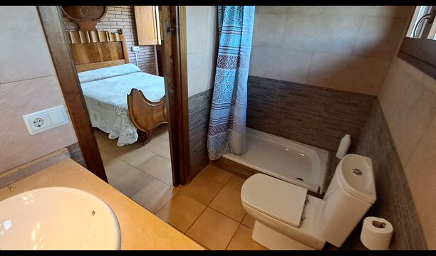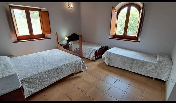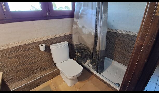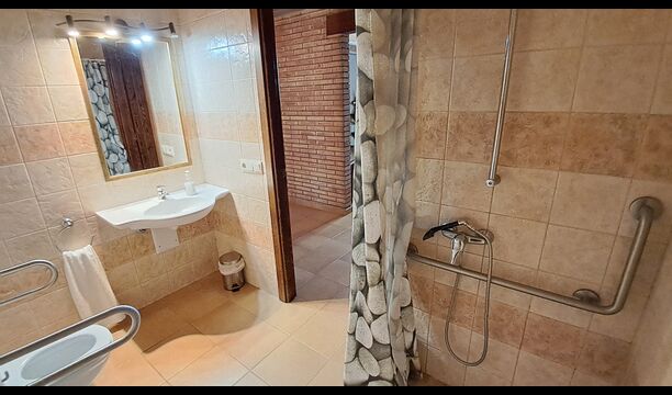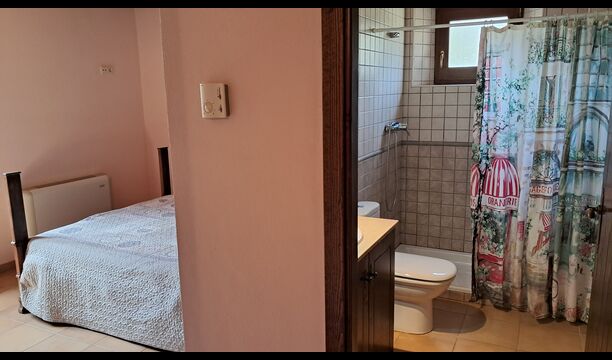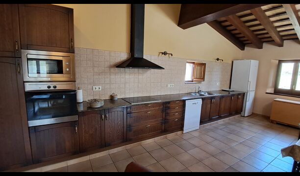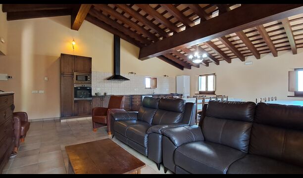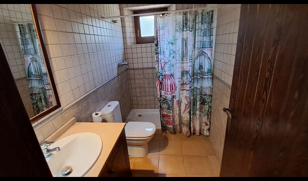 Eine Hälfte der ersten Etage dient als großer Gemeinschaftsraum mit einer offenen Küche und viel Platz, sodass die gesamte Gruppe gemeinsam speisen kann. Es gibt auch eine gemütliche Sofaecke mit Fernseher und DVD-Player. Das Haus hat auch WI-FI. Von diesem Bereich aus haben Sie über eine Außentreppe direkten Zugang zur überdachten Terrasse mit Grillplatz. Im anderen Teil der ersten Etage finden Sie 4 geräumige Schlafzimmer, 2 davon Doppelzimmer und 2 davon Dreibettzimmer. Auf dieser Etage befinden sich insgesamt 4 Badezimmer.