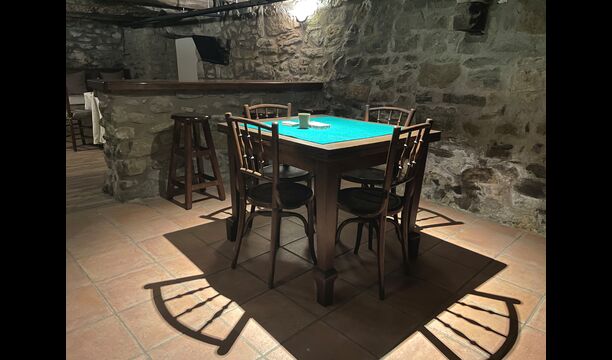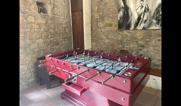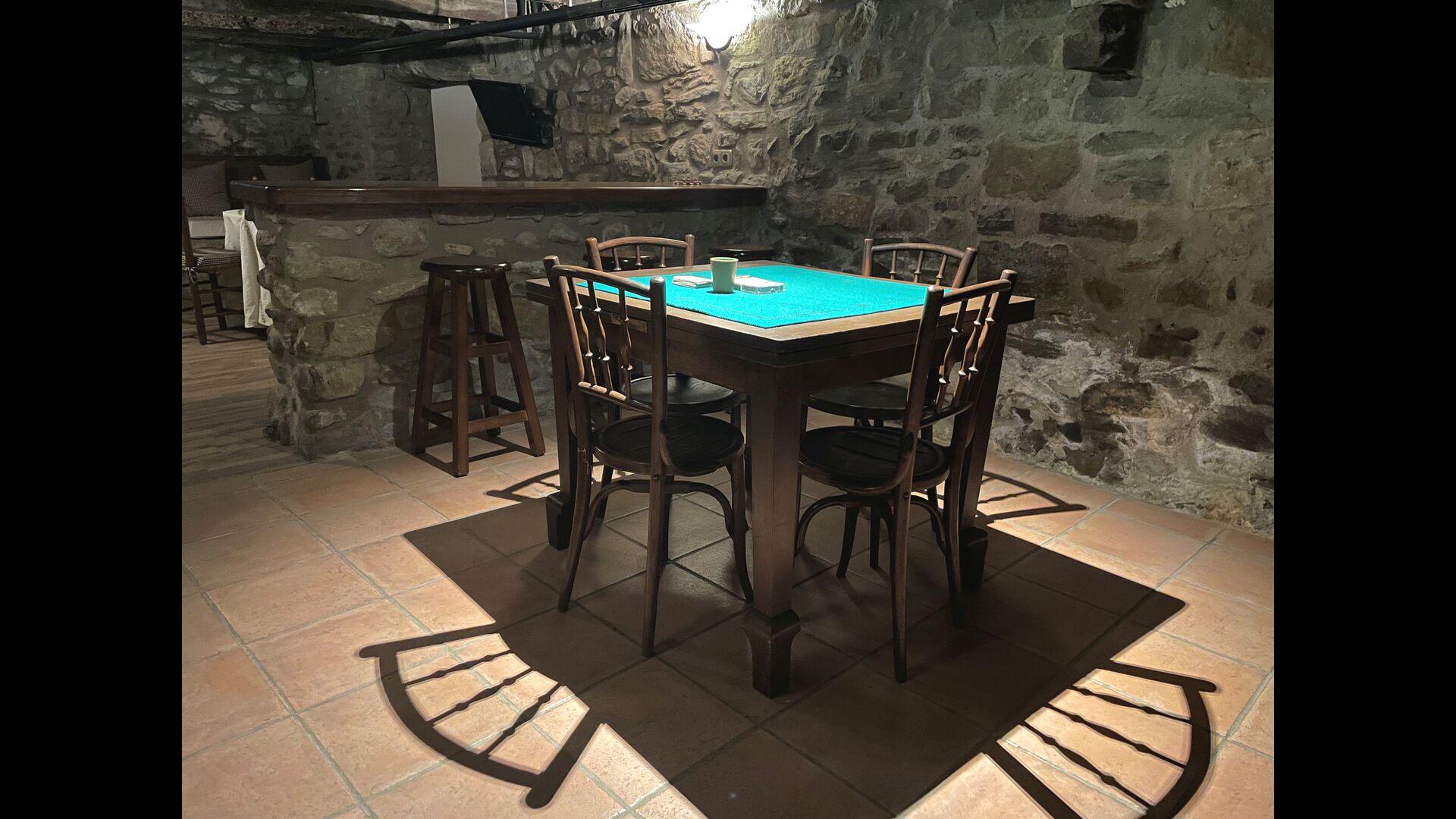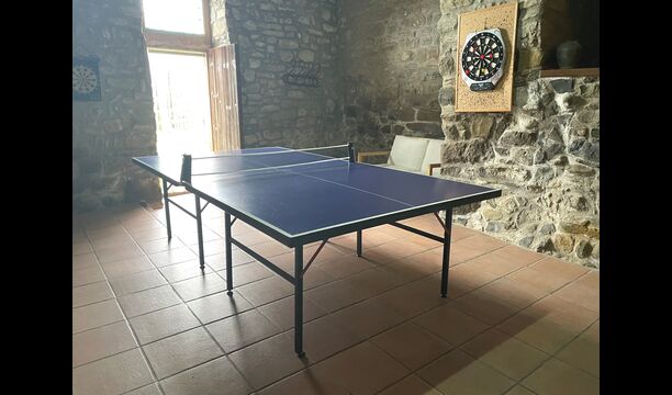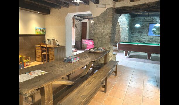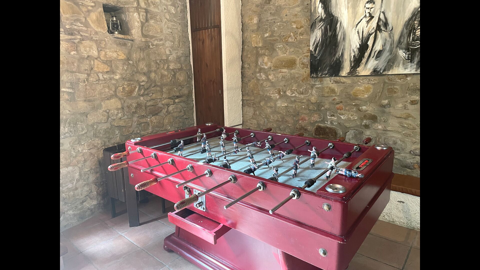 Das Gebäude neben dem Schwimmbad besteht aus den beiden Wohnungen Soler I und Soler II, die auch innen miteinander verbunden sind. Auf der untersten Etage finden Sie den großen Aktivitätsbereich, der großartig ist. Es gibt eine Spielecke für kleinere Kinder, Billard, Tischtennis, Tischfußball und sogar einen originellen Kartenspieltisch wie aus einem Mafiafilm aus New York. Hier finden Sie auch zwei zusätzliche Toiletten.