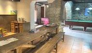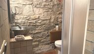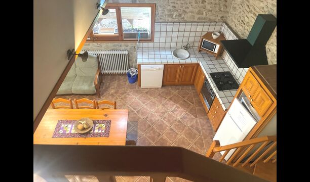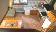 Vom Erdgeschoss aus betreten Sie das Apartment Paller I, das über einen großen Gemeinschaftsraum mit sehr hoher Decke verfügt. Hier gibt es eine Sofaecke mit Fernseher, sowie eine offene Küche und einen Essbereich mit Esstisch. Im Obergeschoss befinden sich 3 Doppelzimmer, die sich 1 Badezimmer teilen.