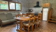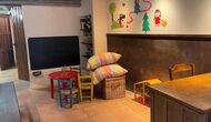 Die Wohnung Soler II ist sowohl mit der Soler I als auch mit dem Spielzimmer verbunden und hat auch einen Ausgang direkt in den Garten. Hier finden Sie zwei große Schlafzimmer mit jeweils 2 Doppelbetten und dann ein Doppelzimmer mit Doppelbett. Diese drei Schlafzimmer teilen sich 2 Badezimmer. Außerdem gibt es einen schönen rustikalen Gemeinschaftsraum mit Essbereich, Küche und Sitzecke.