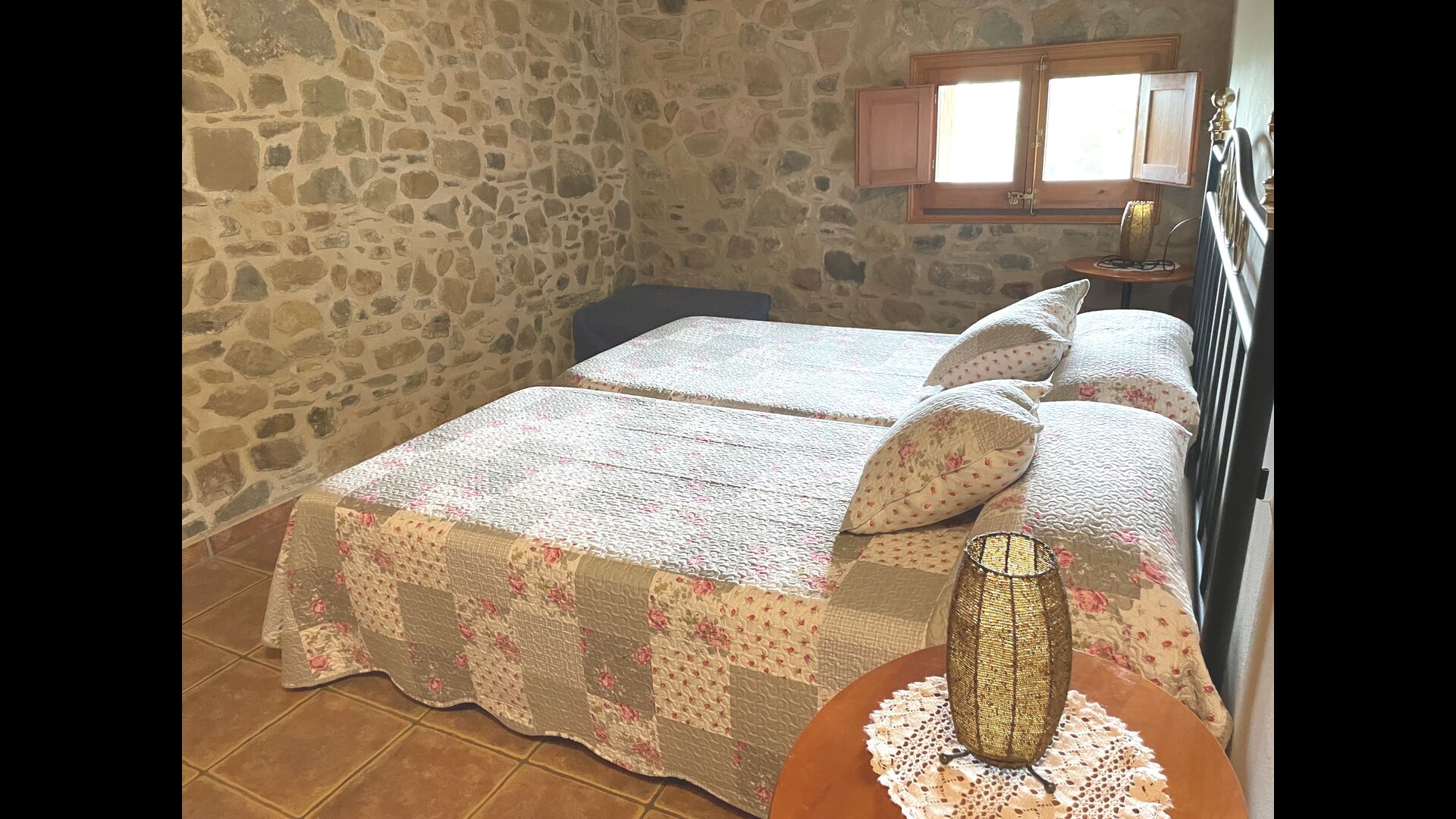 Suchen Sie einen völlig abgeschiedenen Ort, der aber dennoch nicht zu weit von einer netten Stadt mit Restaurants entfernt ist, dann ist Masia Sol de Marlant vielleicht der richtige Ort. Um auf einem Berg zu bleiben, müssen Sie natürlich über eine Bergstraße anreisen, aber die Straße ist in Ordnung und nur das letzte Stück ohne Pflaster, sodass Sie problemlos ankommen können. Die Belohnung ist umwerfend! Was für ein natürlicher Ort, umgeben von Natur und mit Blick auf das darunter liegende Tal. Die Energiequelle sind Sonnenzellen, was zu dem natürlichen und nachhaltigen Gefühl beiträgt.