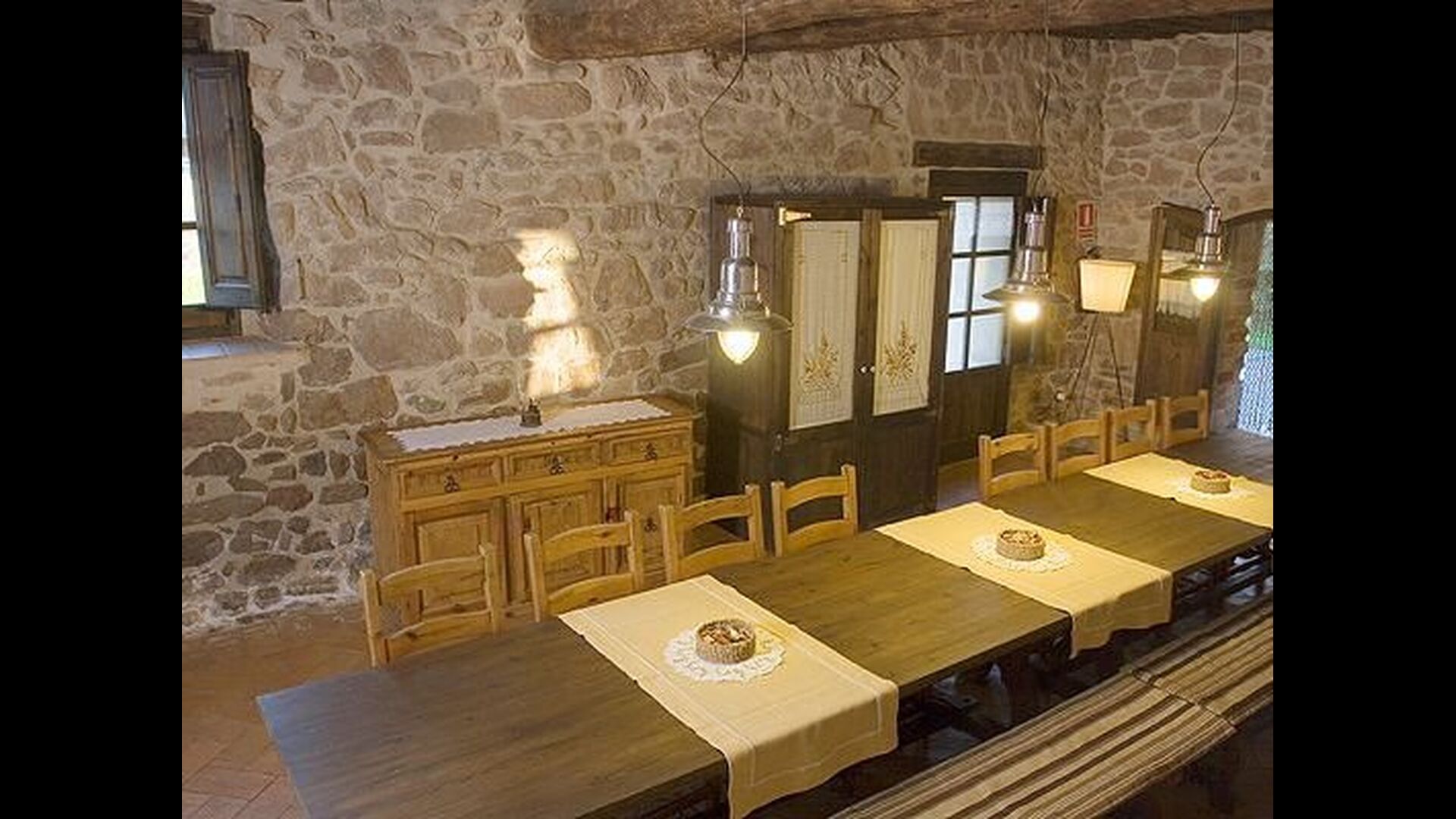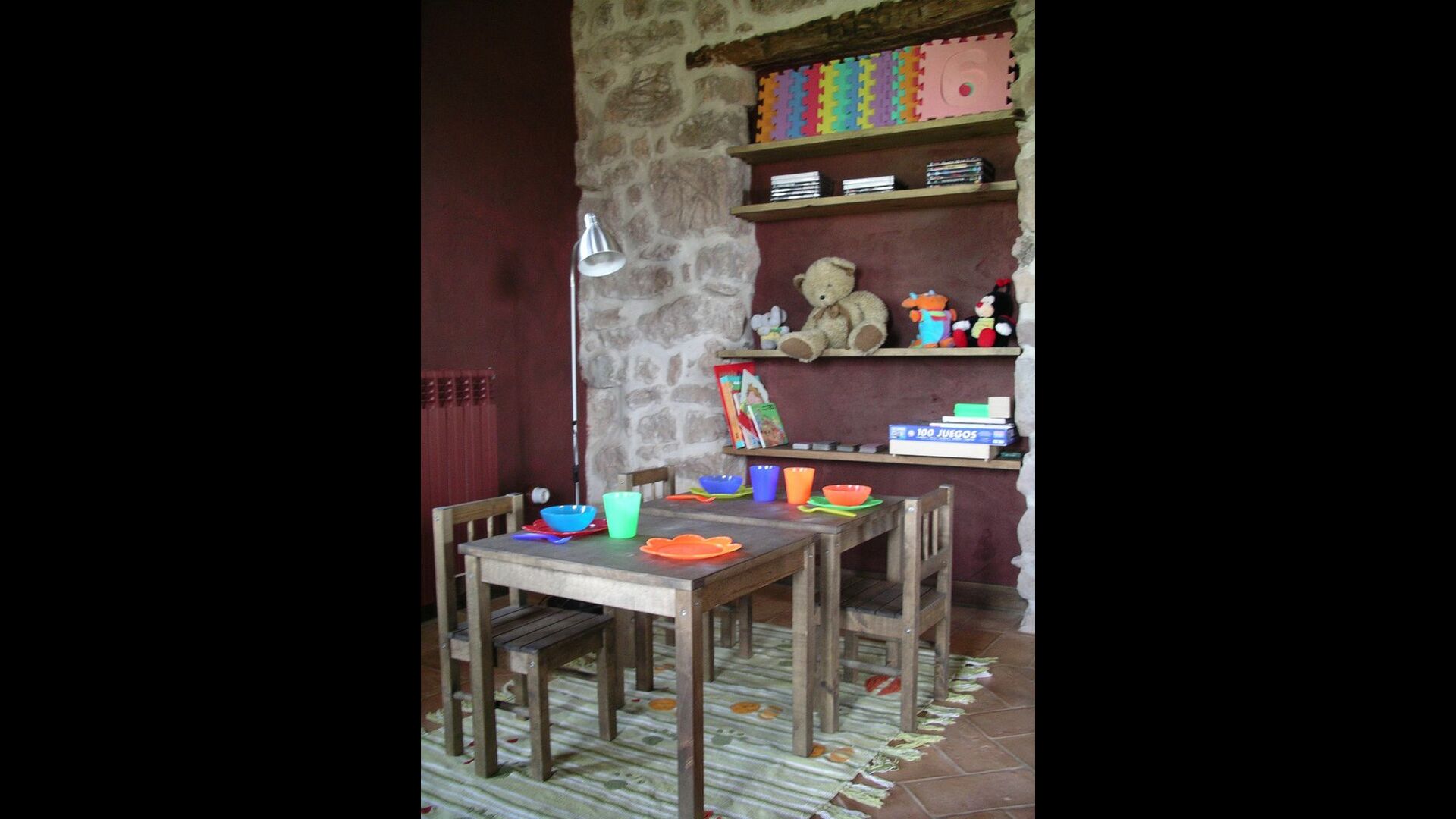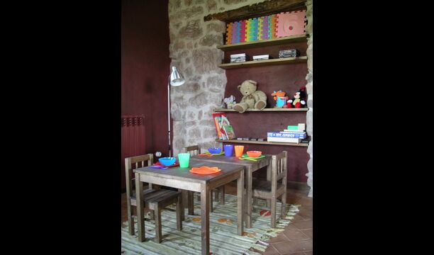 Im ersten Stock finden Sie einen sehr großen Gemeinschaftsraum mit einer fantastischen Aussicht auf das Tal. Um dies zu nutzen, wurde die beste Aussichtsecke mit bequemen Sesseln ausgestattet, sodass man lesen oder einfach die Aussicht genießen kann, während man etwas trinkt. Darüber hinaus gibt es eine Computerecke mit einem Computer mit Internetzugang, oder Sie können Ihren Laptop oder Ihr Ipone/Pad über das WLAN anschließen. Dann gibt es noch eine Sofaecke mit TV, wo Sie sich entweder mit den Satellitenkanälen oder der PS2-Playstation unterhalten lassen können. Schließlich gibt es eine Ecke für die Kleinsten mit einem kleinen Tisch, an der sie malen oder spielen können.