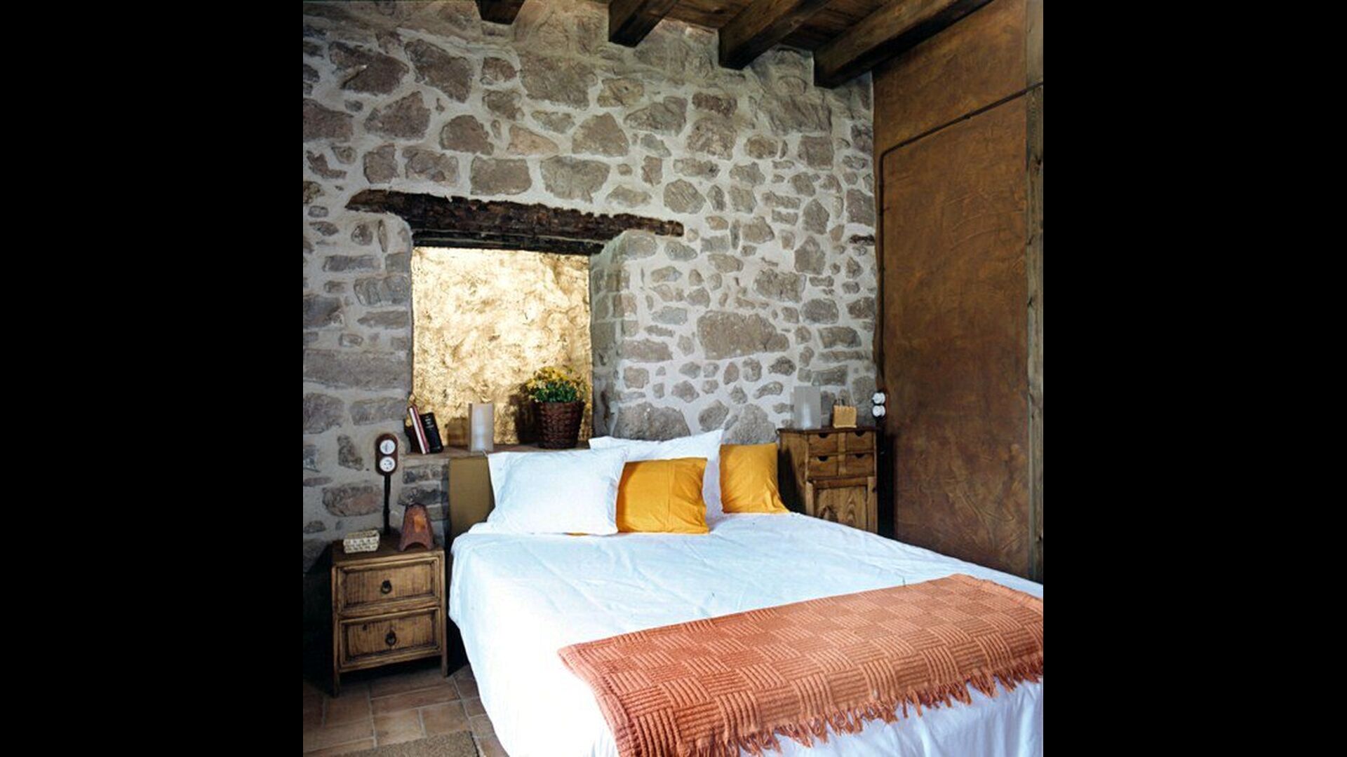 Pilar und ihr Mann haben das Haus mit der Absicht renoviert, das Authentische und Echte wiederherzustellen, das sich unter den im Laufe der Zeit durchgeführten aufeinanderfolgenden Arbeiten verbarg. So beißen wir die Wände, entfernen den Originalstein, finden ihn in der Erde und Tonziegeln auf dem Dach. Wir bemühen uns, alle Holzbalken sichtbar zu lassen. Das Ergebnis ist gleichzeitig rustikal und modern und kombiniert antike Möbel und Steinwände mit Wänden in Farben wie der himmelblauen Küche, einem scharlachroten Wohnzimmer und Schlafzimmern in frischen Farben wie Grün und Violett. Für Ihren Komfort verfügen alle Zimmer über ein eigenes Bad.
