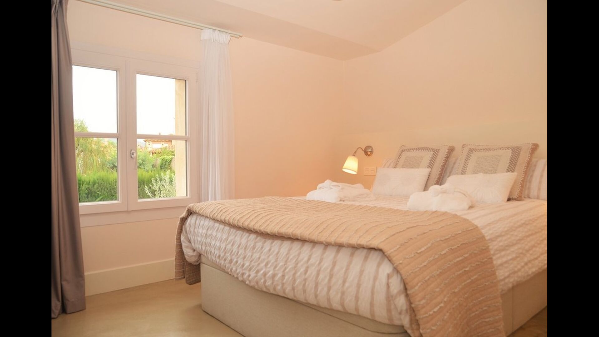 Samarit de Pals Anita has a size of 125 m2 and can accommodate 4 + 2 people in 2 spacious rooms. For the two bedrooms there are 3 bathrooms - 2 of them en suite. The extra bed is a very nice sofa bed, so with this and 3 bathrooms, there is optimal conditions for housing two extra persons. The modern kitchen has all necessities including oven, coffee maker, dishwasher, etc. The kitchen is connected with the lovely living room, where you can find a cozy sofa area with a flat-screen TV. There is also WiFi and air conditioning in the apartment. The apartment has direct access to the courtyard with pool, terrace, etc.
