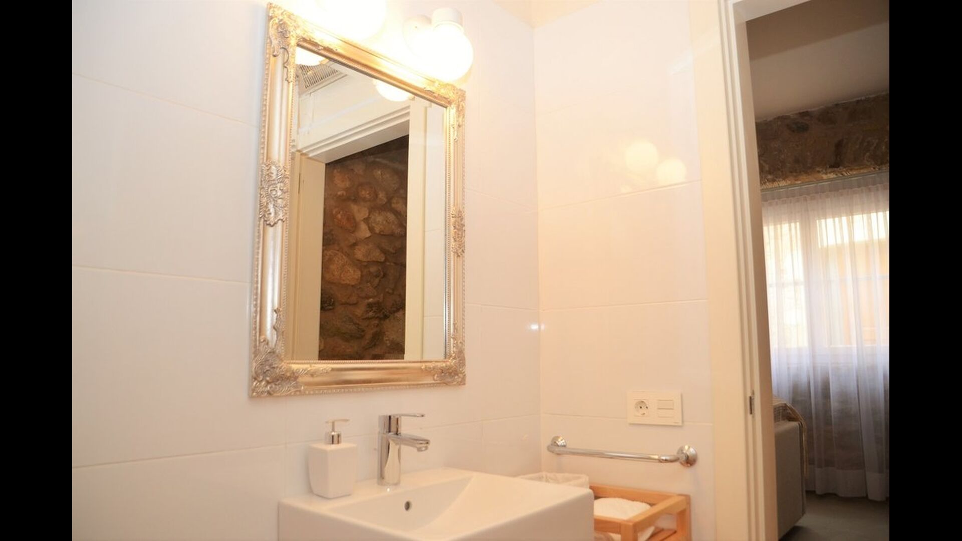 The apartment also has the luxury of having a laundry room with a washing machine, a tumble dryer, an iron etc. which is also shared with the other apartment.